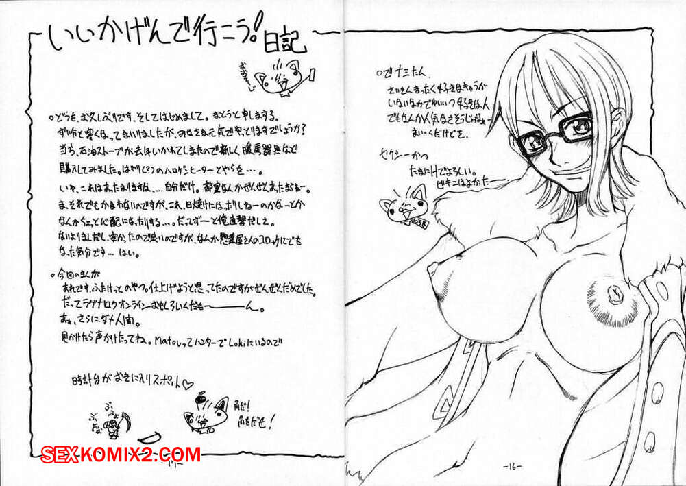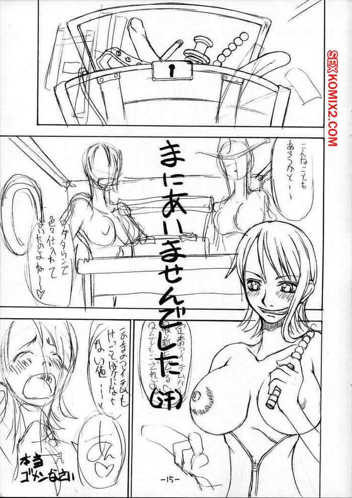 Порно комикс One Piece. Цельный свежевыжатый каштан. Dokuri Marugoto Namashibori. Majimadou Matou Горячая рыжая красотка была очень возбуждена и решила повеселиться со своей подругой с большим хуем. Она разделась и стала у нее отсасывать, после чего выебала ее страпоном.