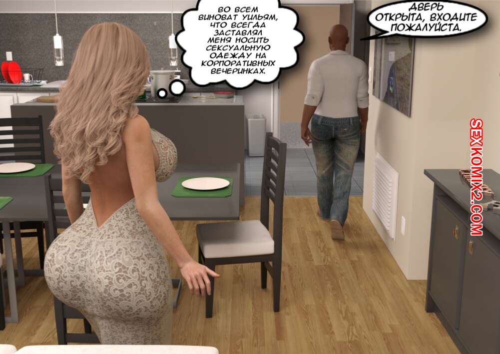 Порно комикс Босс. Boss. Elf3D Парень приехал домой к своему работнику, чтобы повеселиться с его горячей сисястой женой милфой. Они уединились в спальне и сучка стала сосать его большой хуй, после чего дала ему себя выебать.