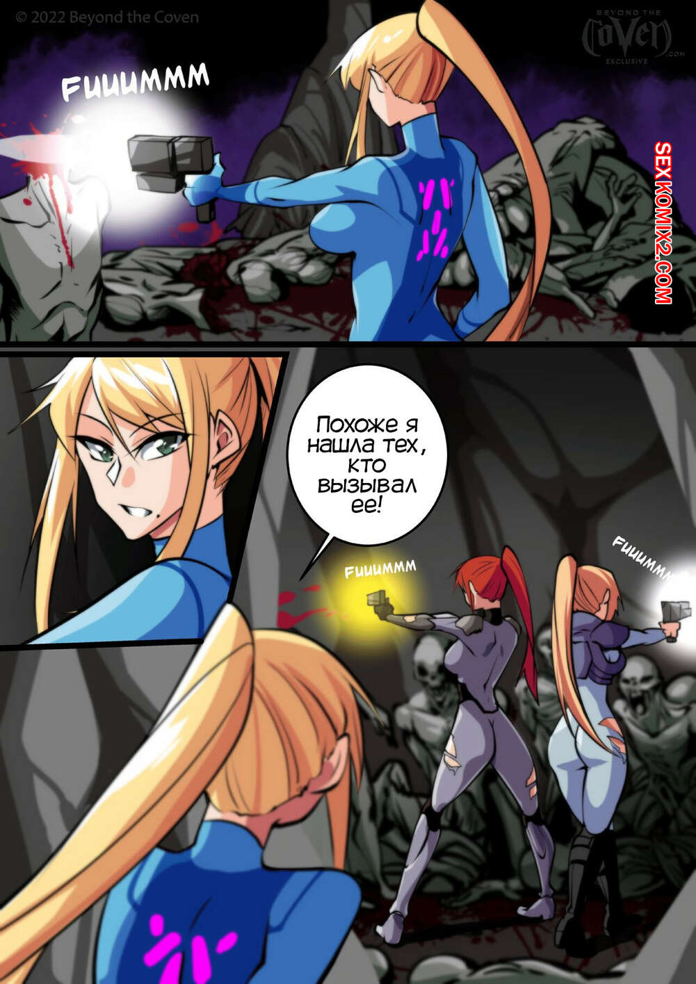 Порно комикс Смертельная встреча Самус. Samuss Deathly Encounter. Aya Yanagisawa Горячие сисястые красотки наткнулись на сексуальную брюнетку в подземелье, которая хотела с ними повеселиться. Она соблзанила девушек и раздела их, после чего они вчетвером занялись страстной лесбийской еблей.