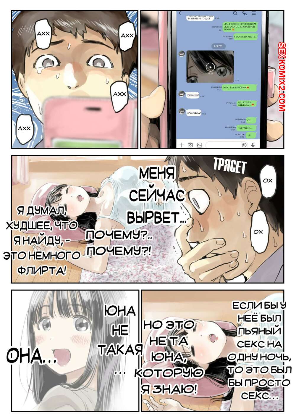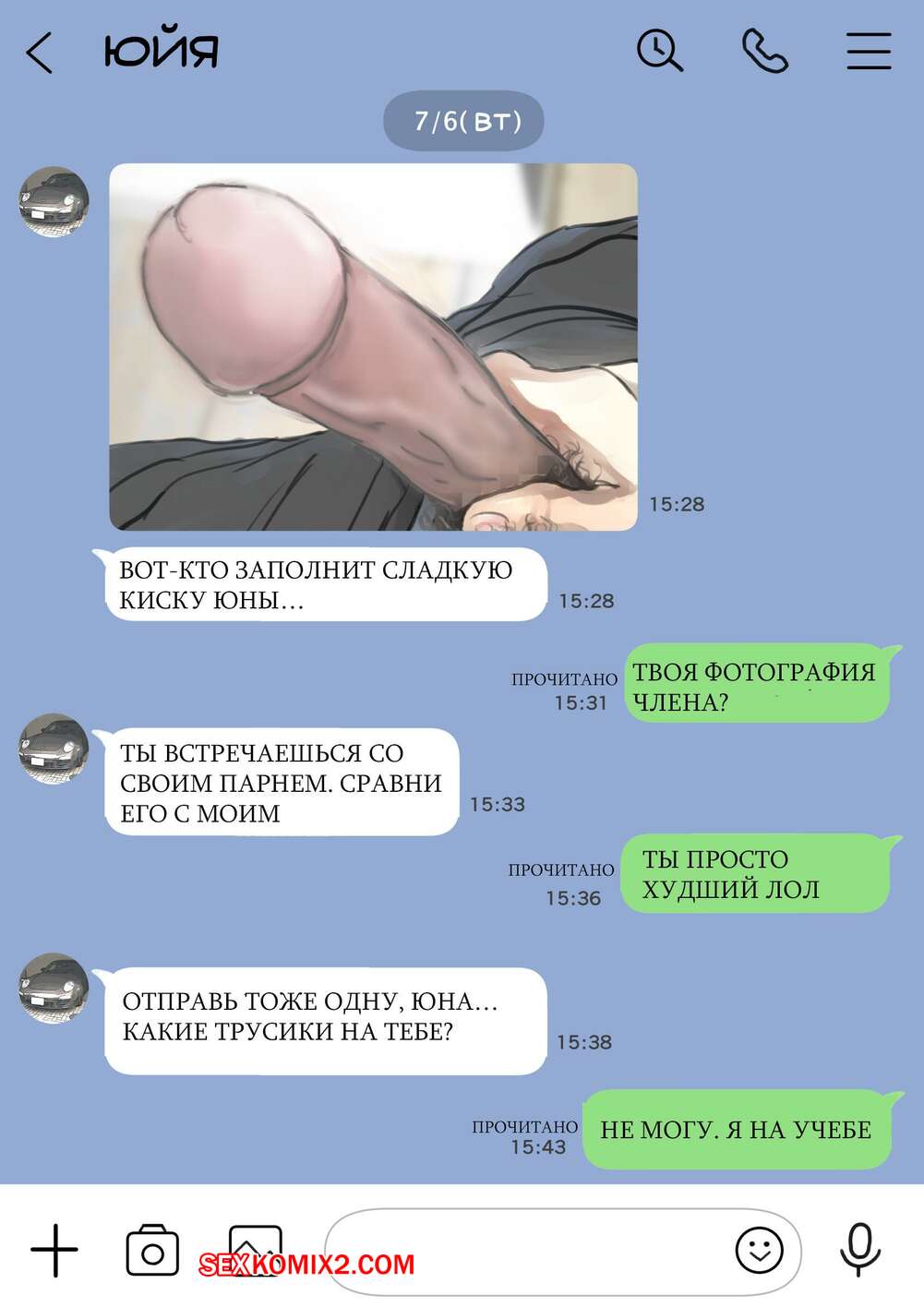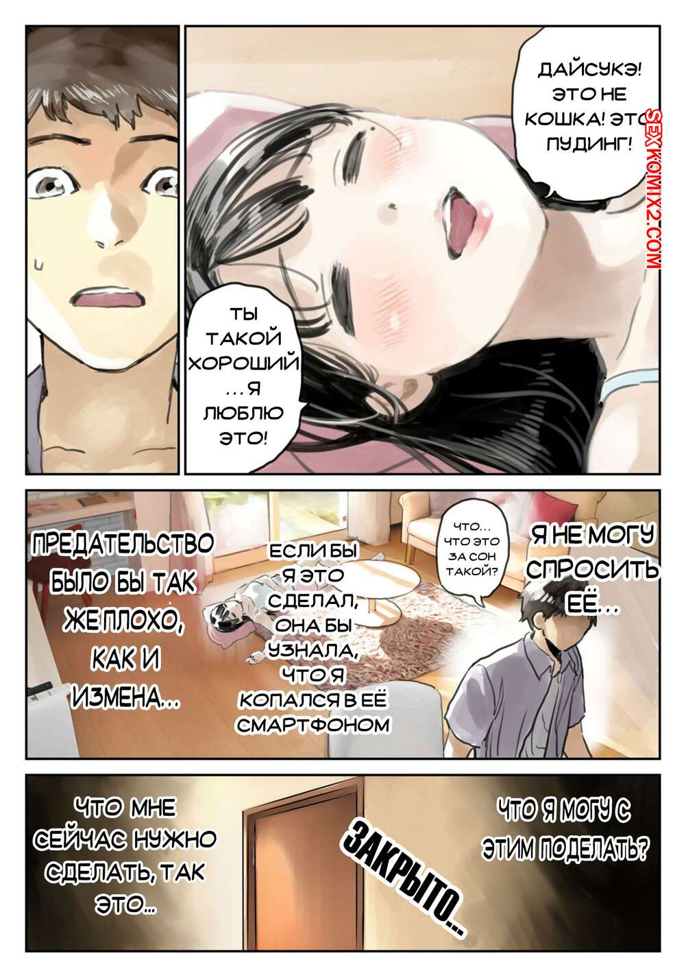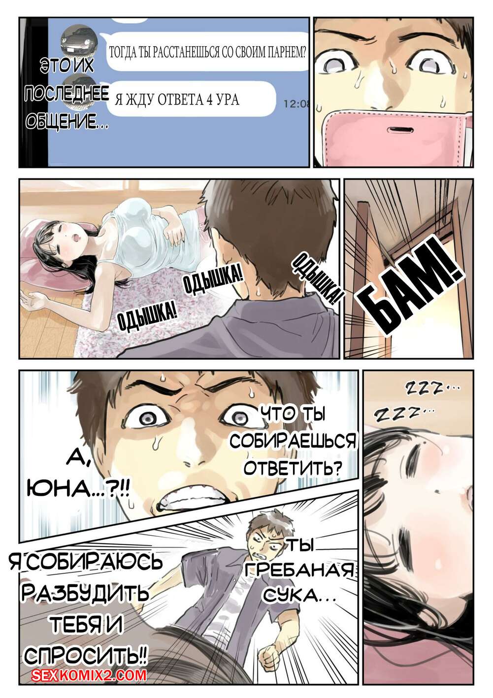 Порно комикс Я только что покопался в её смартфоне Парень стал копаться в телефоне своей девушке, пока она спала. Там он обнаружил переписку с другим парнем и фотографии того, как она с ним трахается, изменяя своему любимому.