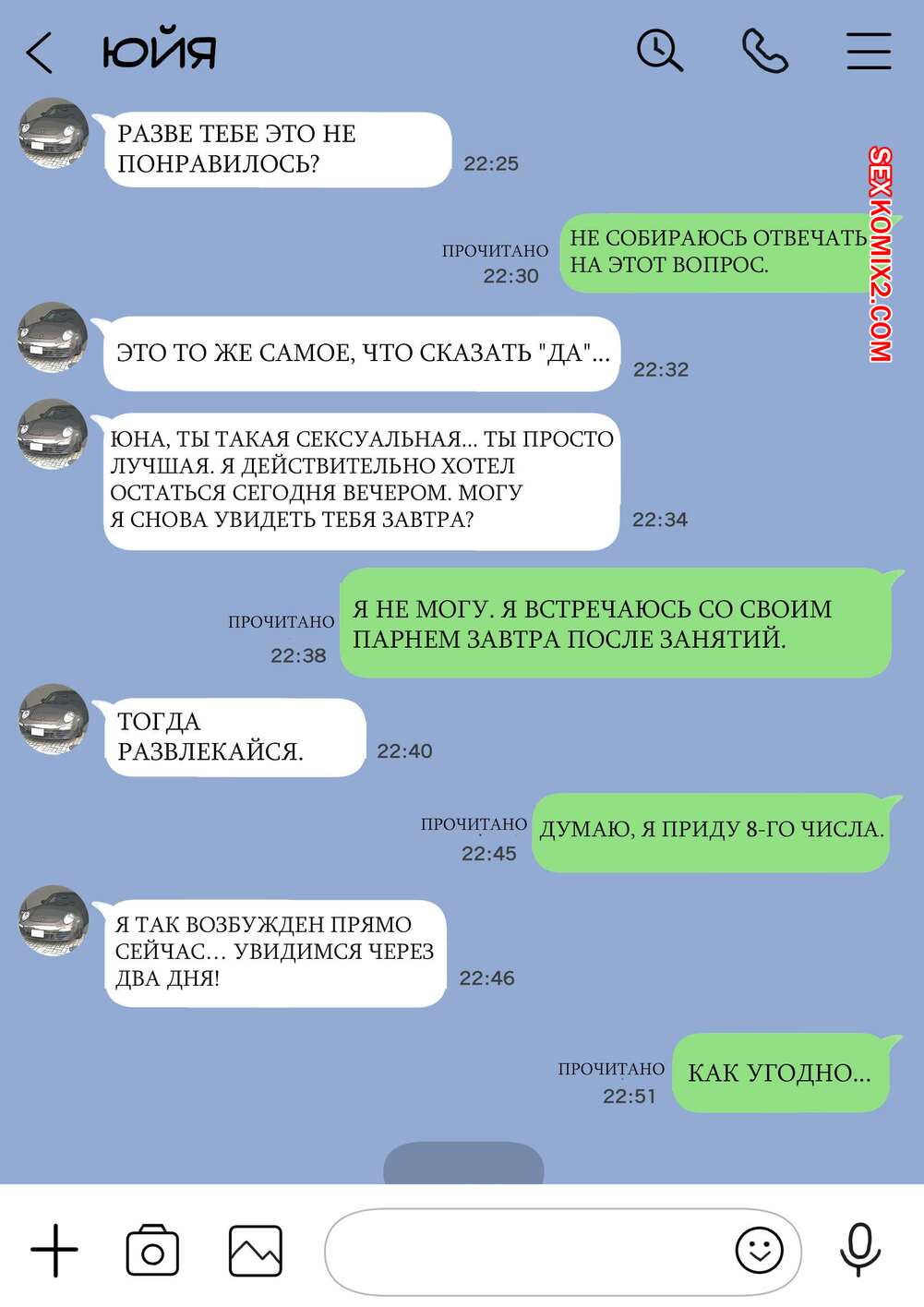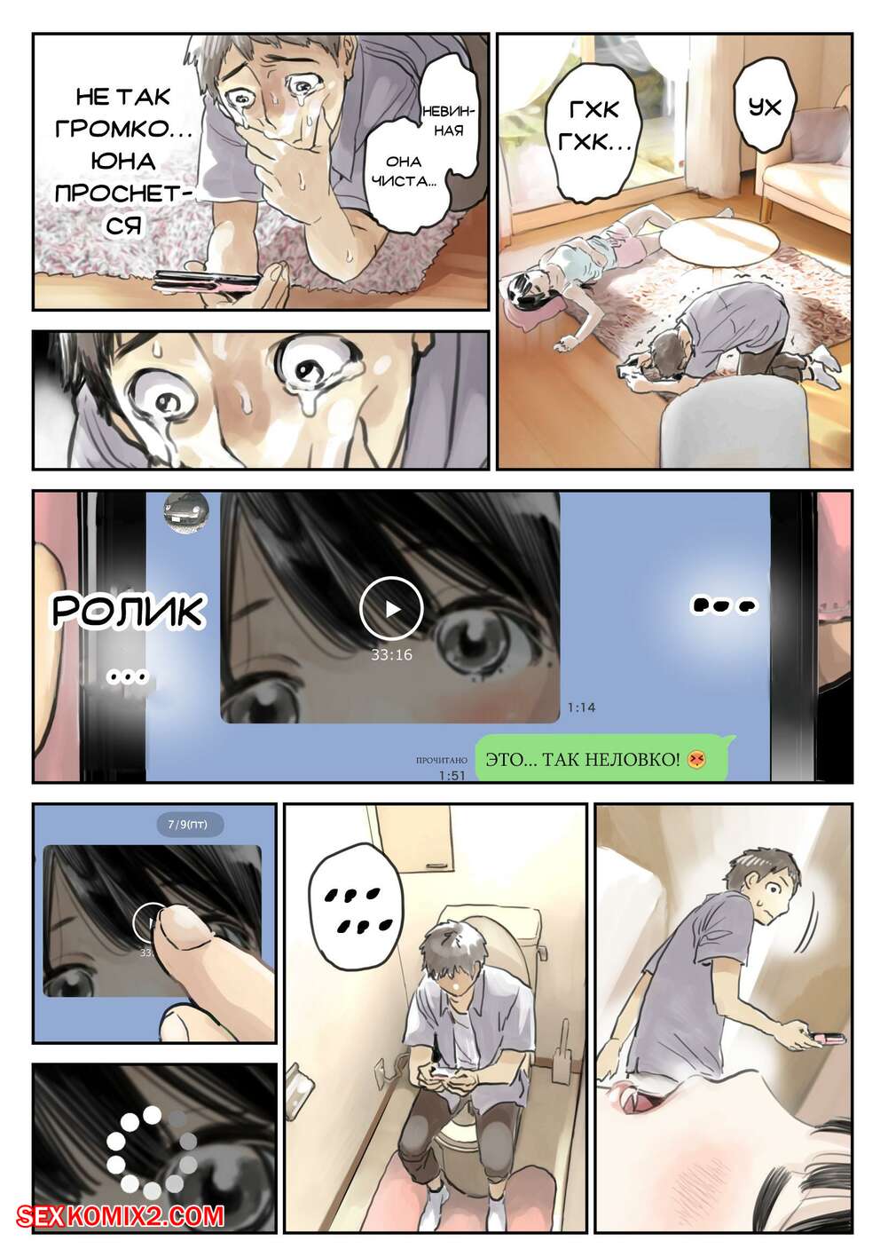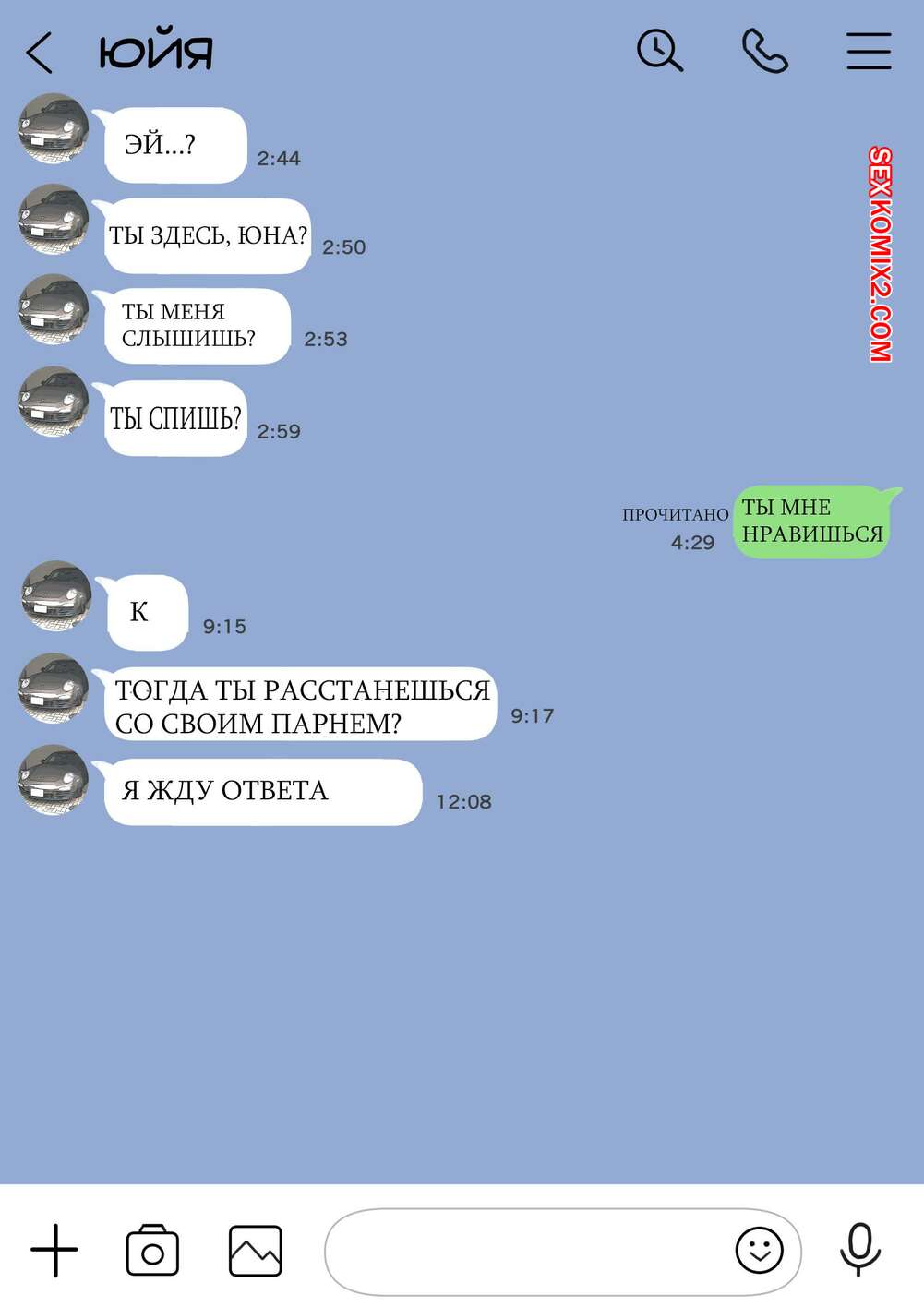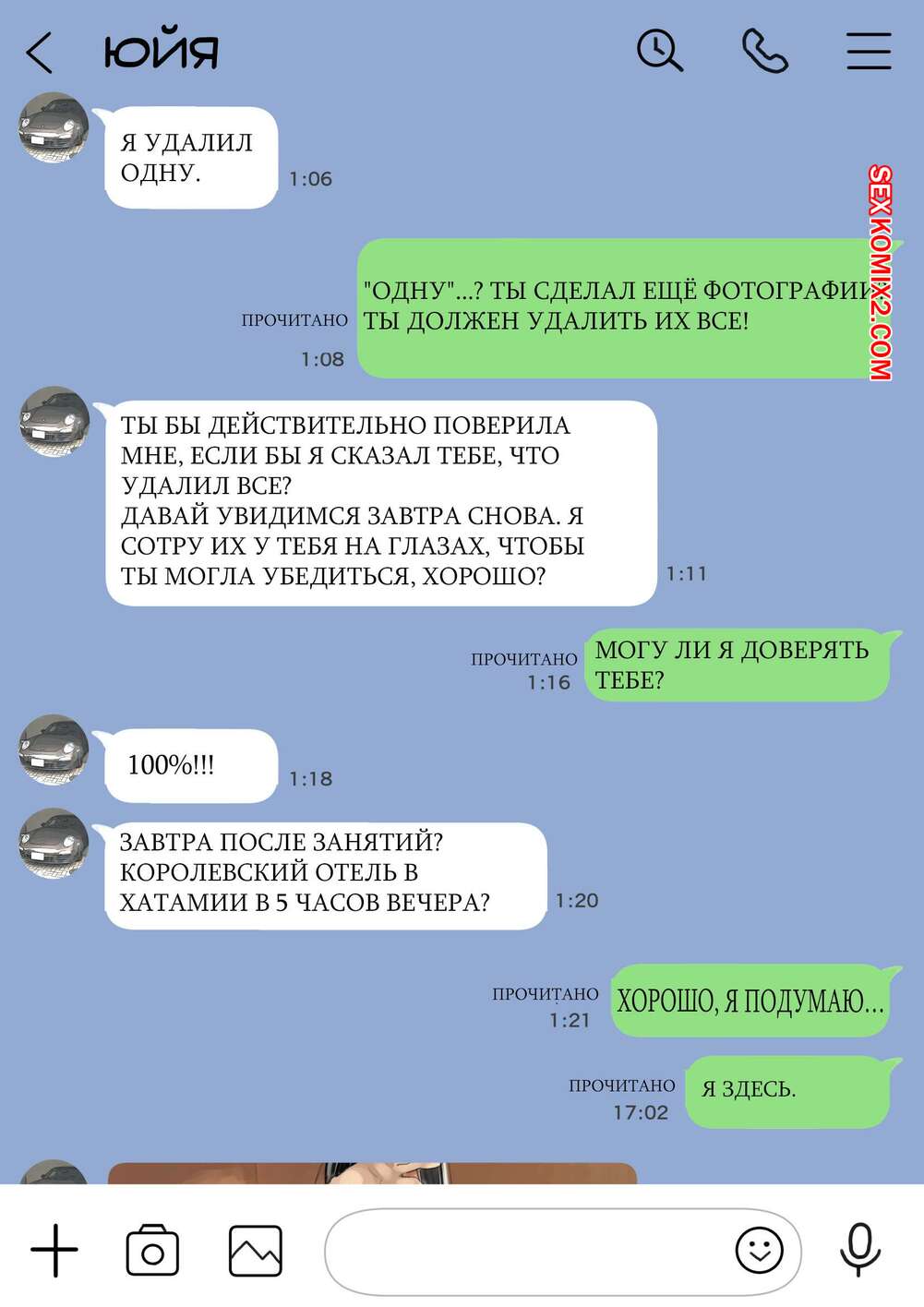 Порно комикс Я только что покопался в её смартфоне Парень стал копаться в телефоне своей девушке, пока она спала. Там он обнаружил переписку с другим парнем и фотографии того, как она с ним трахается, изменяя своему любимому.