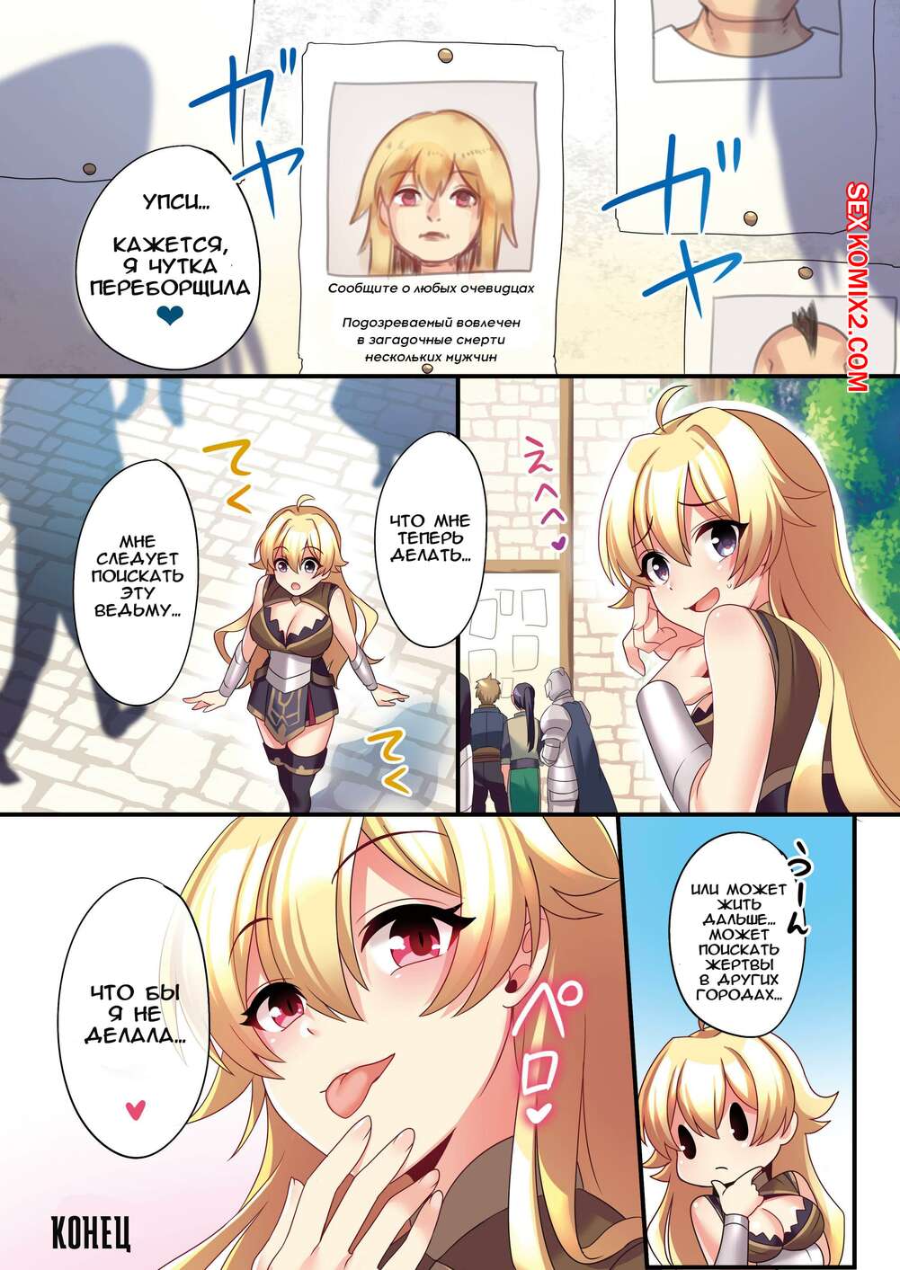 Порно комикс Героя превращают в суккуба. Часть 1 Парня превратили в горячую сисястую блондинку, которая теперь привлекает внимание многих парней. Они раздевают красотку и дают ей отсосать свой большой хуй, после чего они ее трахают.