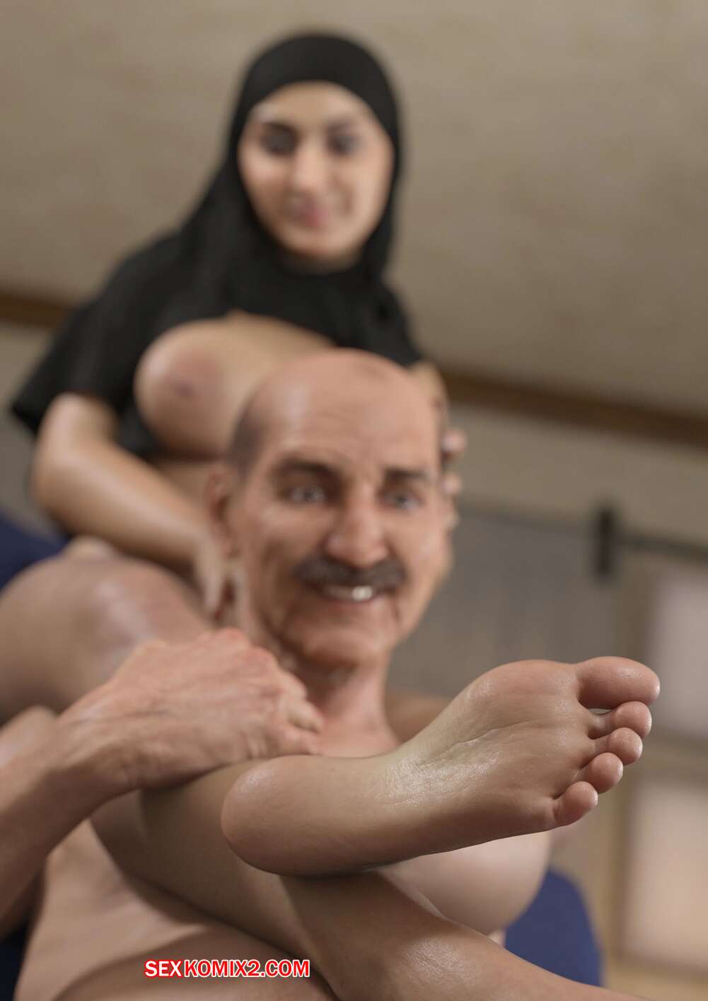 Порно комикс Fatima. VforVendettaV Сисястая милфа брюнетка была очень возбуждена и решила повеселиться с пожилым мужиком. Она разделась перед ним и возбудила его своим шикарным телом, после чего оседлала его лицо и дала ему вылизать свою пизденку.