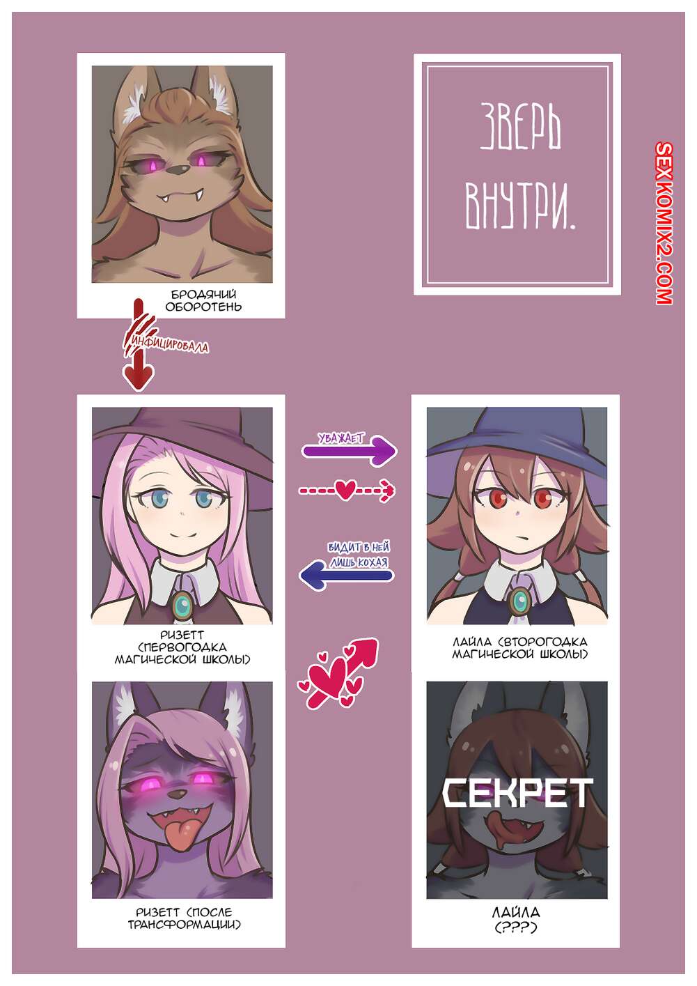 Порно комикс Зверь внутри. Части 1 и 2. The Beast Inside В полночь горячая сисястая красотка превращается в оборотня и у нее вырастает член. Ее подруга этим пользуется и хорошенько сосет большой хуй подруги, после чего дает ей себя хорошенько выебать.