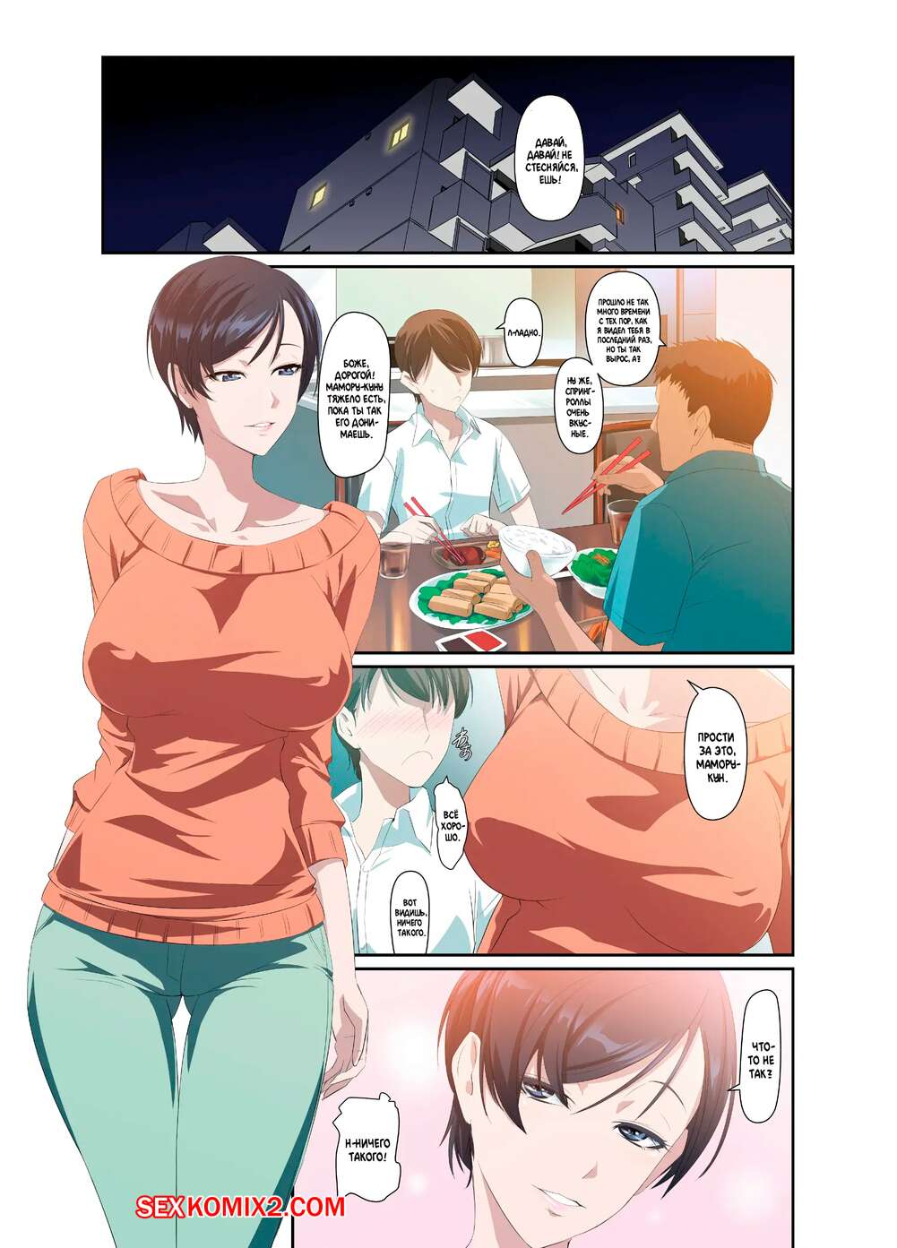 Порно комикс Замужняя женщина Ёко и Маморукун. Hitozuma Youko to Mamorukun. NAKADERA Akira Сисястая милфа брюнетка была очень возбуждена и хотела трахаться. Она разделась перед молодым племянником и стала сосать его большой хуй, после чего дала ему себя хорошенько выебать.