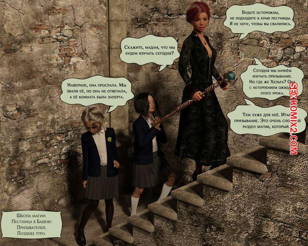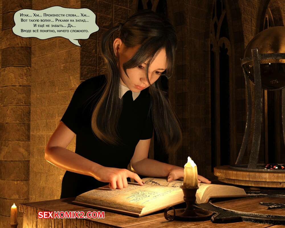 Порно комикс Происшествие в школе магии. Summoness. Giganax Молодой горячая брюнетка наколдовала себе парня с большим хуем и решила с ним повеселиться. Красотка разделась и стала у него отсасывать, после чего дала ему себя выебать.
