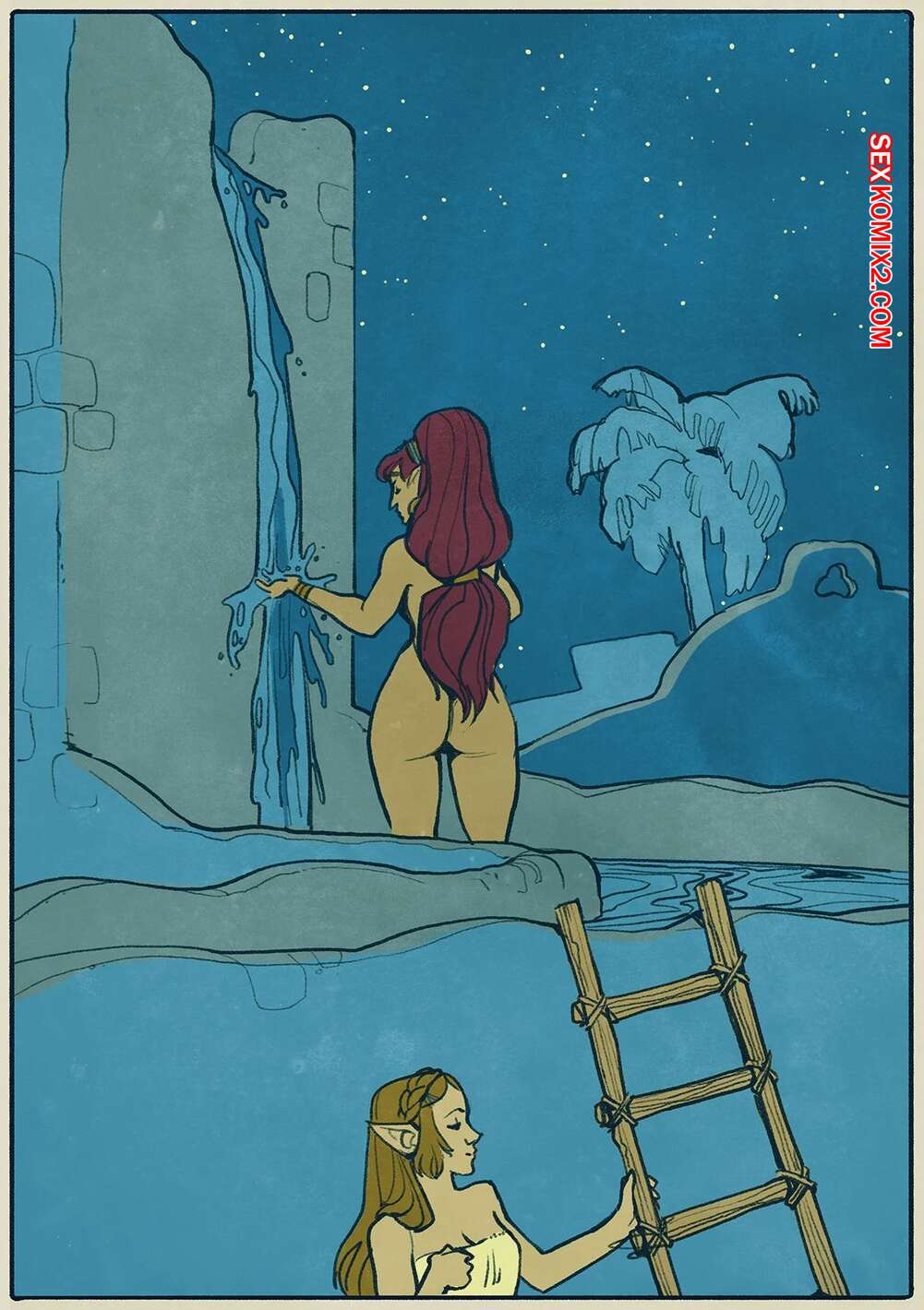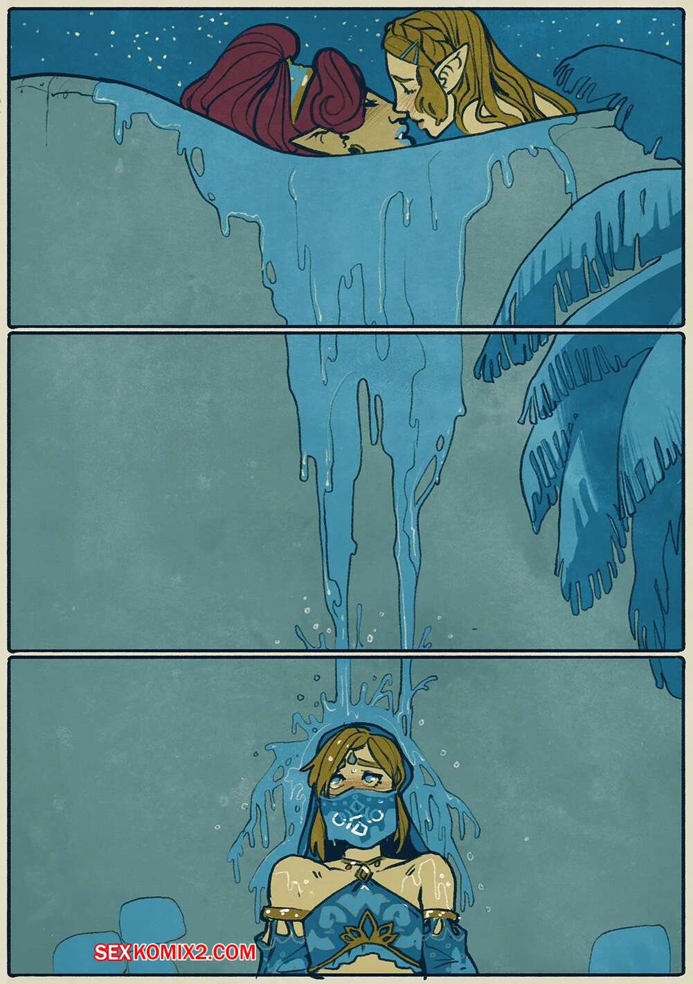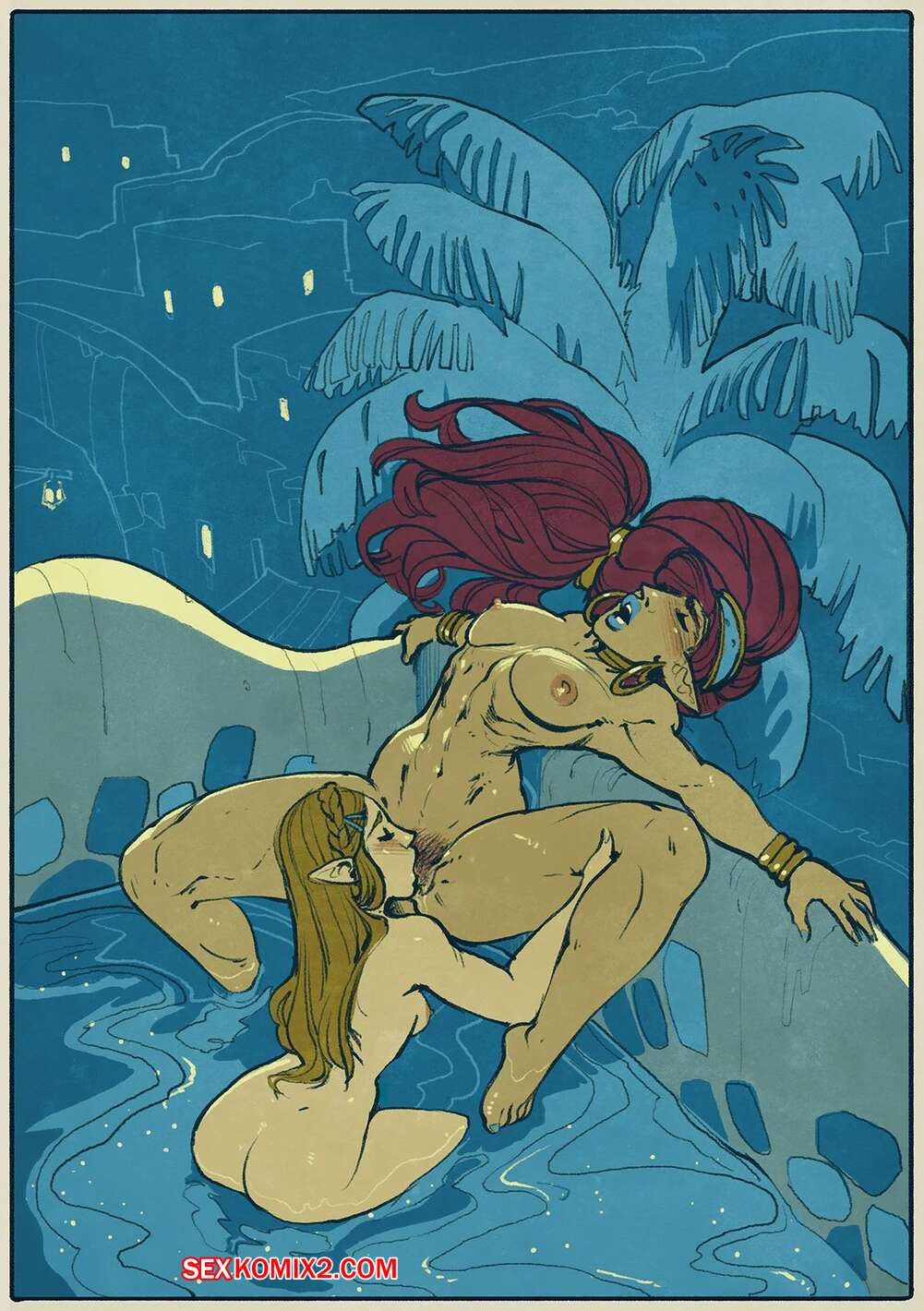 Порно комикс Legend of Zelda. Купальня маленькой птички. Little Birds Bath. WintonKidd Две горячие сисястые брюнетки вместе купались и решили немного повеселиться. Девушки стали страстно целоваться и ласкать друг дружку, после чего занялись страстной лесбийской еблей.