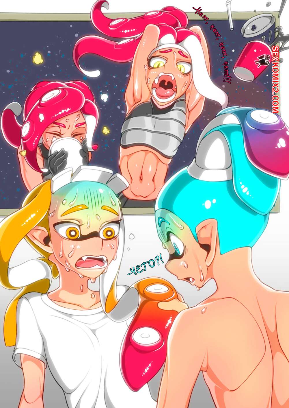 Порно комикс Splatoon. Измена. Yuuri Горячие красотки просто без ума от большого хуя молодого парня. Красотки регулярно встречаются с ним, чтобы отсосать у него и дать ему себя хорошенько выебать, изменяя своим парням.