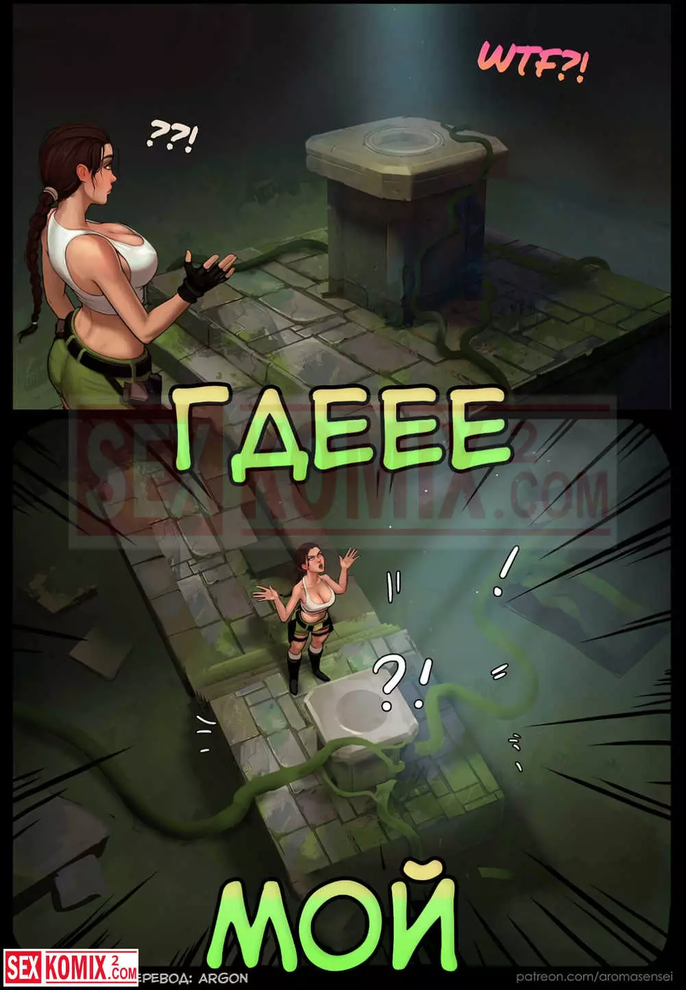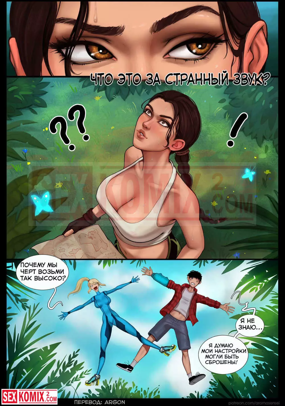 Порно комикс Вайфунатор. Часть 5. Tomb Raider and Metroid. Расхитительница гробниц почти нашла драгоценный артефакт, но на неё упали парень и девушка. Она их не знала, но решила немного отдохнуть и заняться с ними сексом.