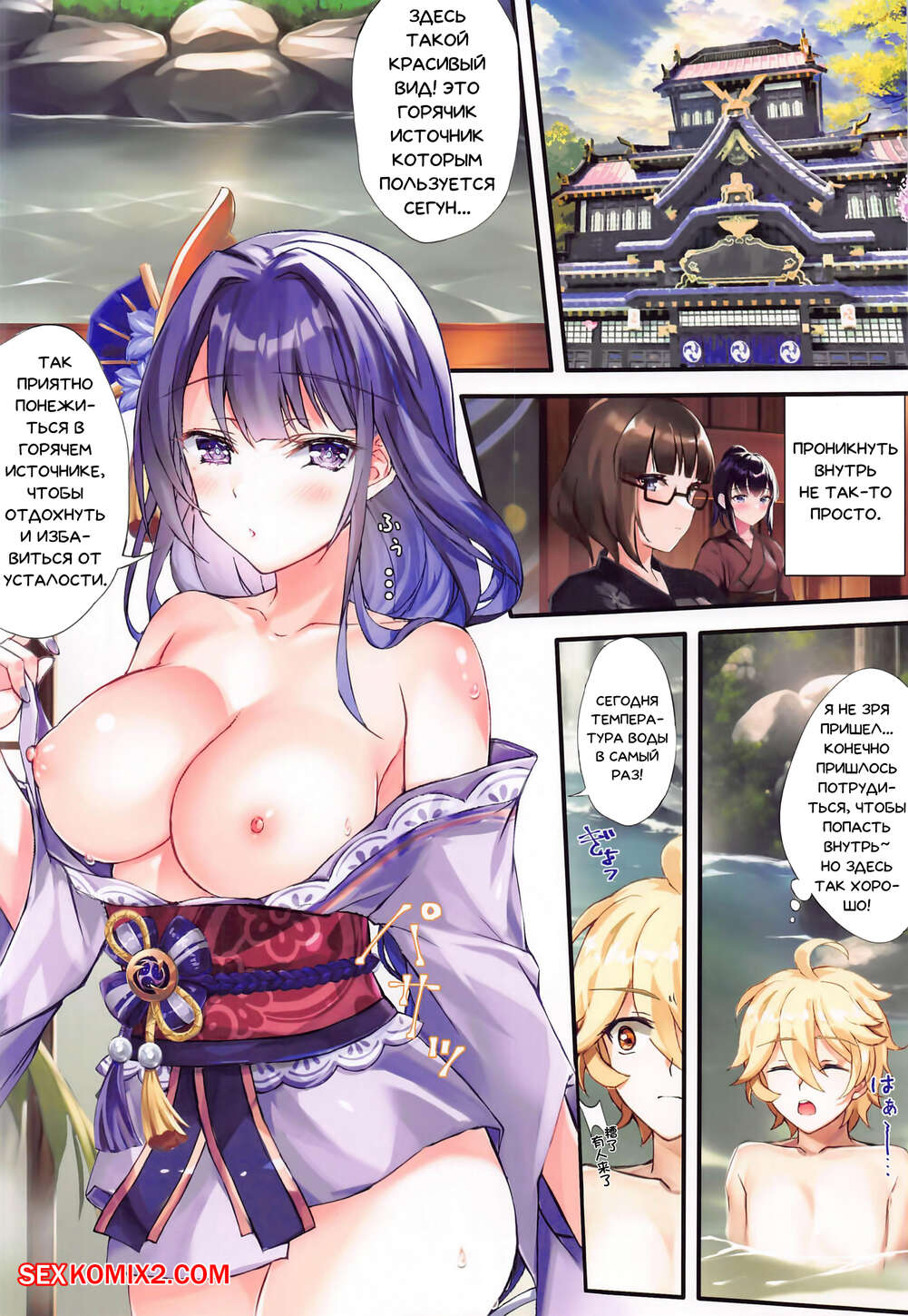 Порно комикс Genshin Impact. Влажные, расслабляющие горячие источники. Akaneiro Горячие сисястые красотки были очень возбуждены и решили повеселиться со своим дружком. Девушки разделись перед парнем и стали сосать его большой хуй, после чего дали ему себя выебать и кончить в них.