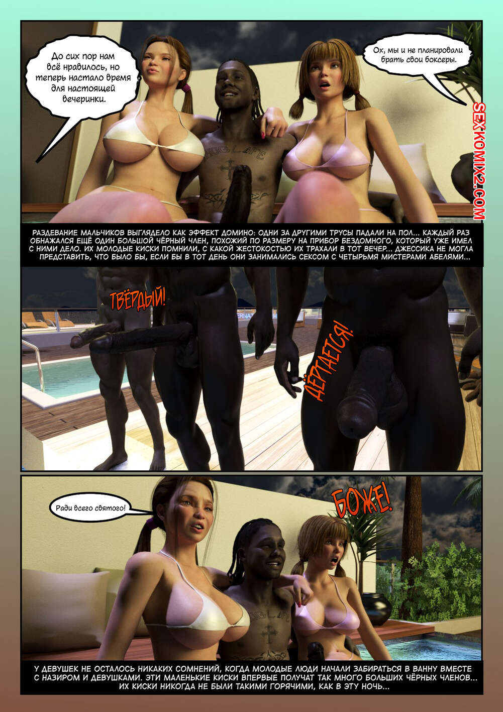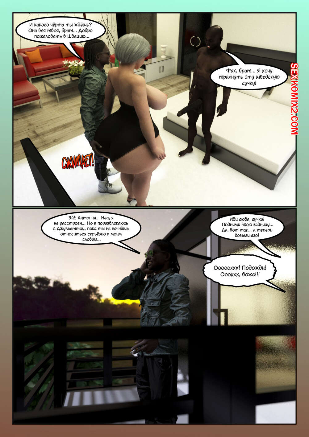 Порно комикс Одинокая шведская жена. Часть 4. Lonely swedish wife. Moiarte Горячие сисястые милфы просто без ума от больших черных хуев. Красотки встречаются с темнокожими парнями и хорошенько у них отсасывают, после чего дают им себя хорошенько выебать.
