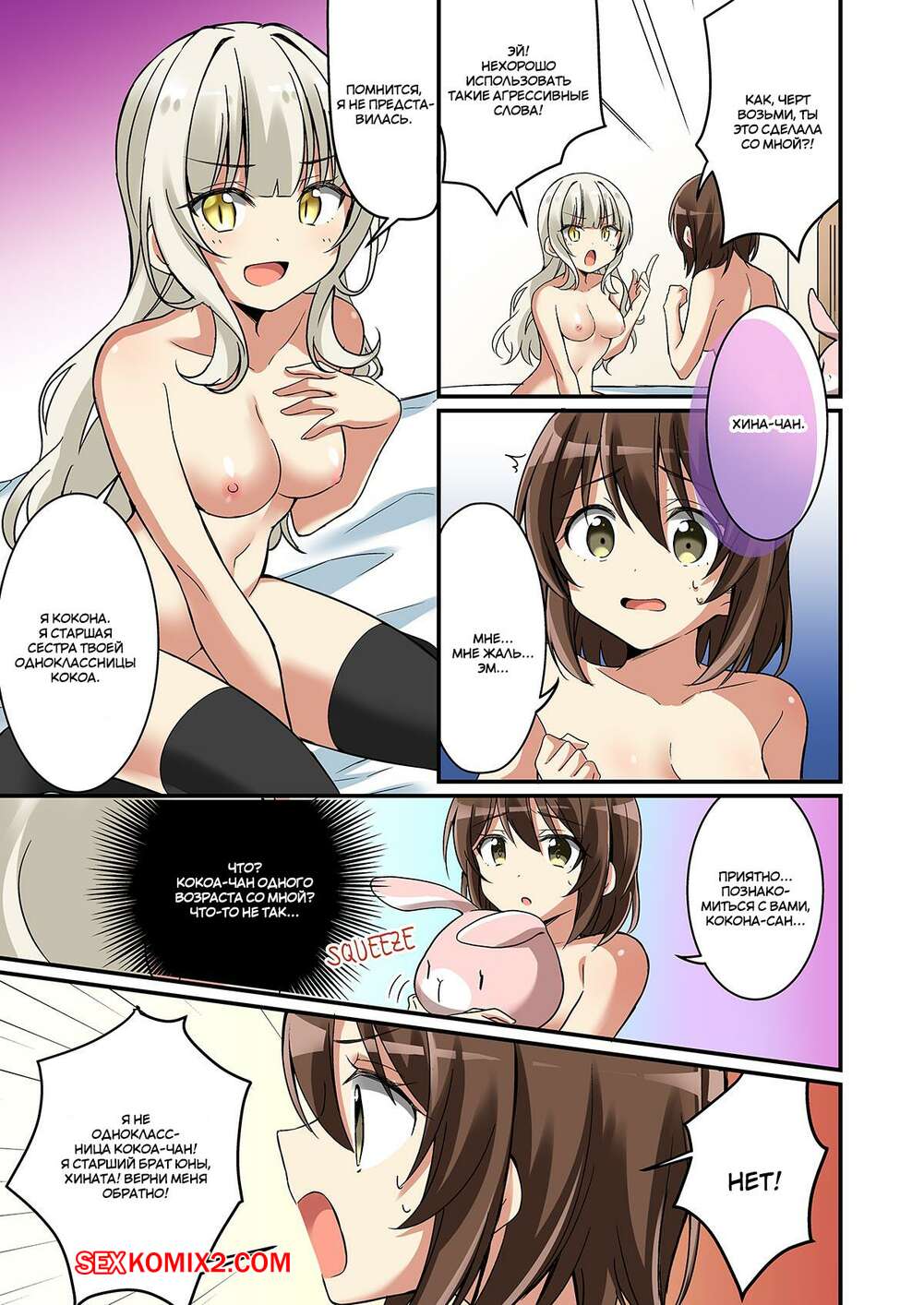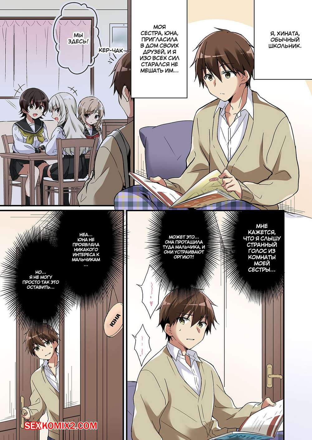 Порно комикс Добро пожаловать в общество суккубов. Перевоплощение моей младшей сестры. TSF no F Молодые горячие красотки ласкали друг дружку в комнате, а затем к ним присоединился братик одной из них. Девушки стали сосать большой хуй парня, после чего дали ему себя хорошенько выебать.