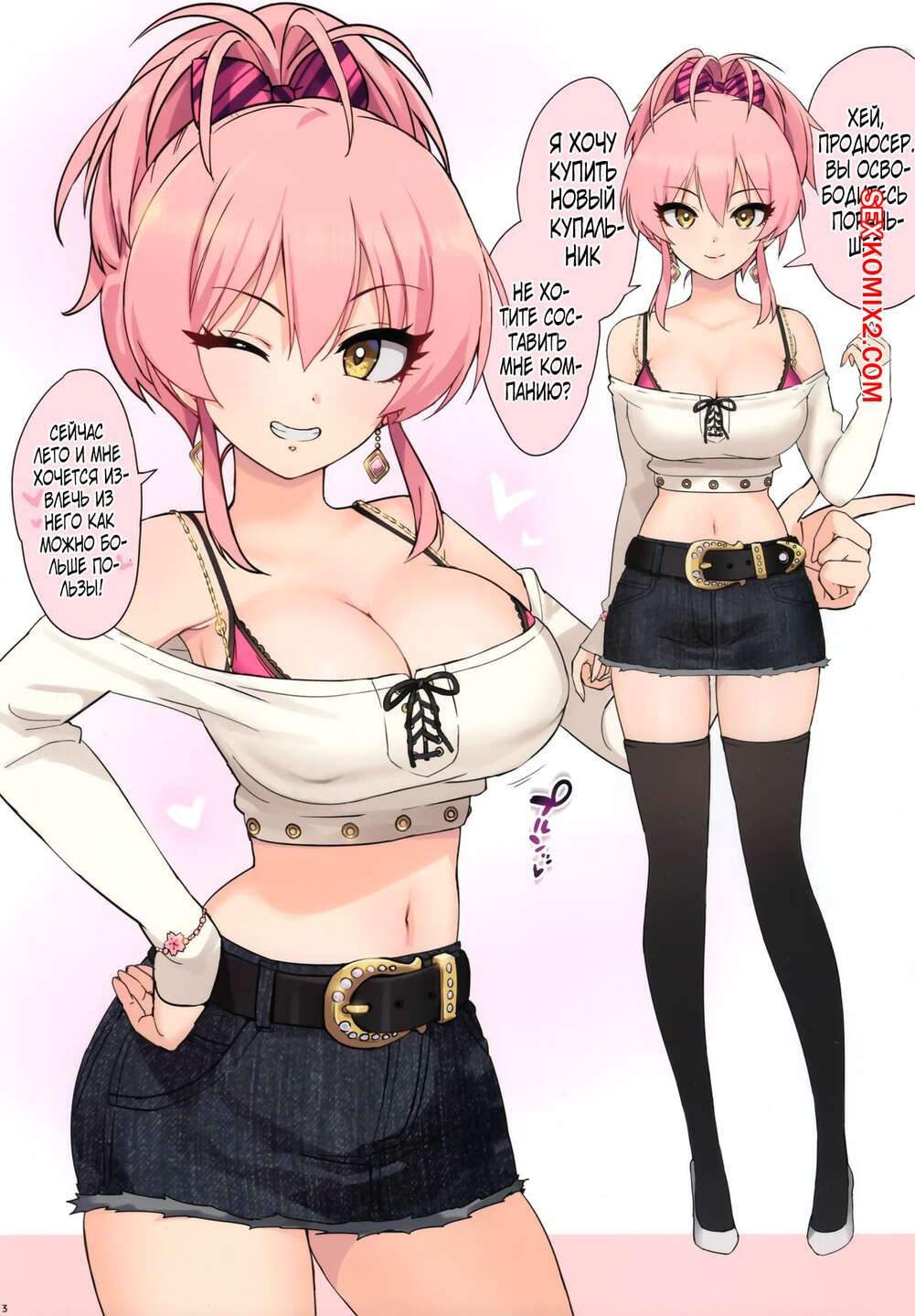 Порно комикс The Idolmaster. Мика, бикини и лето. Ohtomo Takuji Горячая сексуальная красотка была очень возбуждена и хотела трахаться. Она разделась перед своим дружком и стала сосать его большой хуй, после чего дала ему себя выебать.