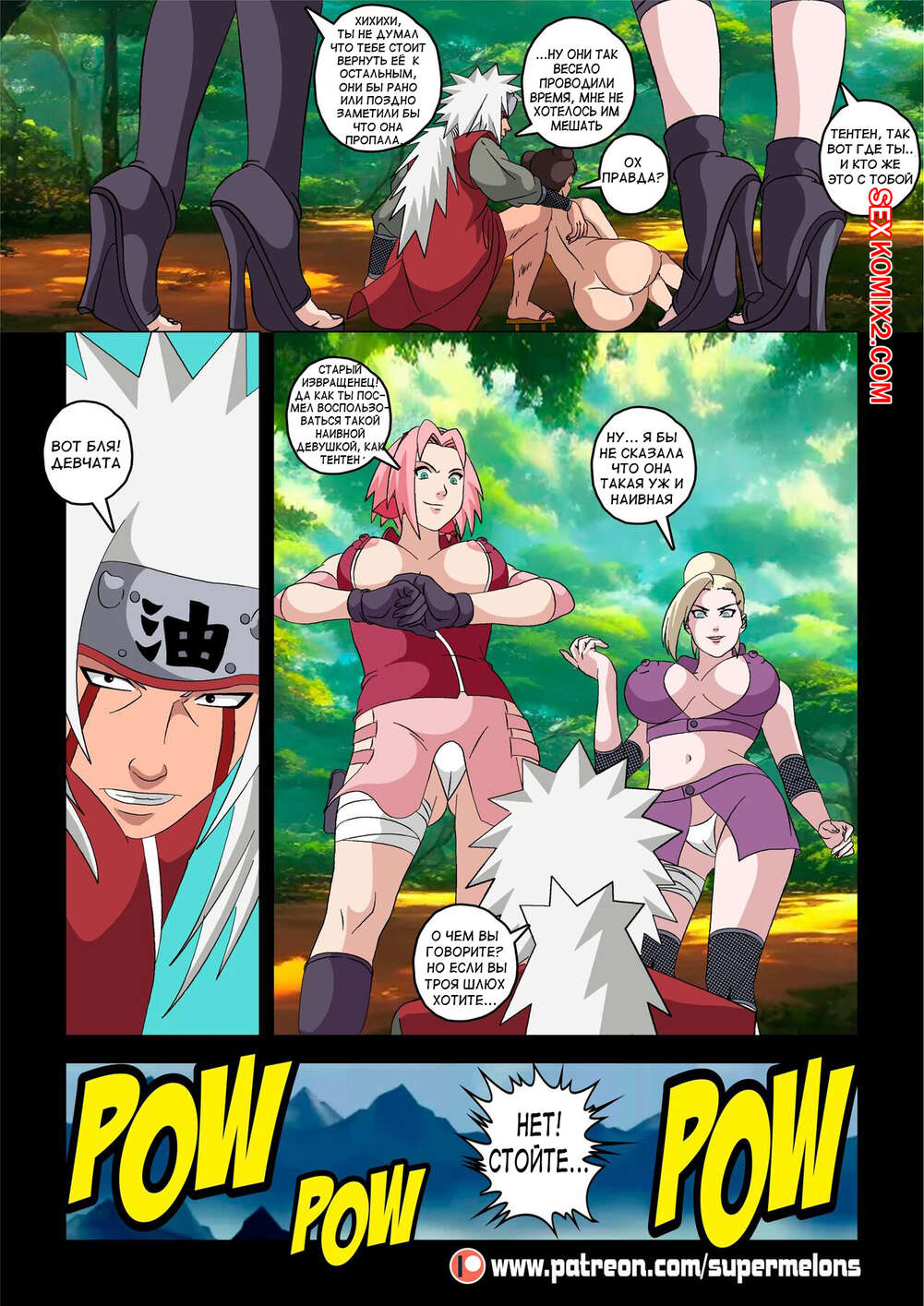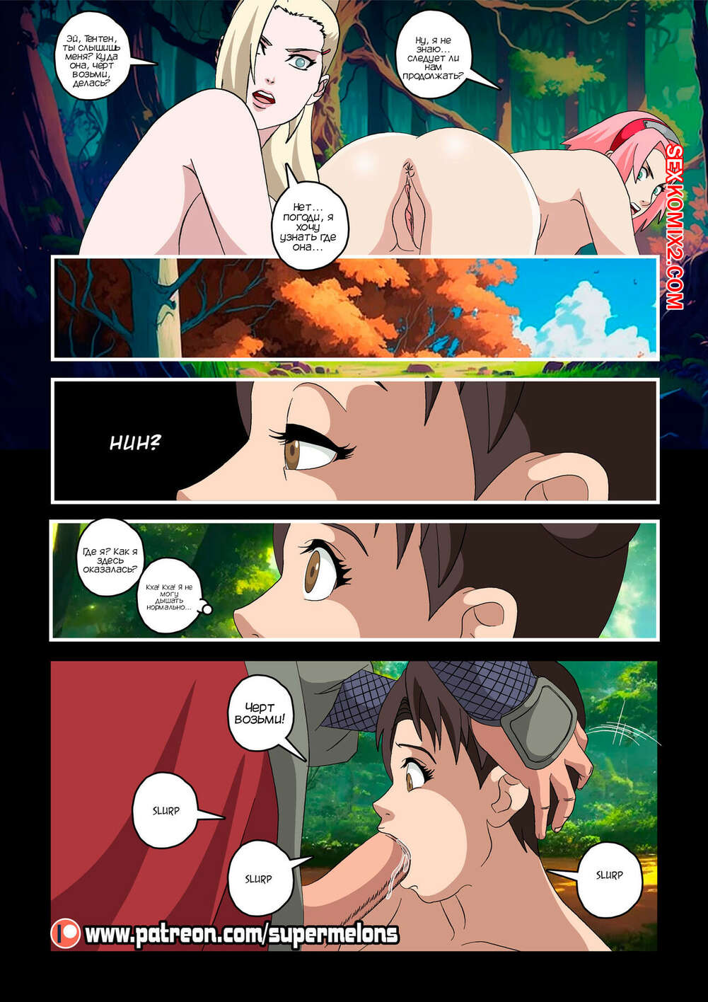 Порно комикс Наруто. Смертельная тренировка. Deadly Training. Super Melons Красотка Сакура отправилась на персональную тренировку с Тсунаде, но прийдя на место, она не нашла ее. Оказалось, что блондинка милфа уединилась в кустах с брюнеточкой, чтобы заняться с ней лесбийской еблей.