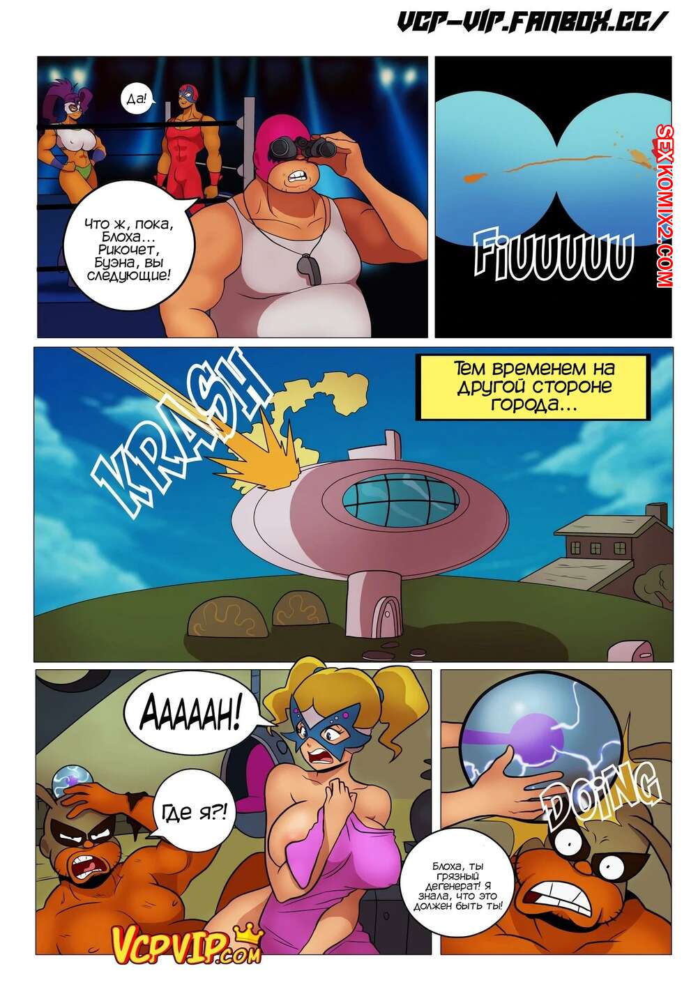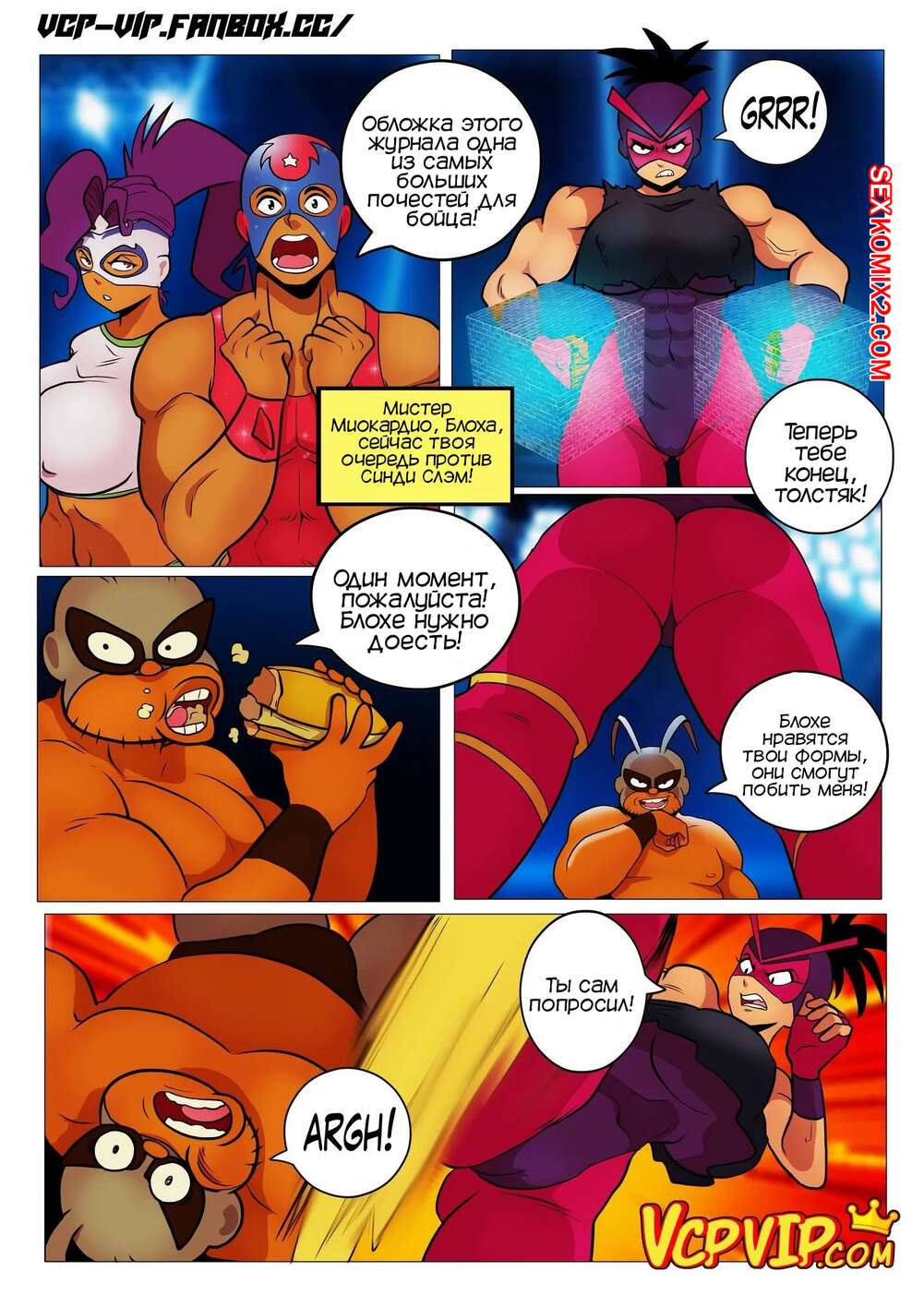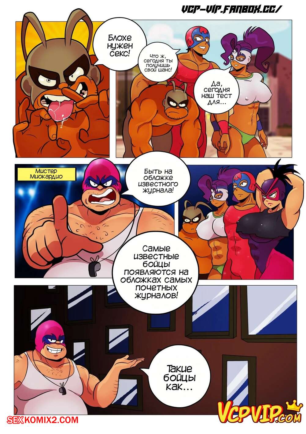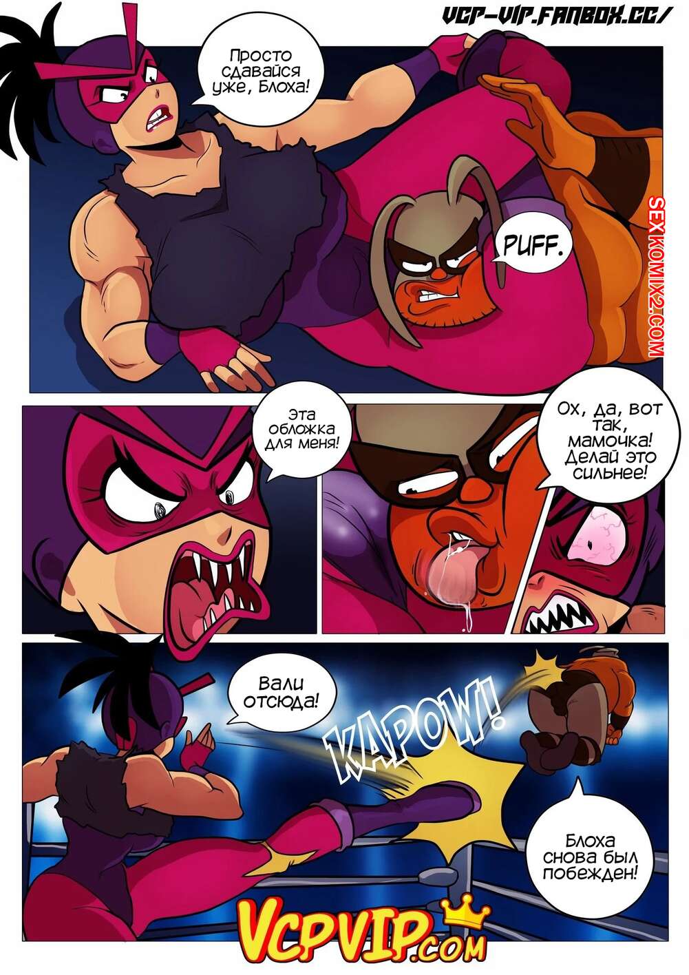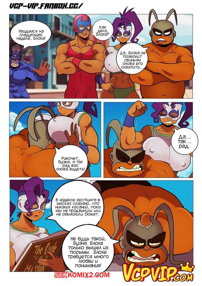 Порно комикс Общий сбор. Mucha Pucha. Gansoman Друзья бойцы отправились бороться за место на обложке популярного журнала. Пока Блохе надрали задницу и он встретился с сексуальной блондинкой и выебал ее, его друзья боролись между собой и тоже занялись сексом.
