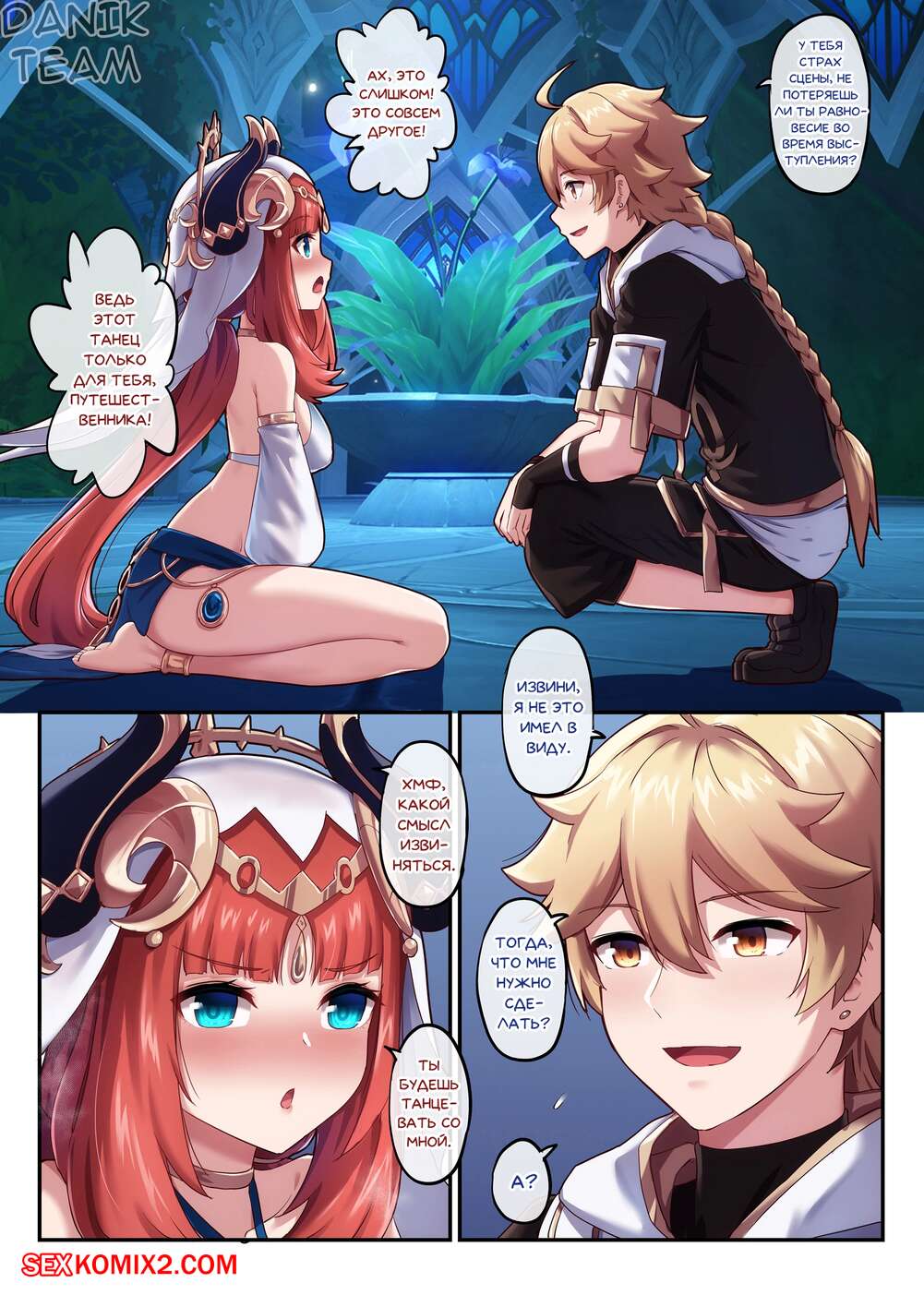 Порно комикс Genshin Impact. Итэр и Нилу. Часть 1. Aether and Nilou. Daidailong Молодая горячая брюнетка была очень возбуждена и хотела трахаться. Она надела свой самый сексуальный наряд и стала красоваться перед парнем, желая его хорошенько возбудить.