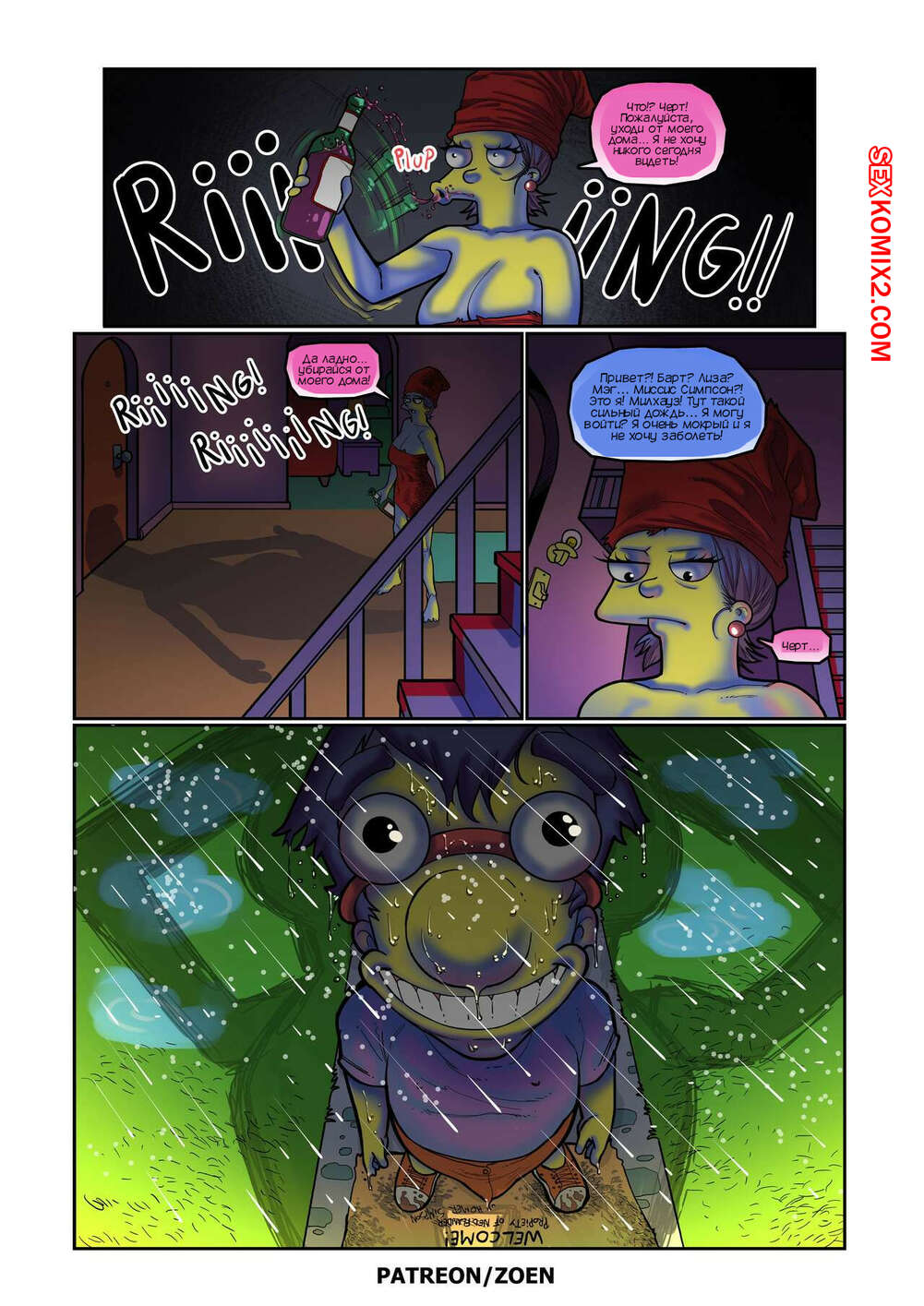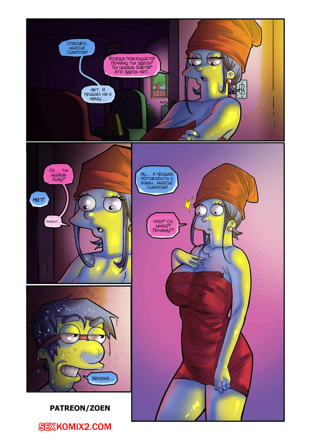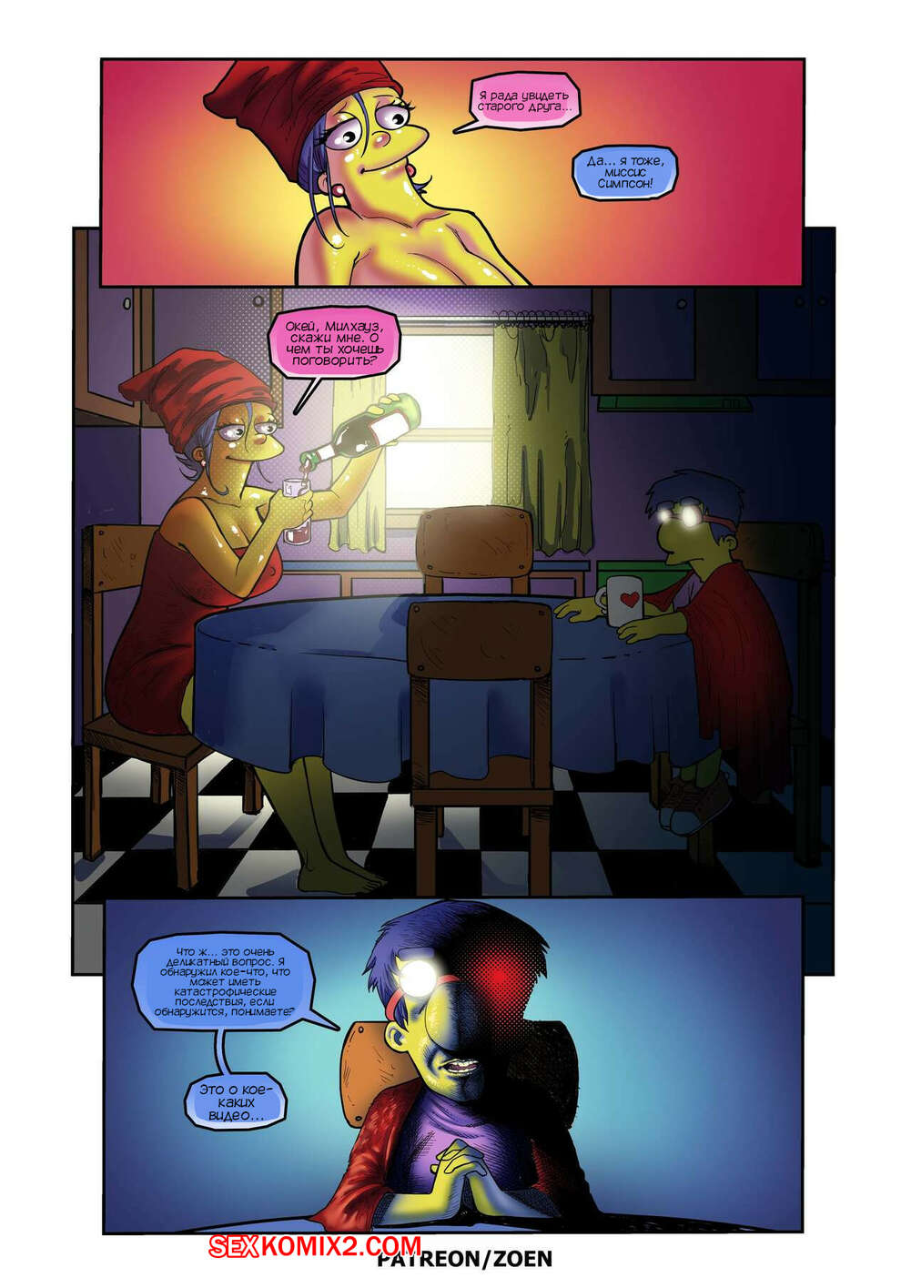 Порно комикс Симпсоны. Мать моего лучшего друга. Часть 2. The Simpsons. Zoen Сисястая милфа Мардж проснулась и услышала звонок в дверь. Это к ней пришел Милхауз, который нашел порно видео с милфой в интернете и решил этим воспользоваться.
