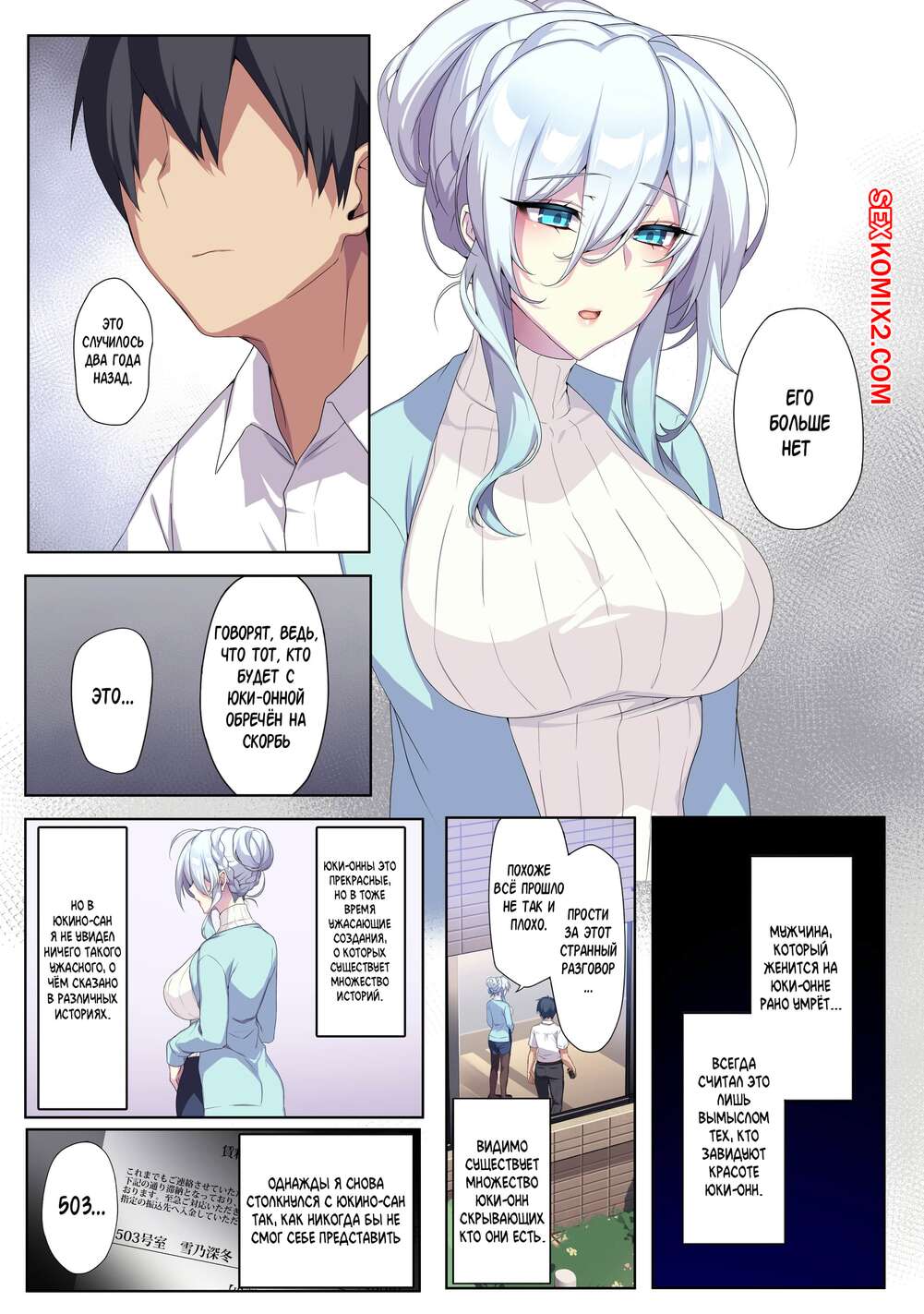 Порно комикс Вдова Юкионна не умеющая общаться, и кольцо проклятья. Часть 1. Zeroshiki Kouichi Горячая сисястая блондинка была очень возбуждена и хотела трахаться. Она разделась перед молодым парнем и стала сосать его большой хуй, после чего дала ему себя выебать.