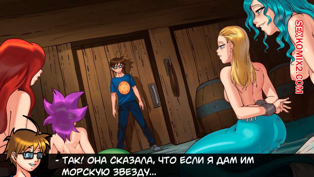 Порно комикс Герои гарема. Часть 4. Harem Heroes Парень плыл на корабле вместе с горячими сексуальными русалками. Девушки решили повеселиться с парнем и стали сосать его большой хуй, после чего он кончил им на лицо.