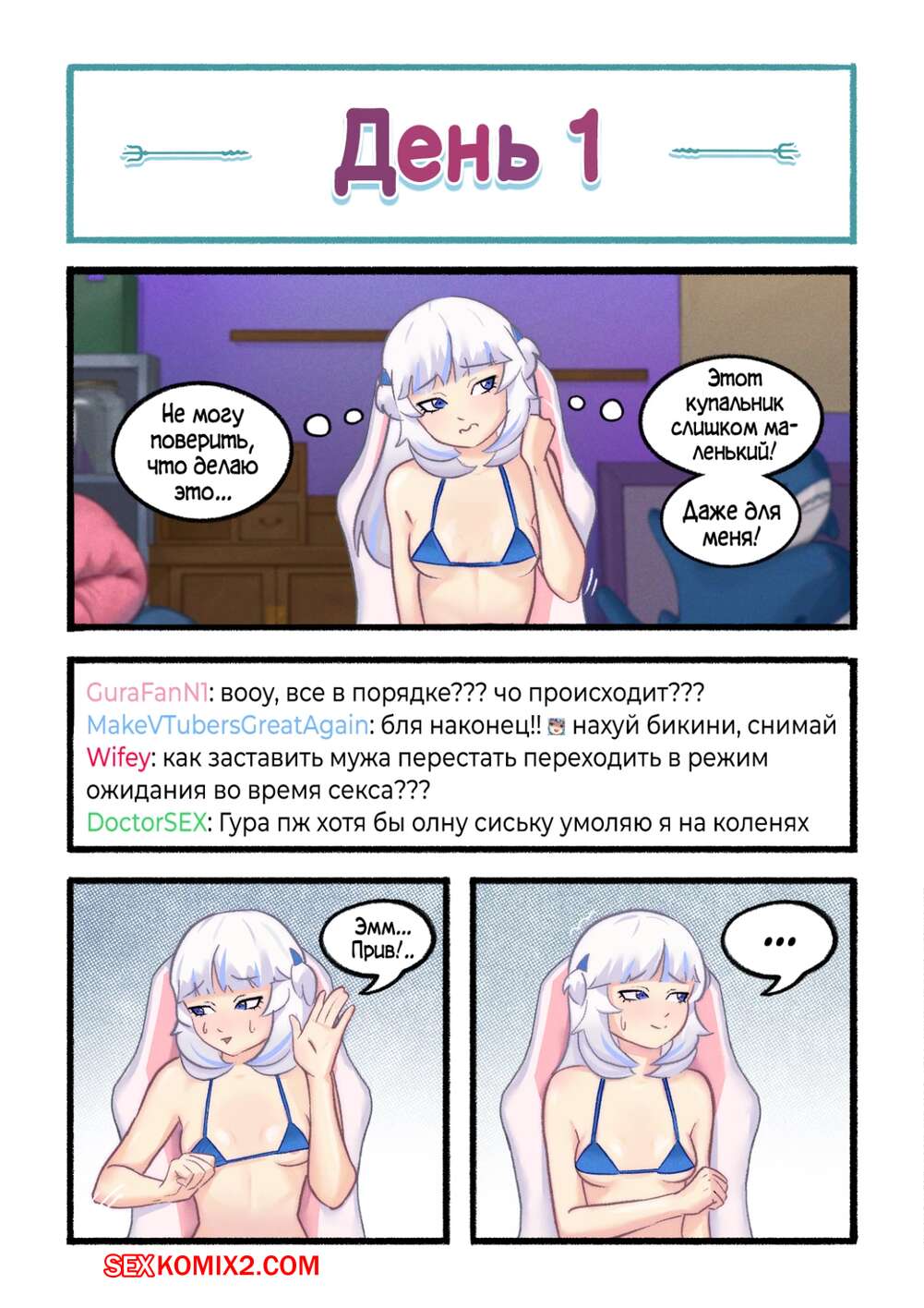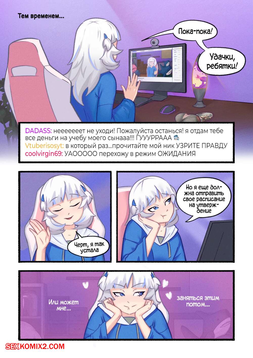 Порно комикс Hololive. Gawr Gura Stream Routine. Young & Naughty Горячая сексуальная блондинка занимается вебкамом. Красотка каждый день раздевается перед камерой и хорошенько ласкает свои дырочки, получая огромное удовольствие.