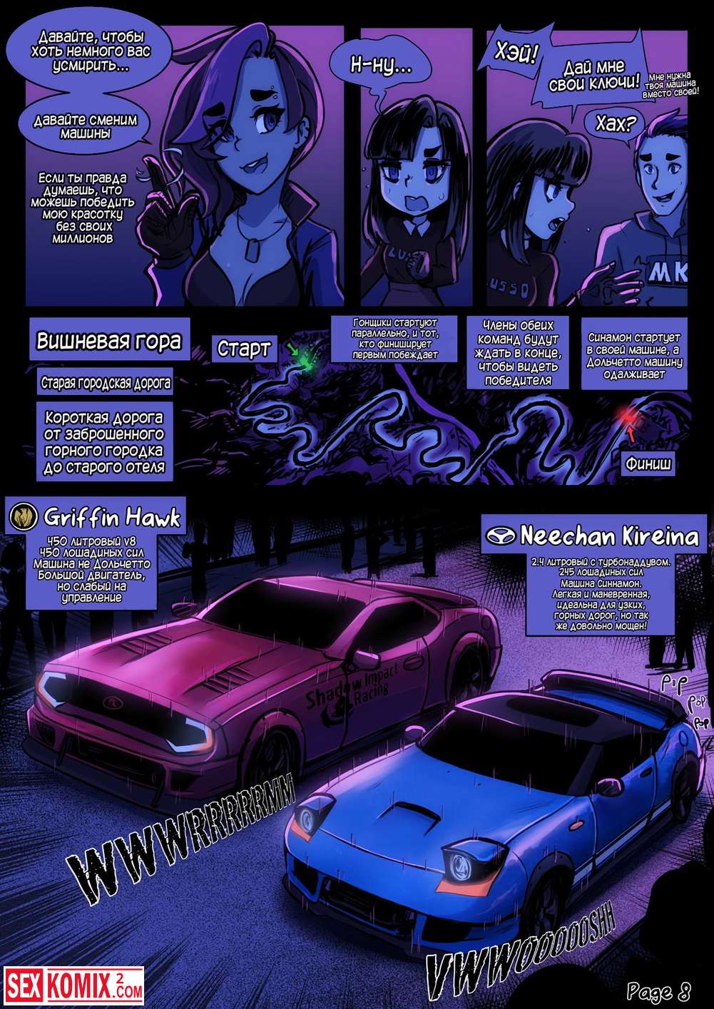Порно комикс Предел мечтаний. Сексуальные девушки устроили ночные гонки по городским улицам. А после соревнований занялись жарким сексом.