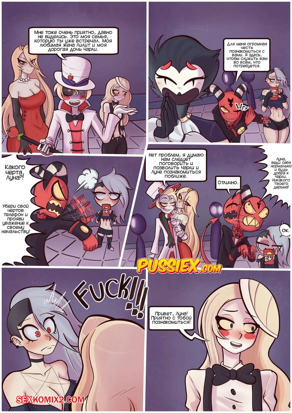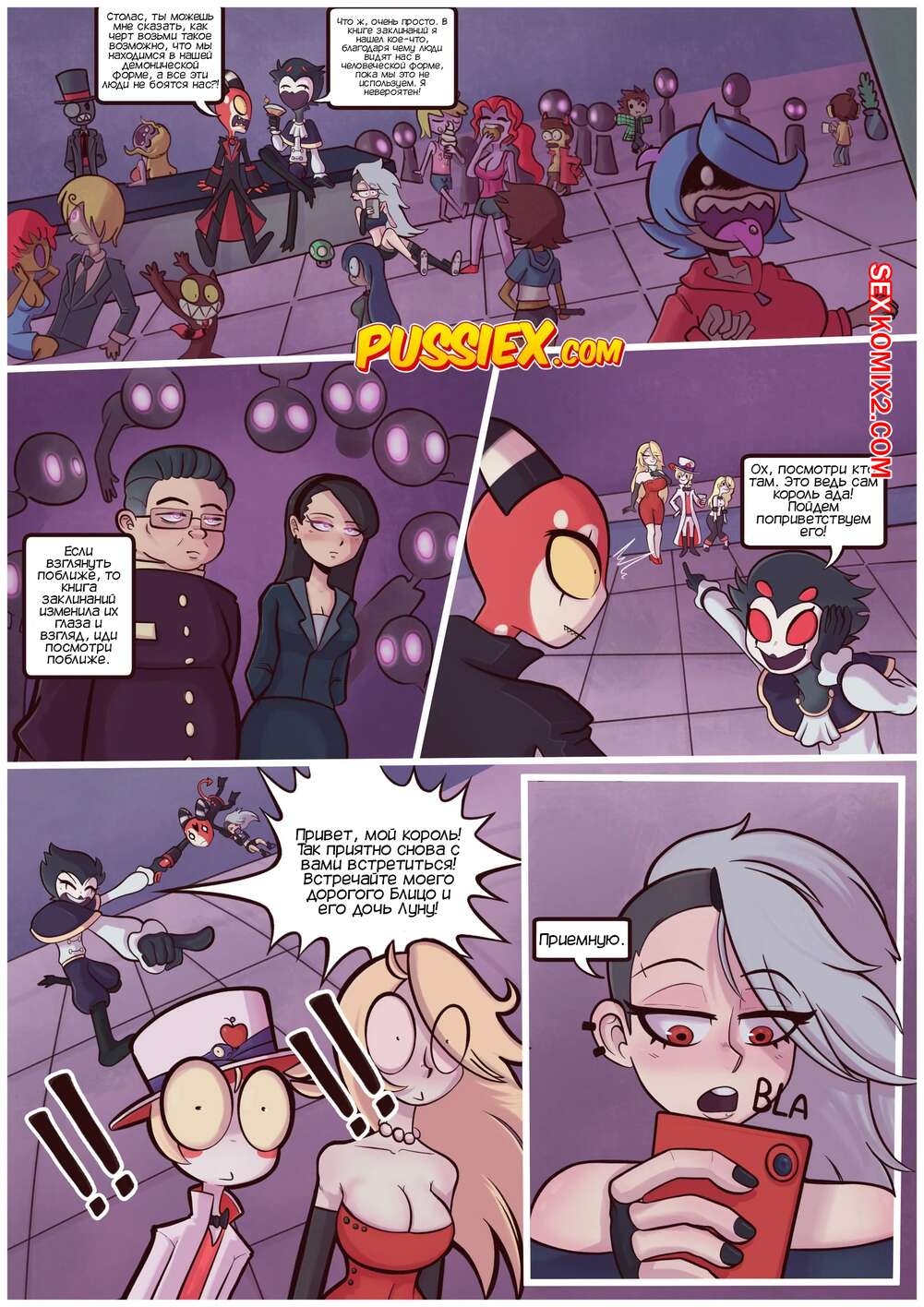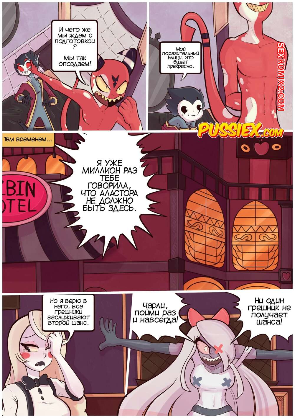 Порно комикс Отель Хазбин. Демоническая неверность. Demonic Infidelity.PussieX. Crock Две сексуальные красотки встретились на вечеринке и решили уединиться. Они стали страстно целоваться, после чего разделись и занялись лесбийской еблей, получив огромное удовольствие.