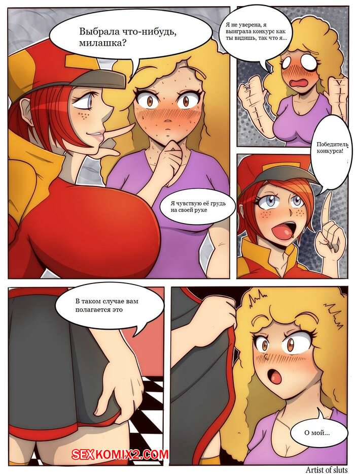 Порно комикс Dick Buns. Часть 1. Artist of Sluts Горячая сисястая брюнетка работает в магазине. К ней пришла сексуальная клиентка блондинка и девушка решила с ней хорошенько повеселиться, выебав горячую красотку в ротик.