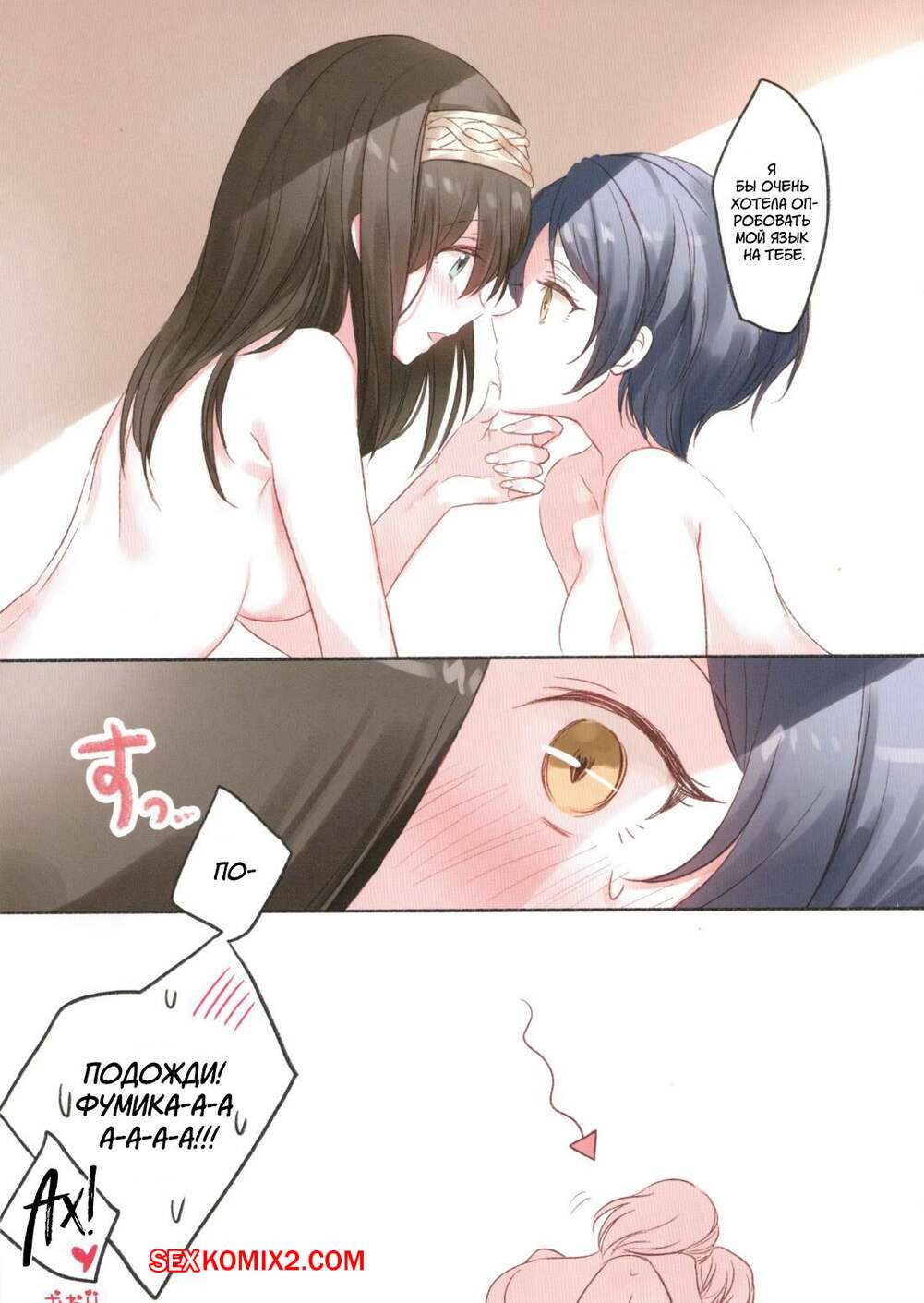 Порно комикс The Idolmaster. Отведи меня в отель любви. Часть 1. Romi Горячие сексуальные брюнетки были очень возбуждены и хотели трахаться. Они разделись и стали ласкать друг дружку, после чего занялись страстной лесбийской еблей.