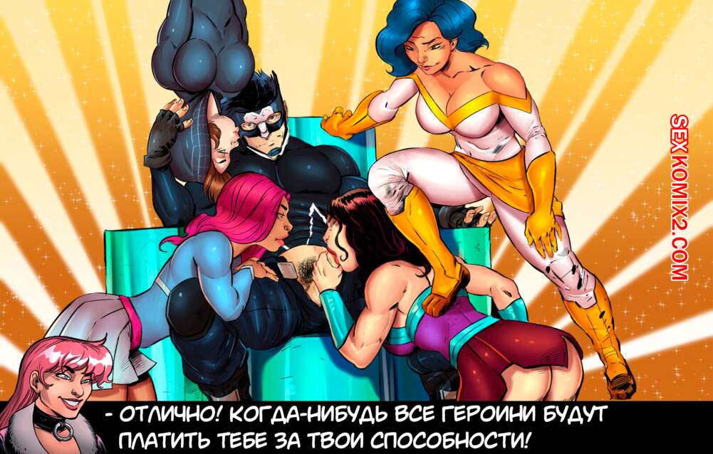 Порно комикс Комиксный гарем. Часть 1. Comix Harem Горячие сексуальные красотки просто без ума от большого хуя своего дружка. Девушки раздеваются и хорошенько отсасывают у парня, после чего дают ему себя выебать.