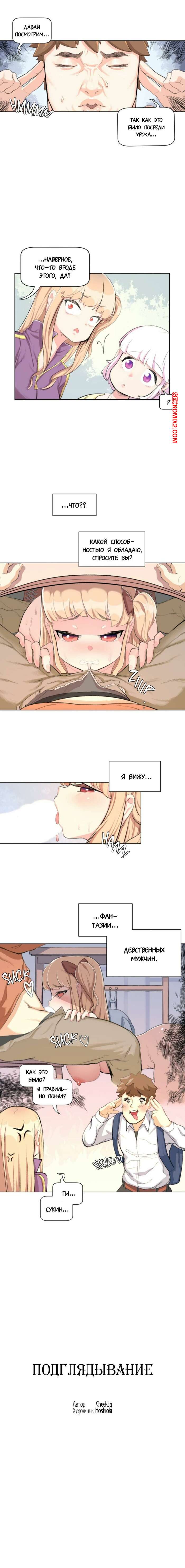 Порно комикс Подглядывание. Части 1 и 2 и 3. Sneak Peek Горячие сексуальные красотки просто без ума от большого хуя своего дружка. Красотки раздеваются перед ним и хорошенько у него отсасывают, после чего дают ему себя выебать.