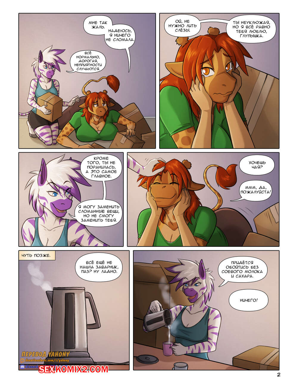 Порно комикс День переезда. Moving day. Kadath Две горячие сексуальные красотки фурри закончили переезд и решили немного повеселиться. Они разделись и стали ласкать друг дружку, после чего занялись страстной лесбийской еблей.