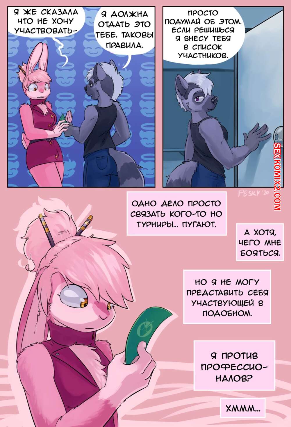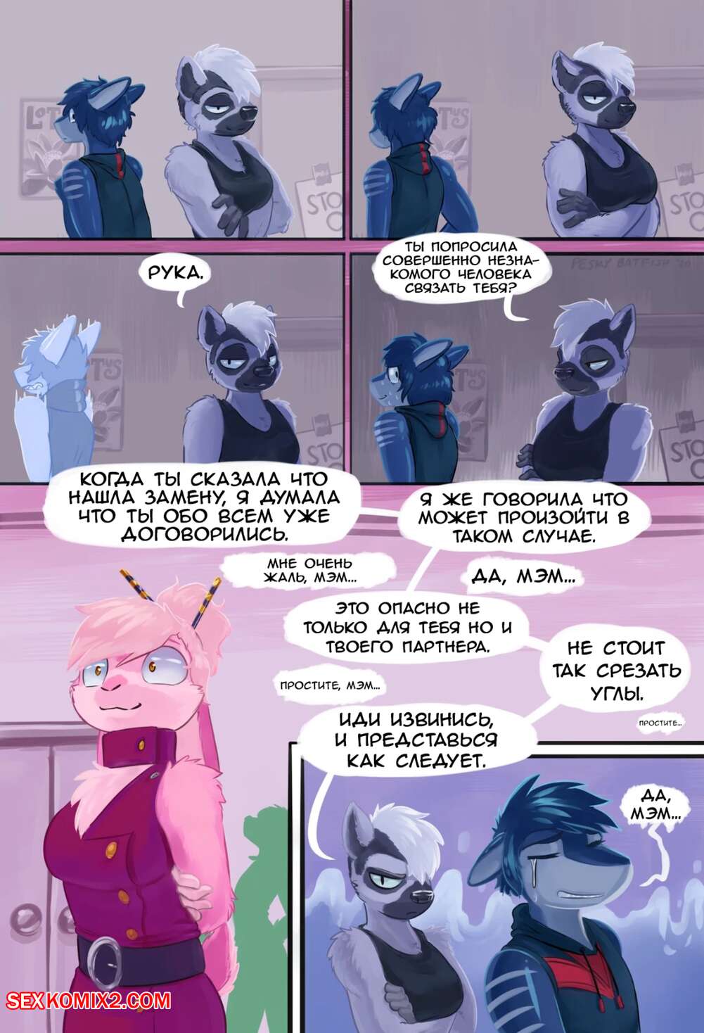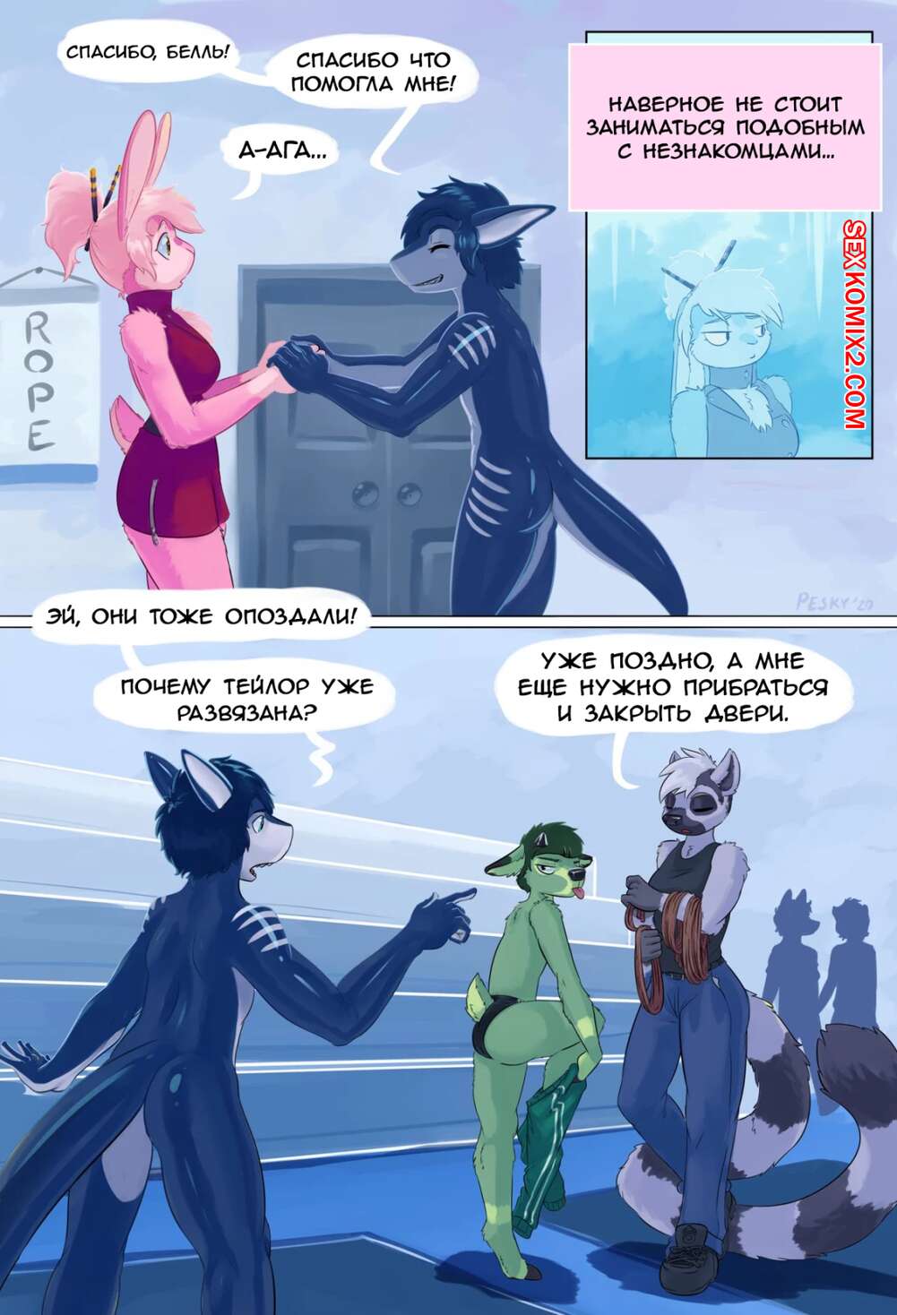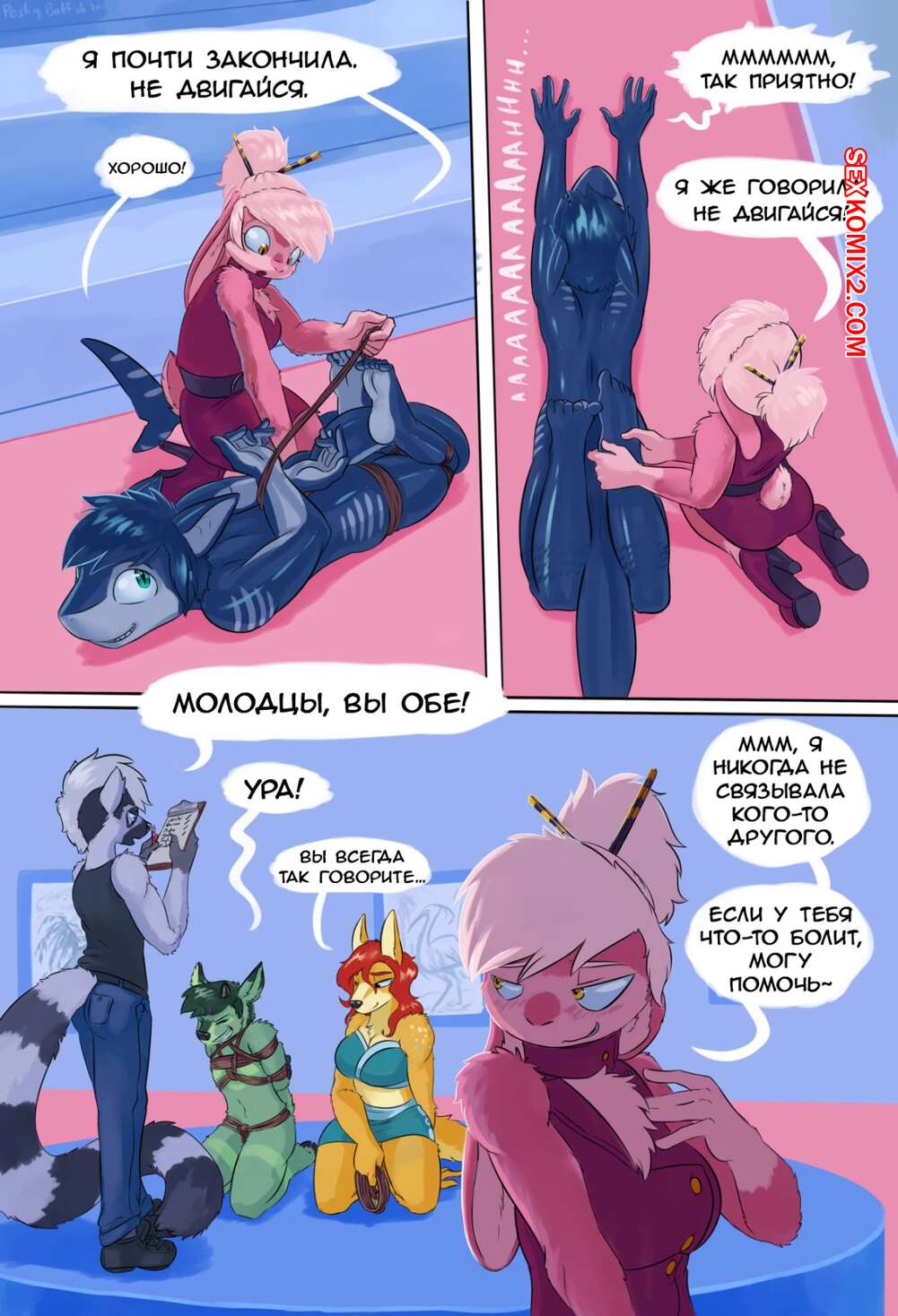 Порно комикс Strained. Часть 2. peskybatfish Горячая сексуальная блондинка отправилась в клуб любителей связываний. Там сексуальная брюнетка обратилась к девушке и попросила ее связать, от чего героиня получила удовольствие.