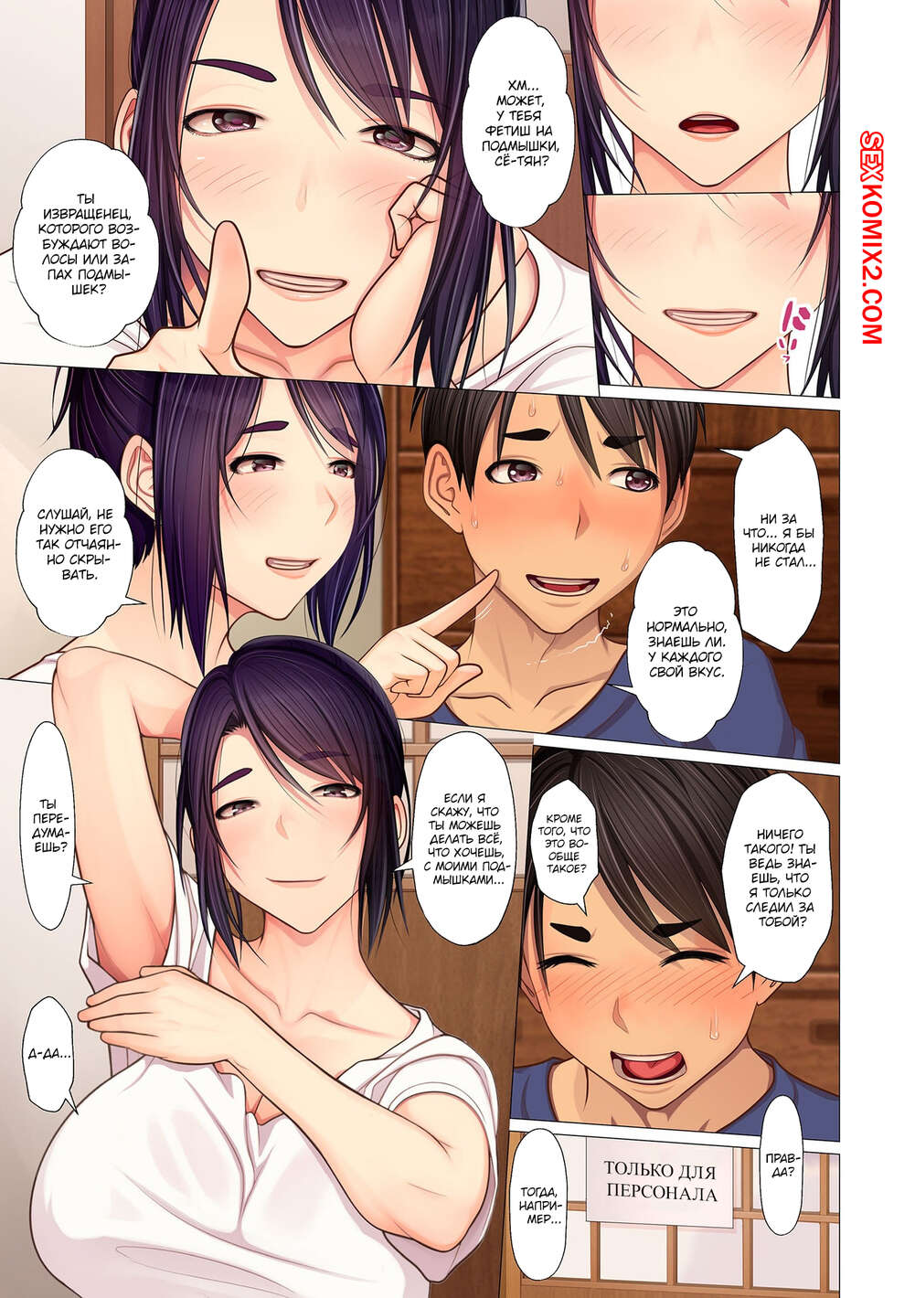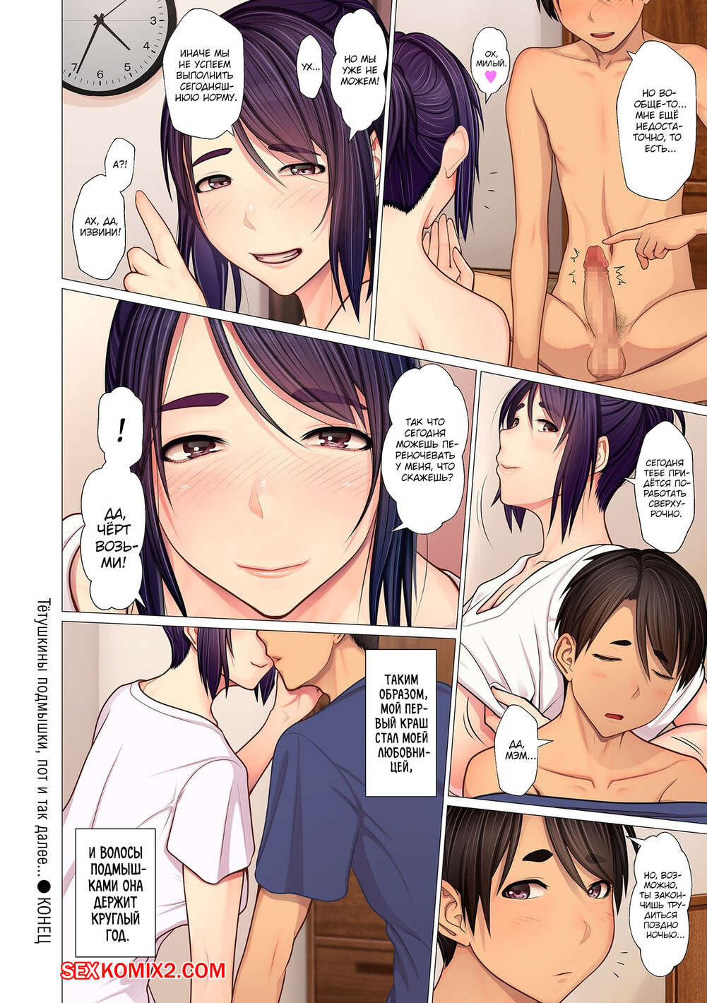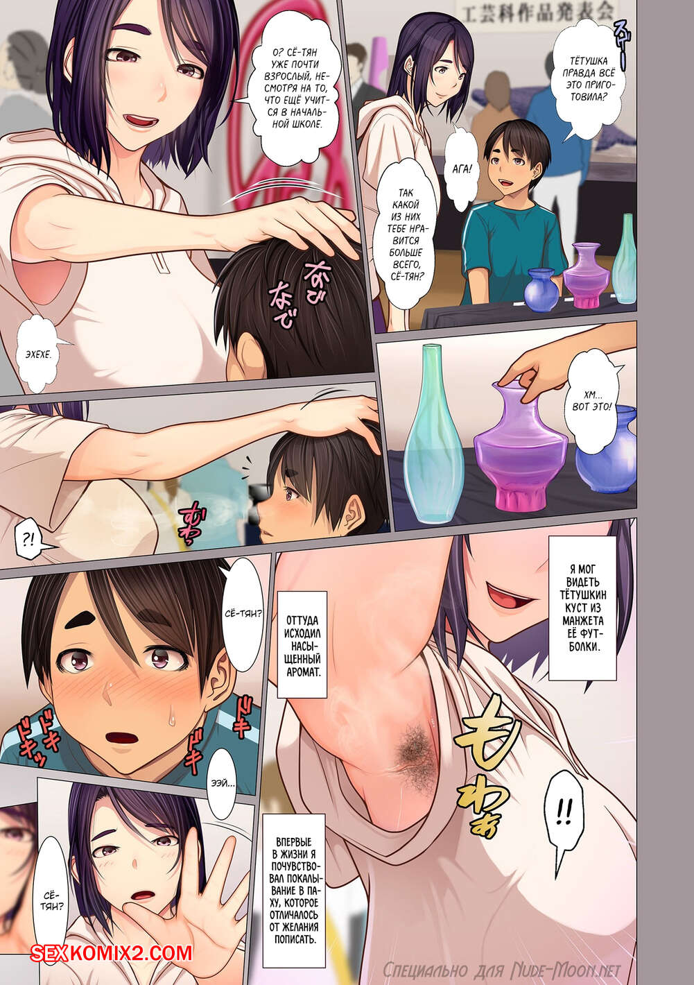 Порно комикс Тётушкины подмышки, пот и так далее. Emori Uki Молодой парень просто без ума от своей шикарной тети милфы. Он раздел красотку и стал ее ласкать, после чего сучка отсосала большой хуй парня и дала ему себя хорошенько выебать.