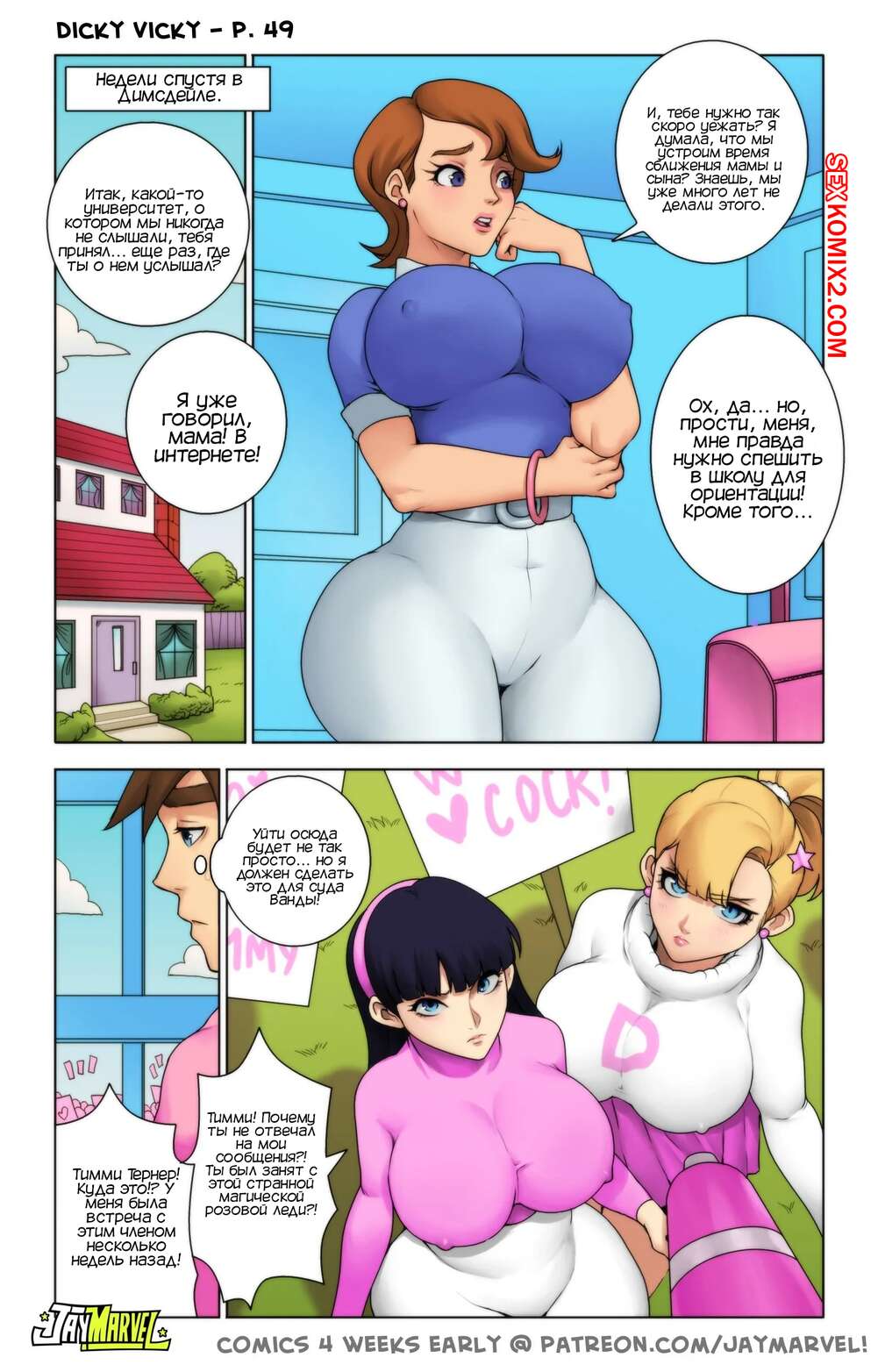 Порно комикс Дикки Вики. Очень странные родители. Dicky Vicky. The Fairly OddParents. Jay Marvel Ванда одержима местью всем, кто издевался над ее мужем Космо. Ей удалось наложить заклятие на всех фей, после чего они с Космо стали королем и королевой. Тимми не согласен с таким раскладом и хочет переубедить свою крестную.