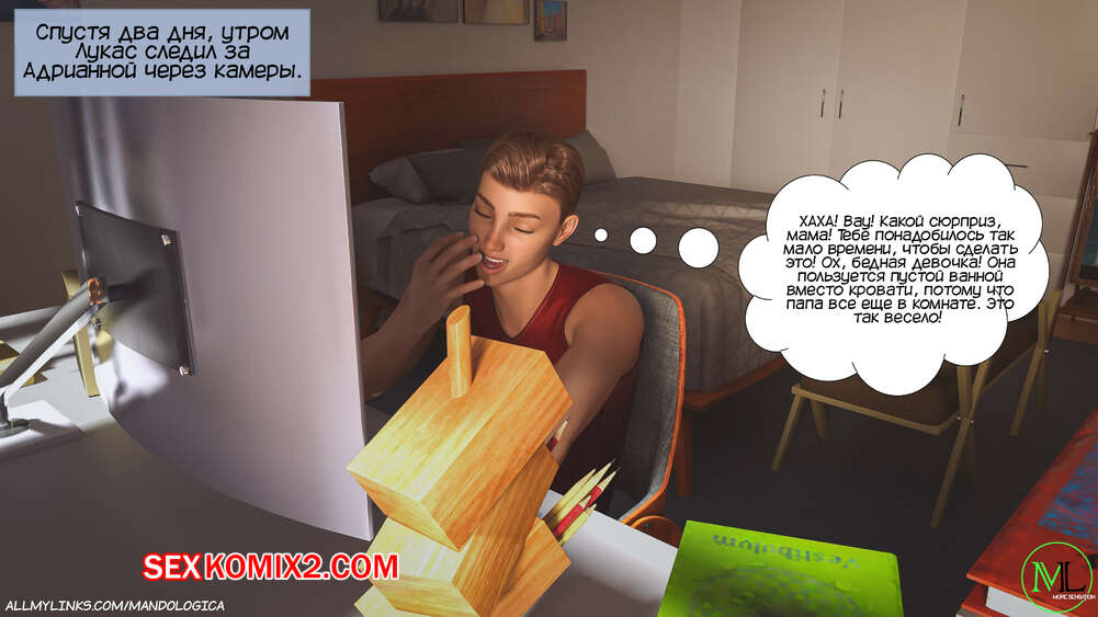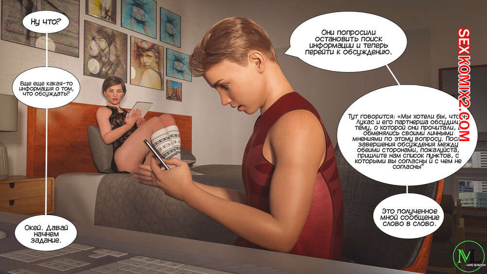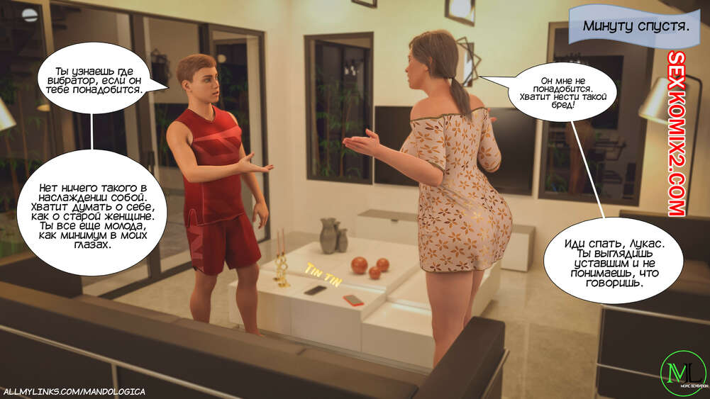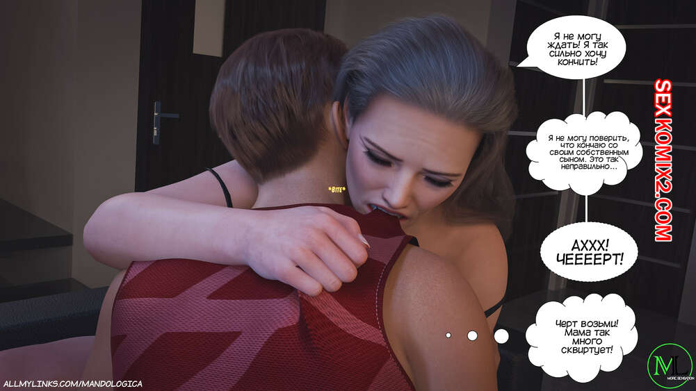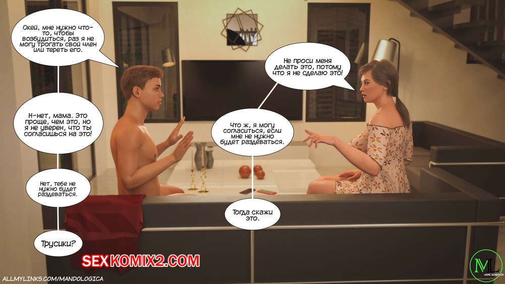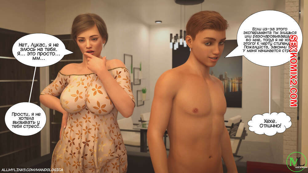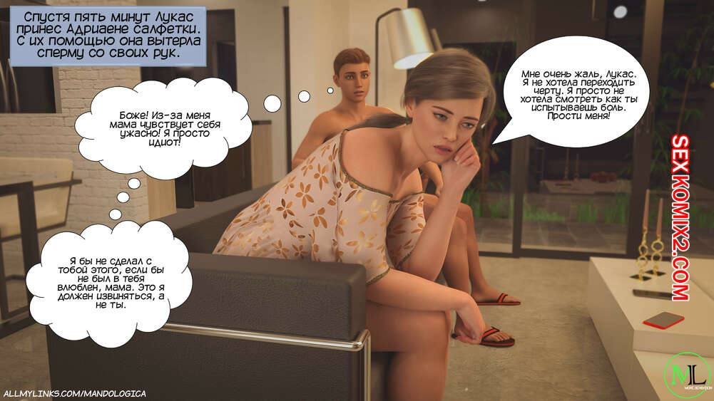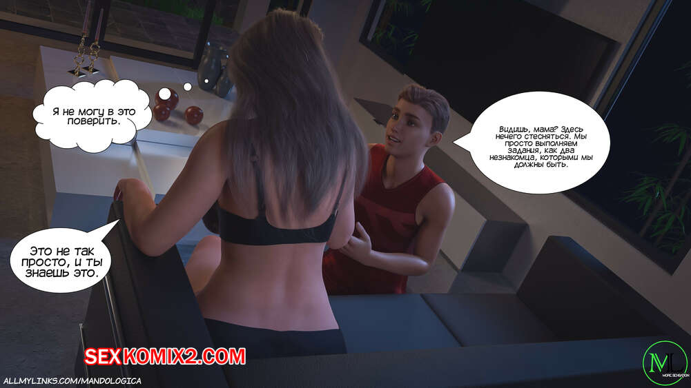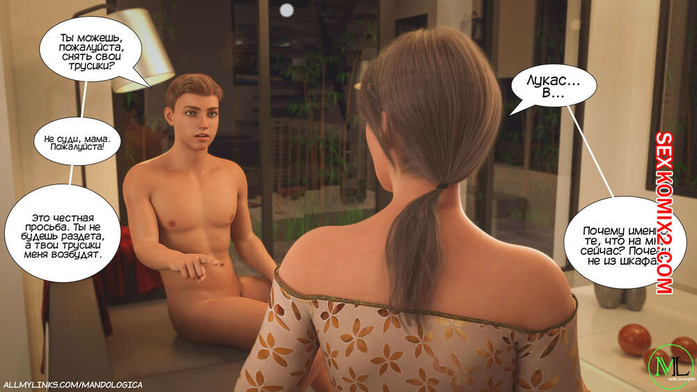 Порно комикс Разрушение границ. Часть 3. Breaking Boundaries. MandoLogica Лукасу необходимо кончить, не касаясь своего члена, и его горячая мамка должна ему помочь. Парню удалось уговорить мамку снять свои трусики, от чего он быстро возбудился.