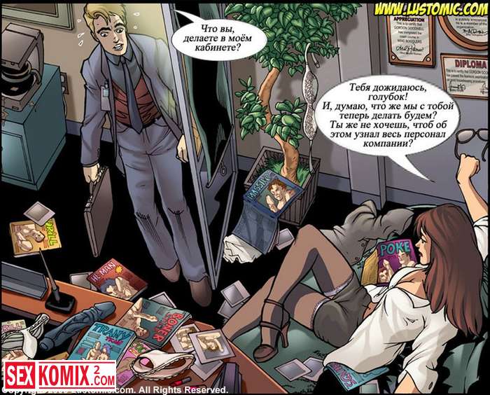 Порно комикс Мой босс – моя секретарша. Брюнетка долго не могла найти работу, а когда нашла босс начал над ней часто шутить. Но когда она нашла в его столе журналы с гей порно все изменилось.