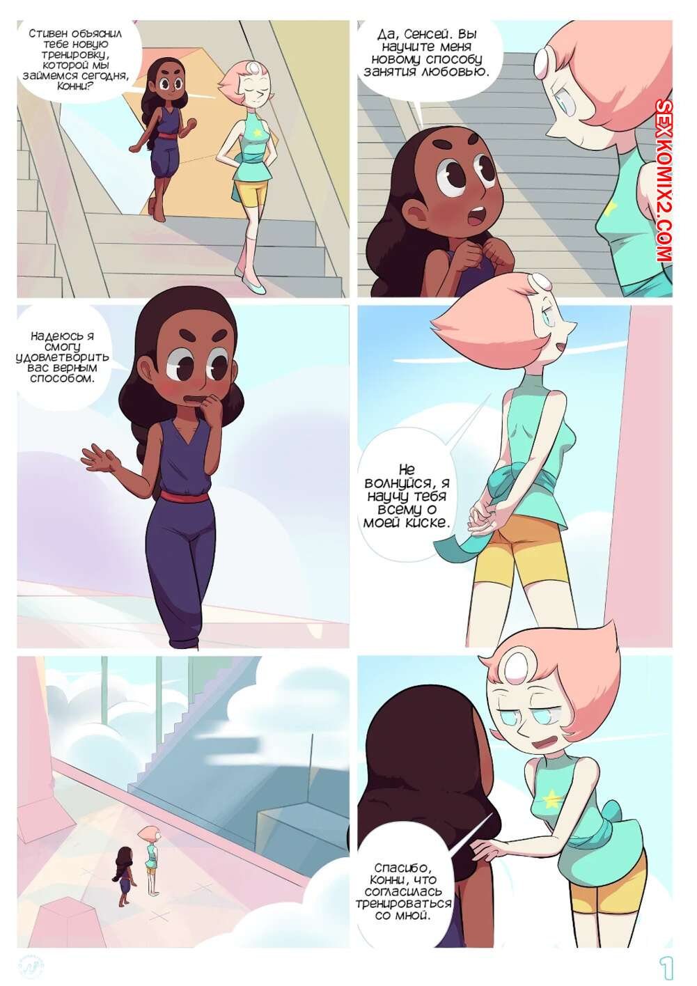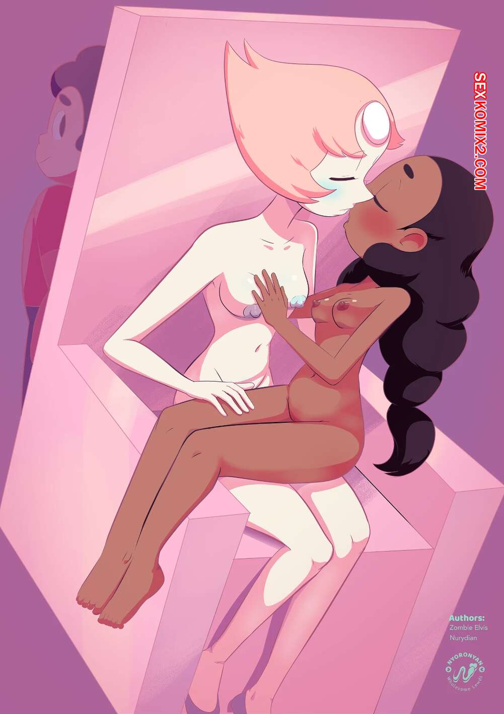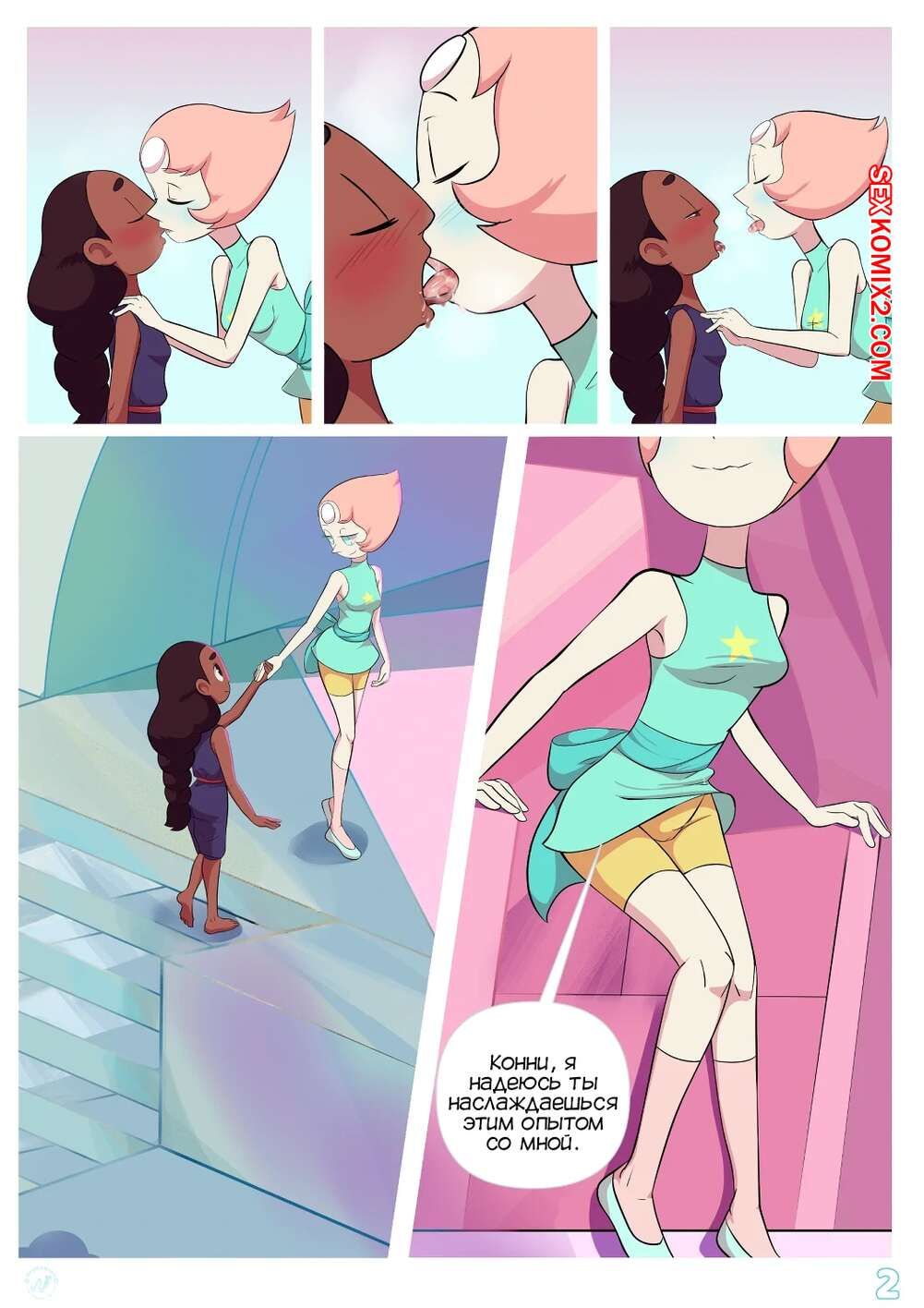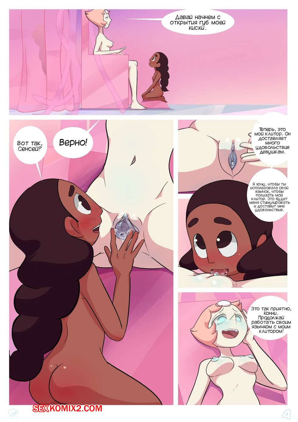 Порно комикс Стивен. Обучение Перл. Pearls training. Nyoronyan Жемчужина решила научить Конни лесбийскому сексу. Она разделась перед ней и дала ей отлизать свою пизденку, после чего к ним присоединился Стивен и хорошенько выебал обеих красоток.