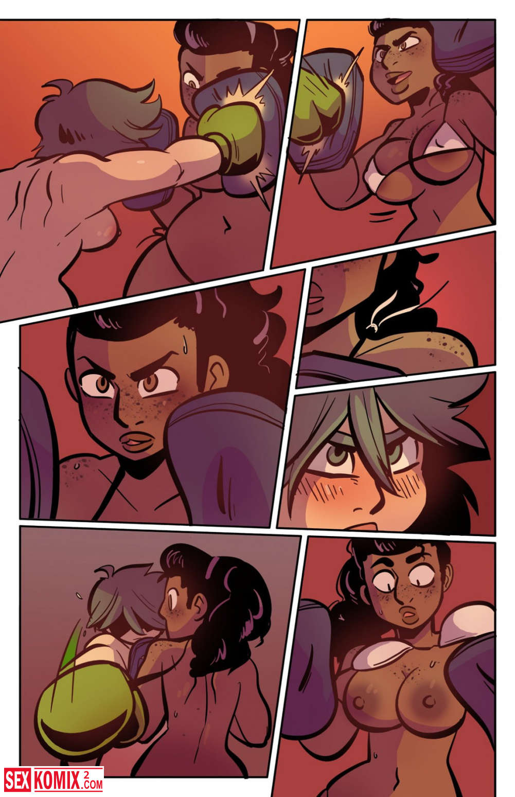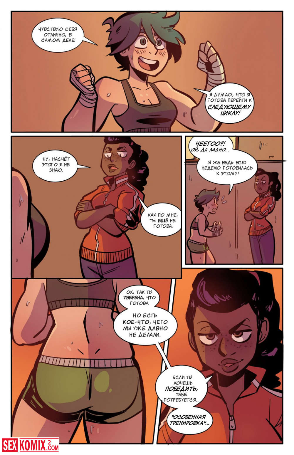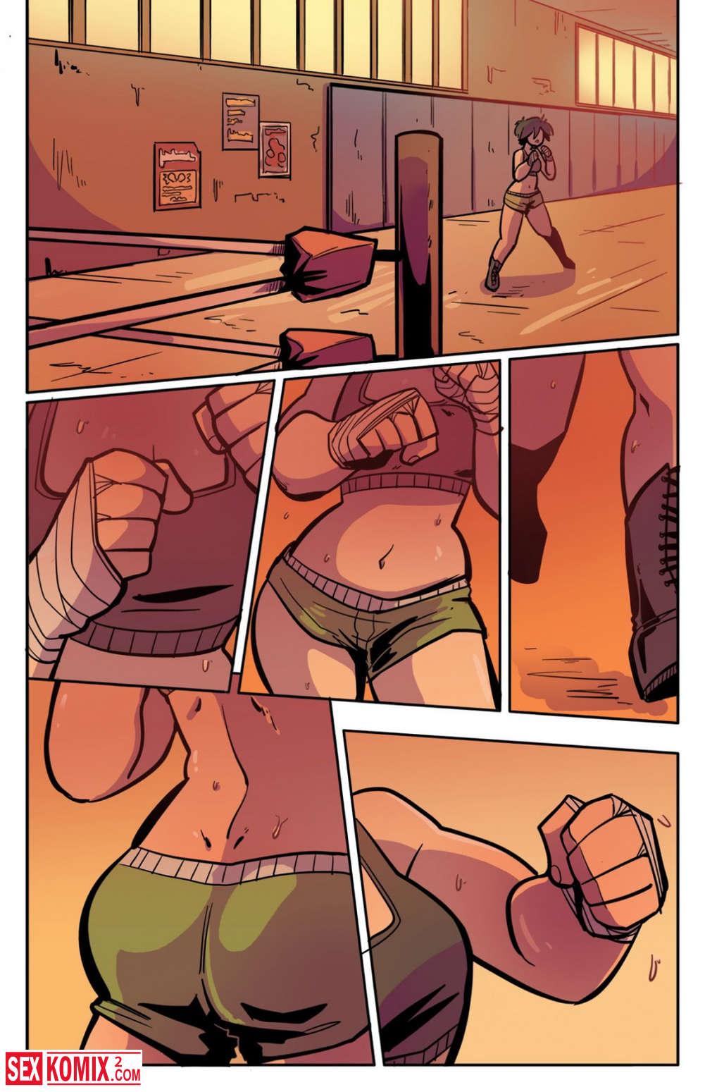 Порно комикс Тренировка Мэй. Девушка готовится к боевым соревнованиям, её тренер решила что пришло время для настоящего испытания и устроила её поединок один на один.