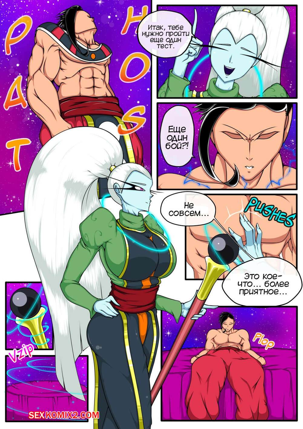 Порно комикс Dragon Ball. Тренировка для бога разрушения. Kari Kani Горячая сексуальная блондинка была очень возбуждена и хотела трахаться. Она разделась перед парнем и стала сосать его большой хуй, после чего дала ему себя хорошенько выебать.