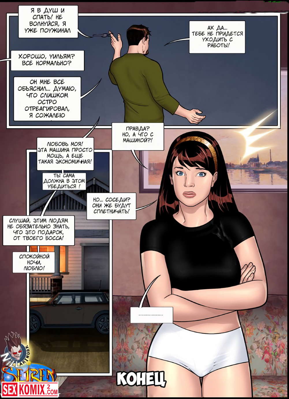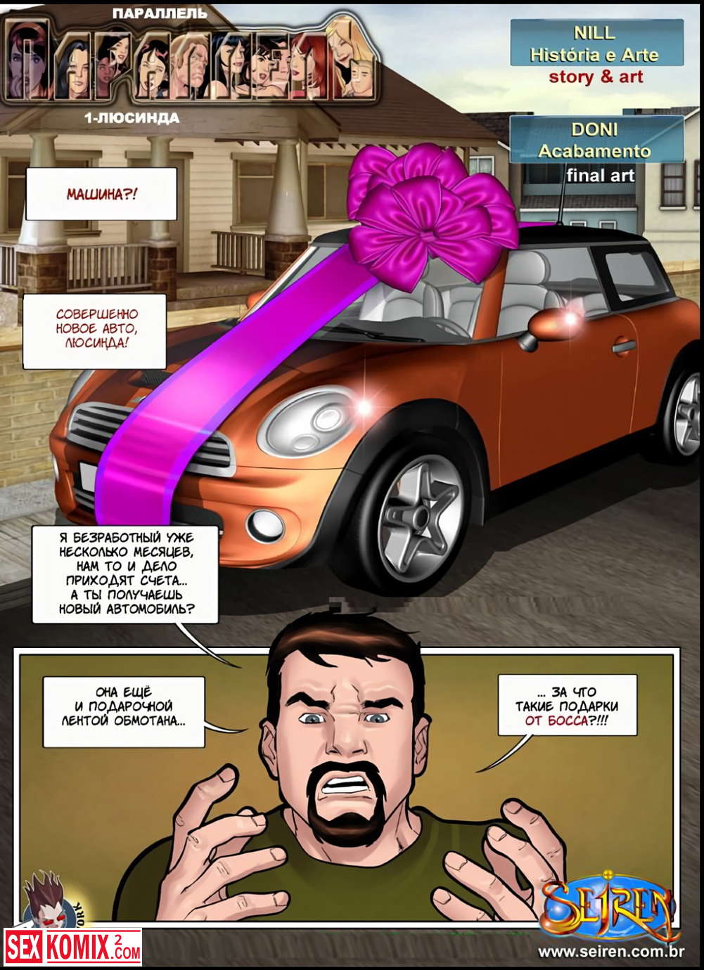 Порно комикс Параллель. Босс подарил девушке машину и её бойфренд заревновал. Она пошла к нему, чтобы отказаться от подарка, но вместо этого они занялись сексом.