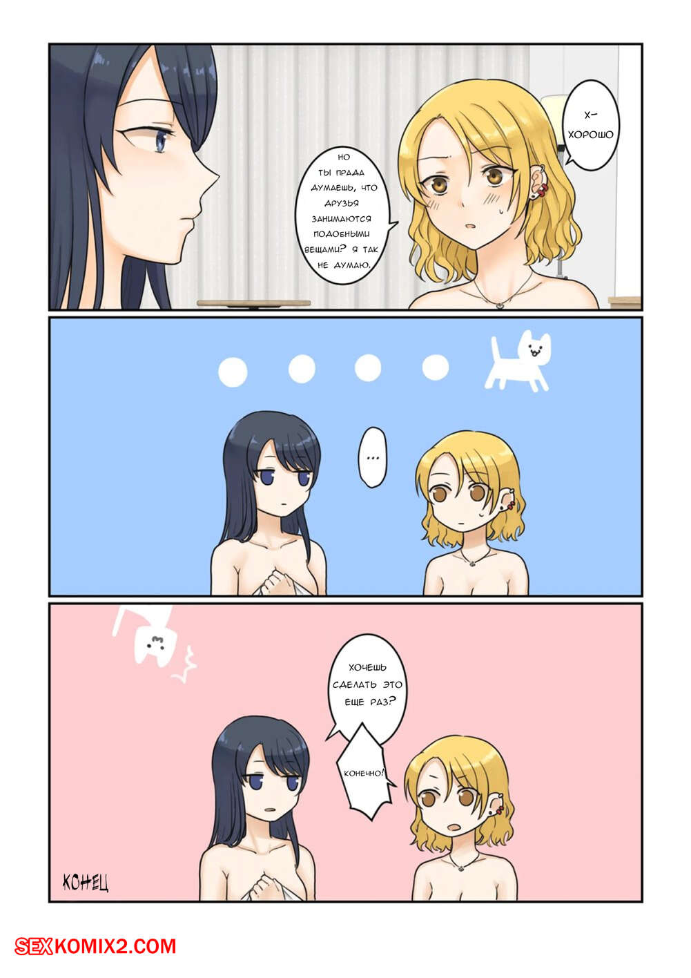 Порно комикс Девушки, которые не ладят друг с другом, трахаются. Fukuroumori Две девушки не ладят друг с другом, но они очень возбуждены и решили потрахаться. Красотка разделись и стали ласкать друг дружку, после чего занялись страстной лесбийской еблей.