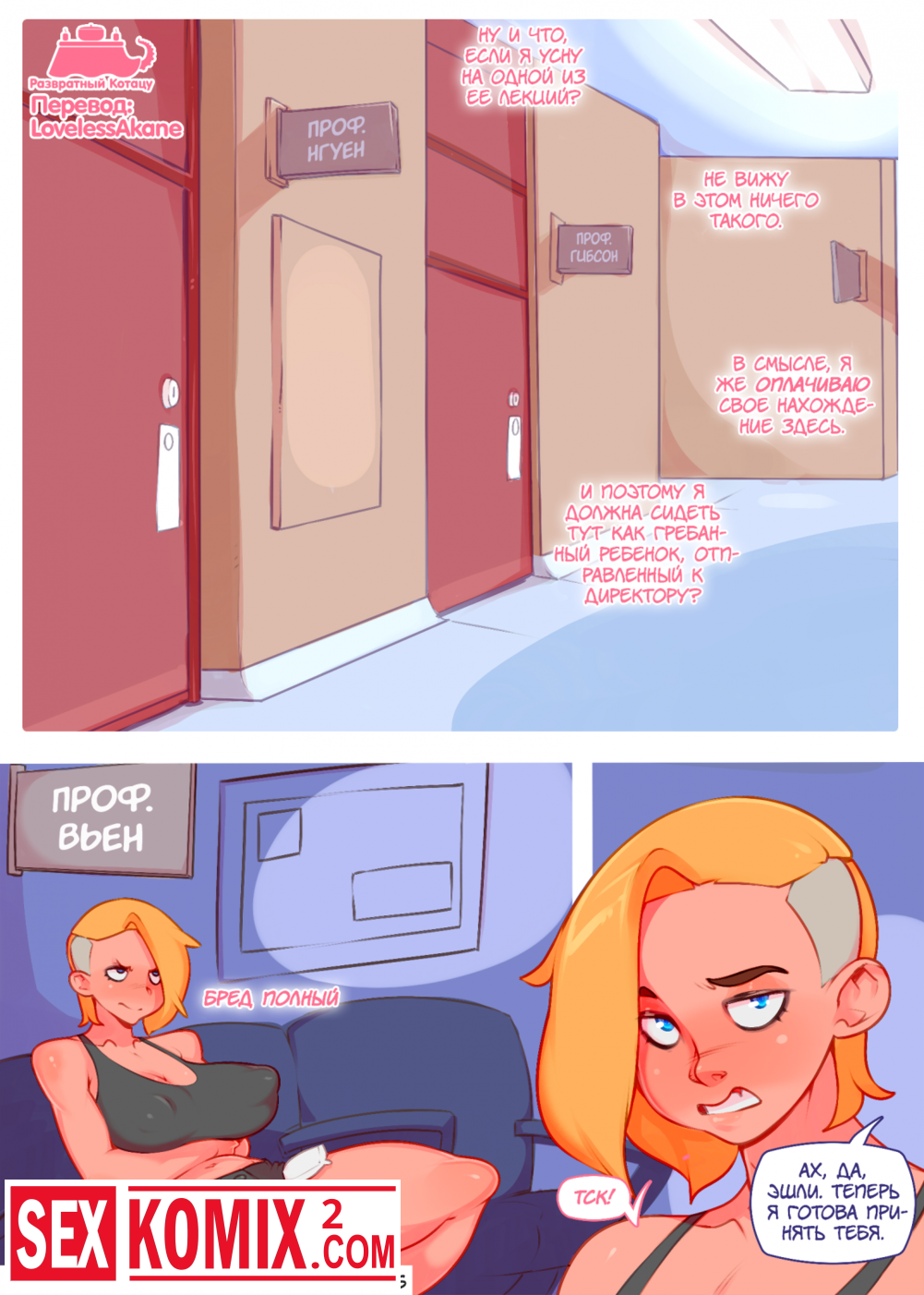 Порно комикс В Это. Часть 2. Транс сидел на лекции и думал что это будет скучно, но горячая учительница развеселила его своими большими сиськами.