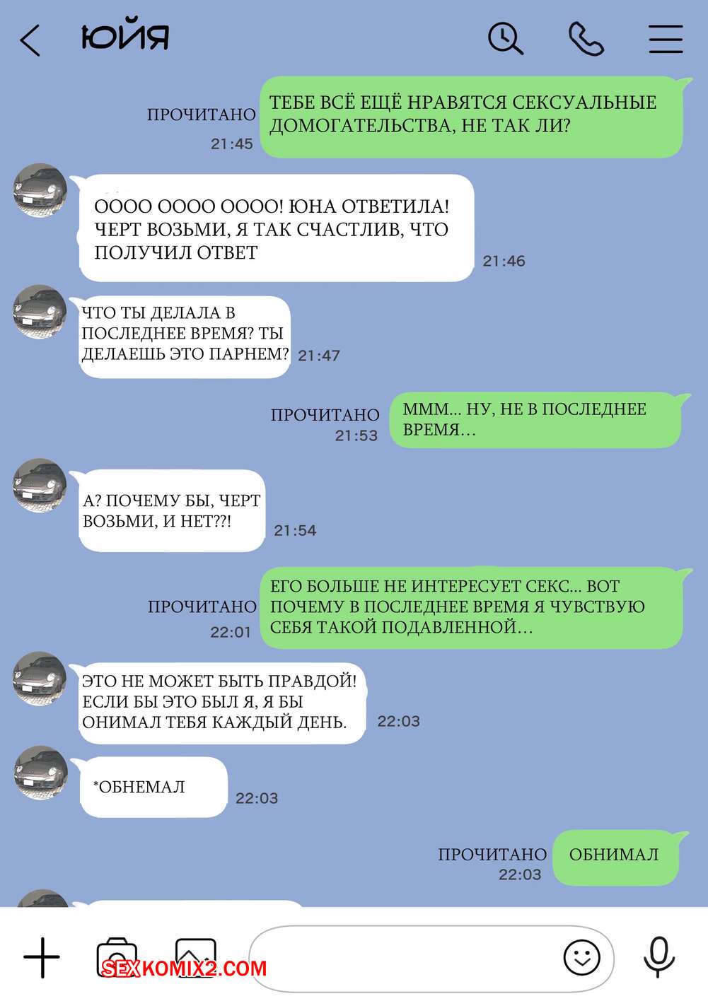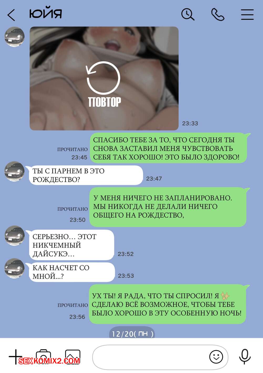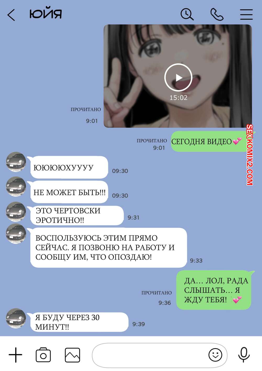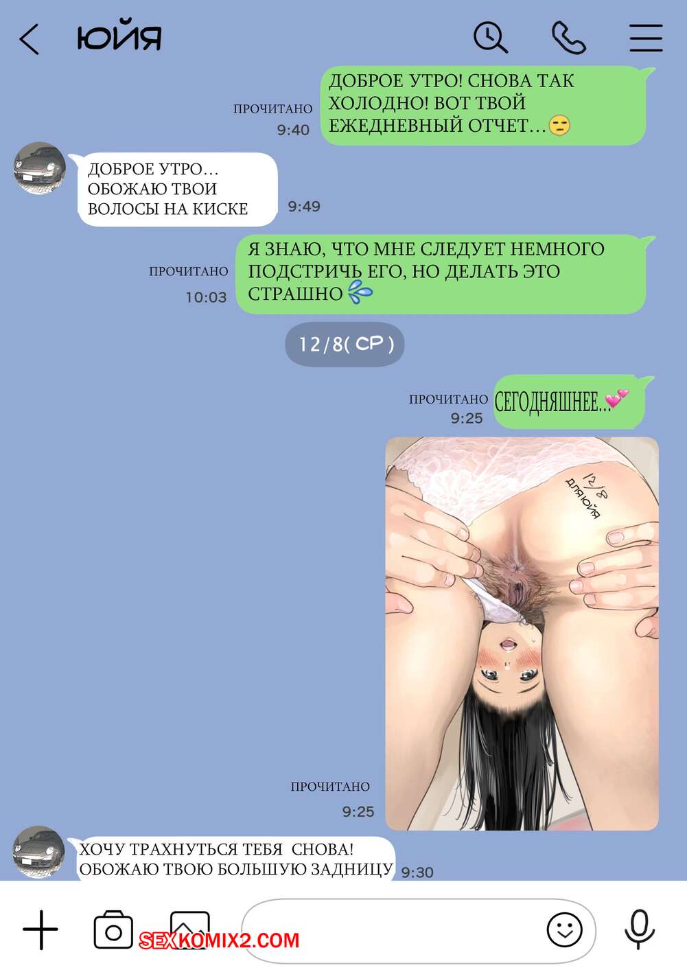 Порно комикс Я только что покопался в её смартфоне. Часть 2 Парень спалил переписку своей девушки с другим парнем и теперь он постоянно изучает ее телефон. Парень видит, как его девушка отправляет свою пизденку другому парню, а также узнал, что она еще и ебется с ним.