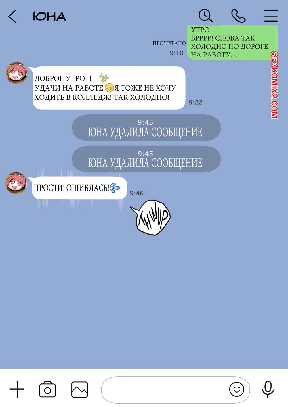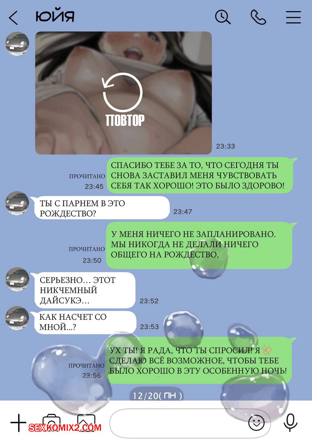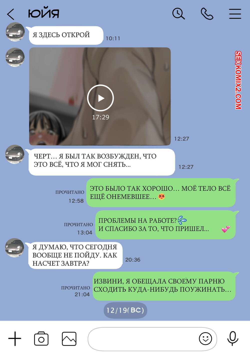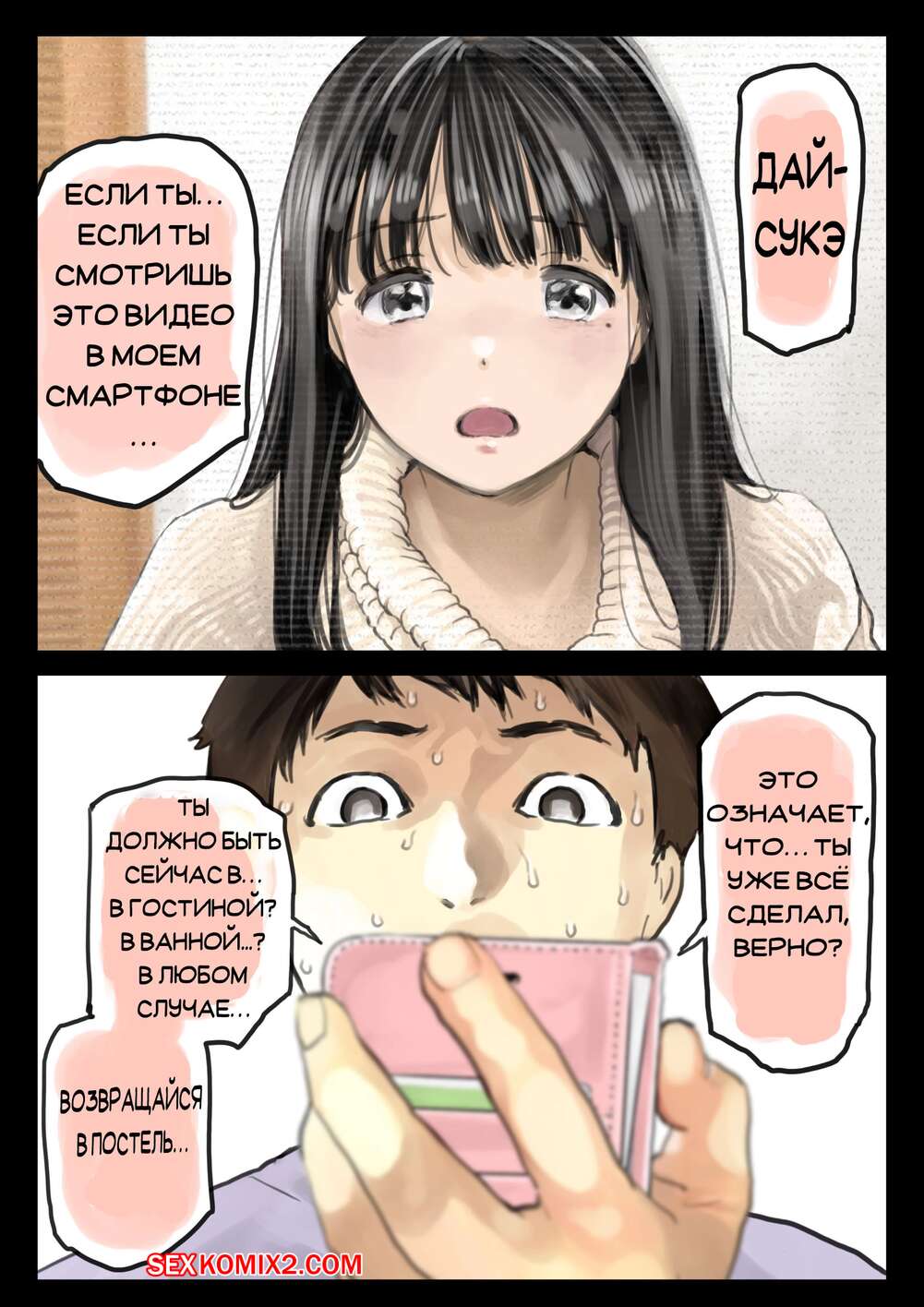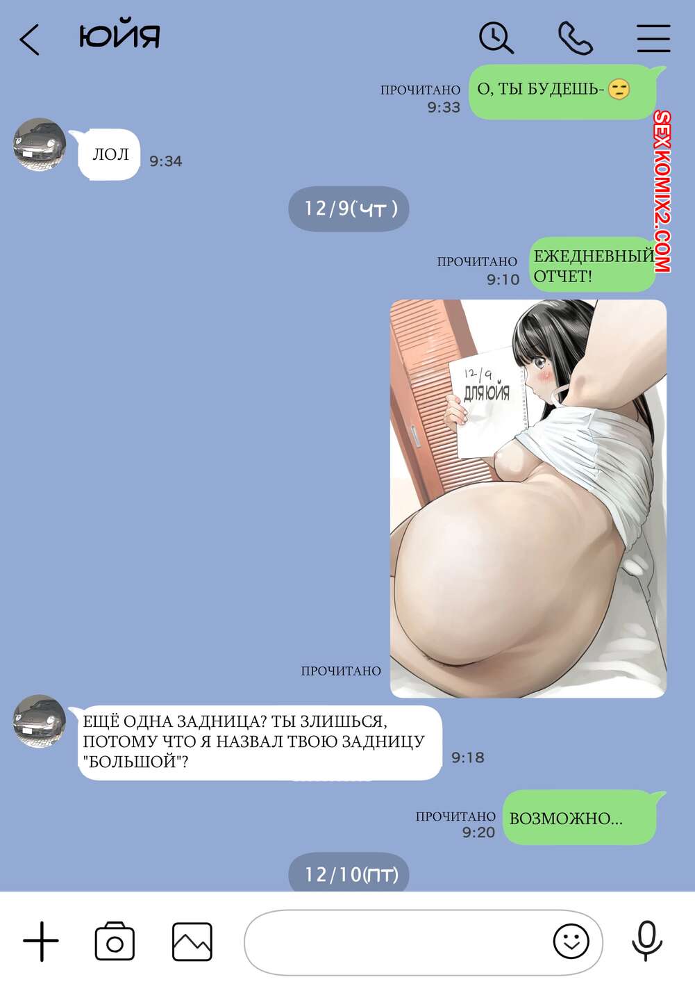 Порно комикс Я только что покопался в её смартфоне. Часть 2 Парень спалил переписку своей девушки с другим парнем и теперь он постоянно изучает ее телефон. Парень видит, как его девушка отправляет свою пизденку другому парню, а также узнал, что она еще и ебется с ним.