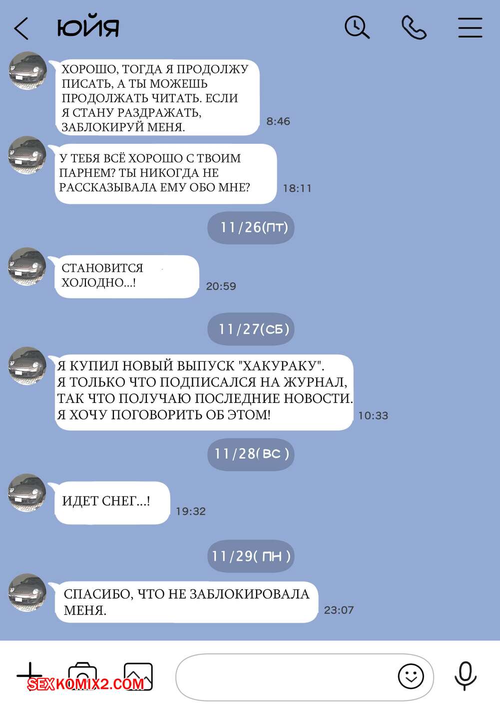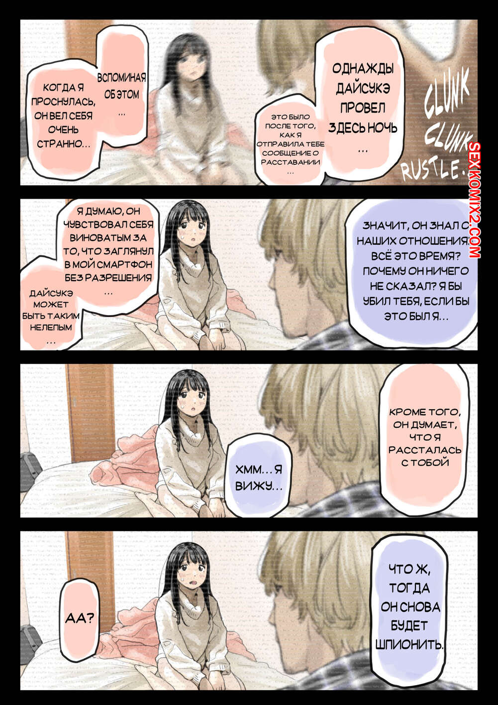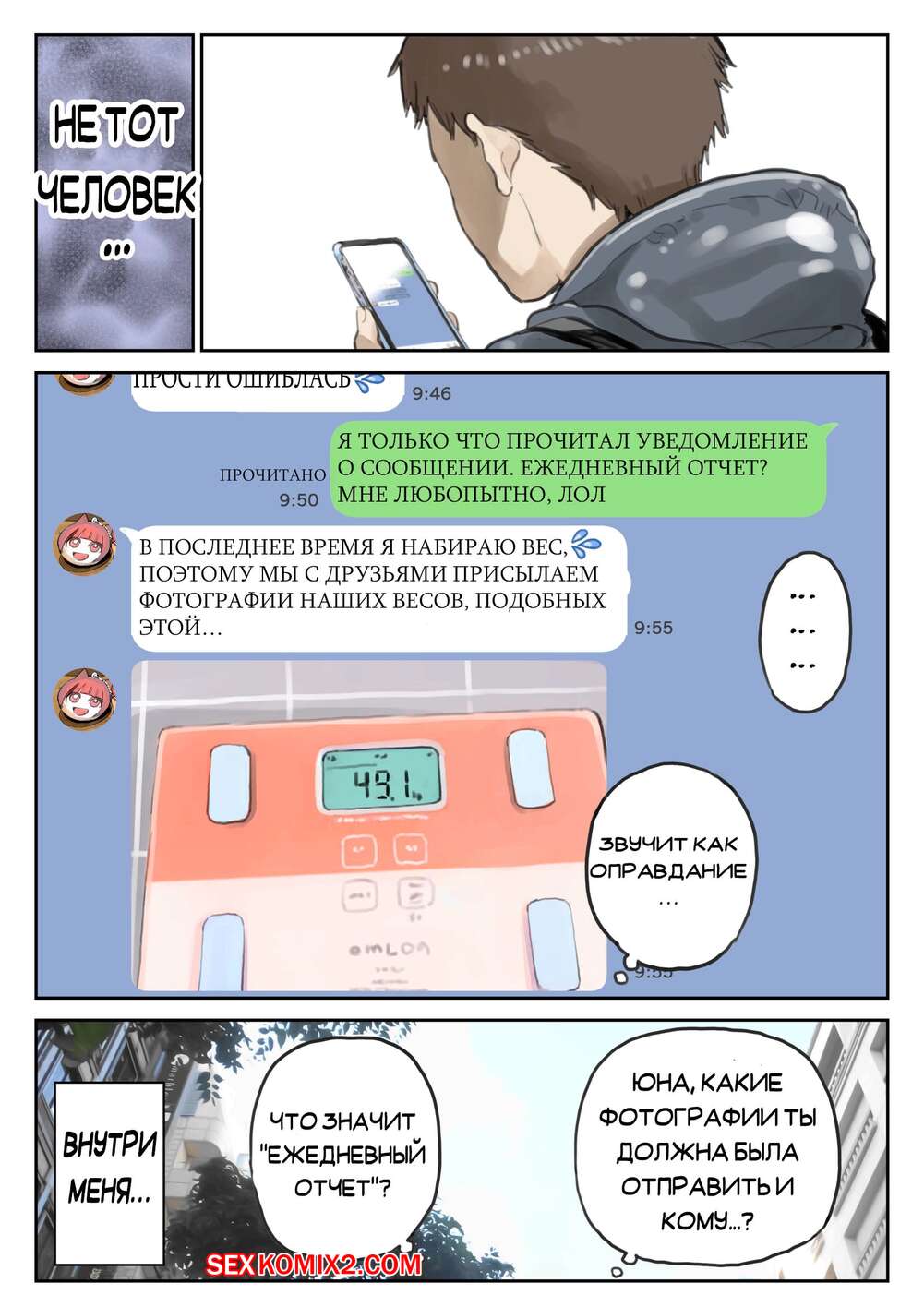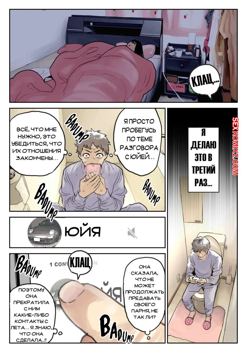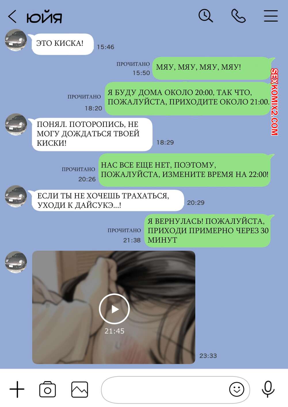 Порно комикс Я только что покопался в её смартфоне. Часть 2 Парень спалил переписку своей девушки с другим парнем и теперь он постоянно изучает ее телефон. Парень видит, как его девушка отправляет свою пизденку другому парню, а также узнал, что она еще и ебется с ним.