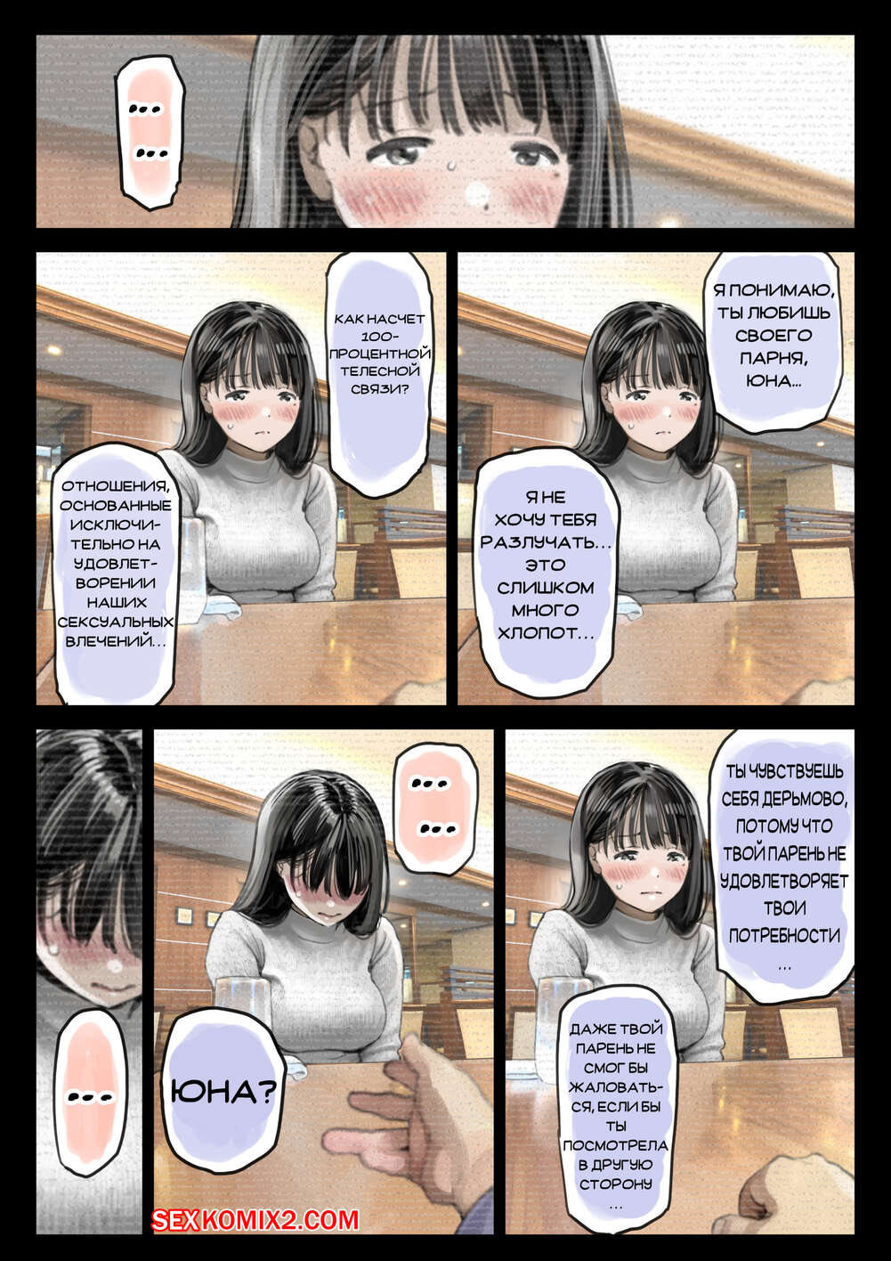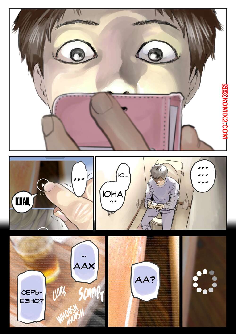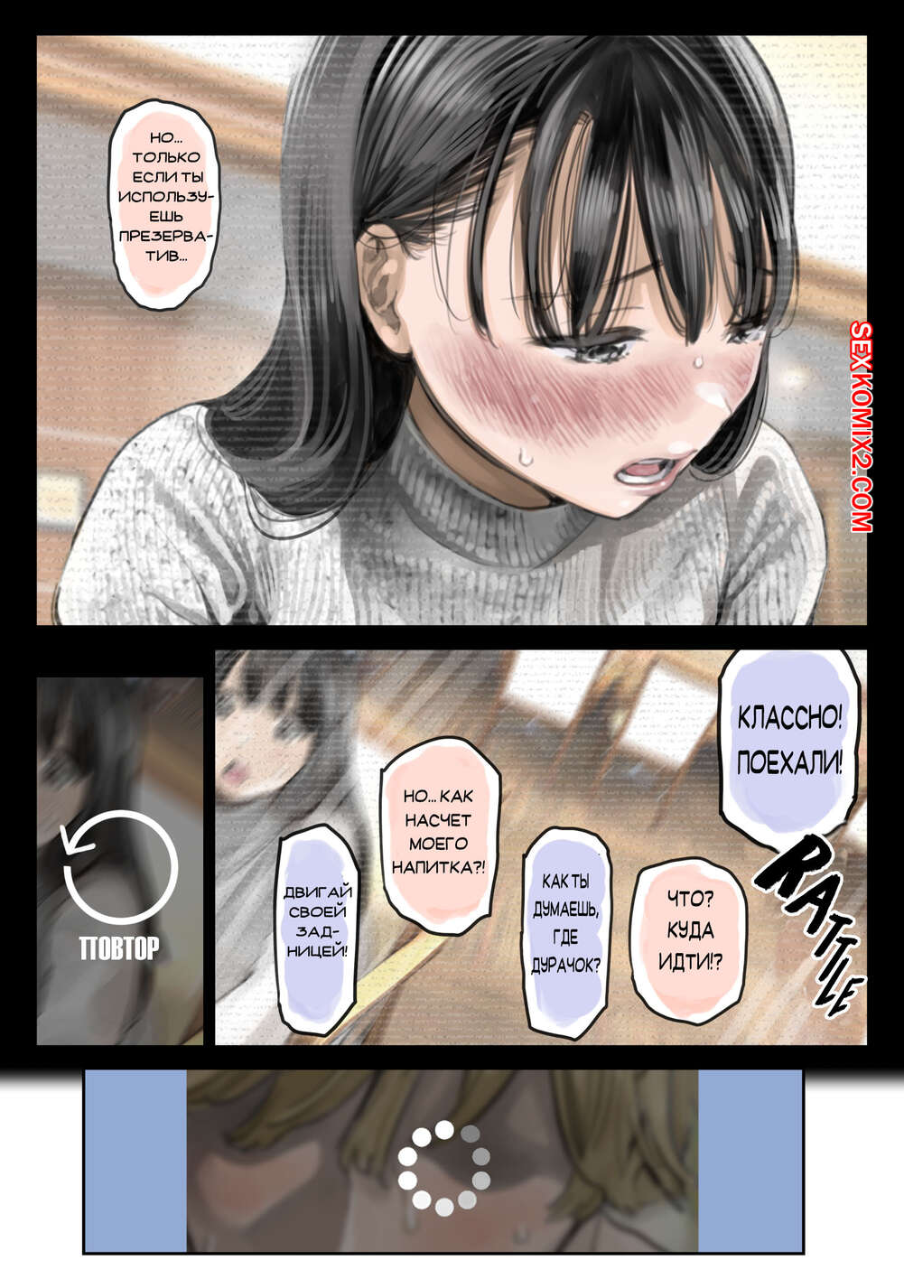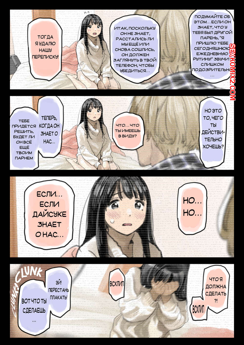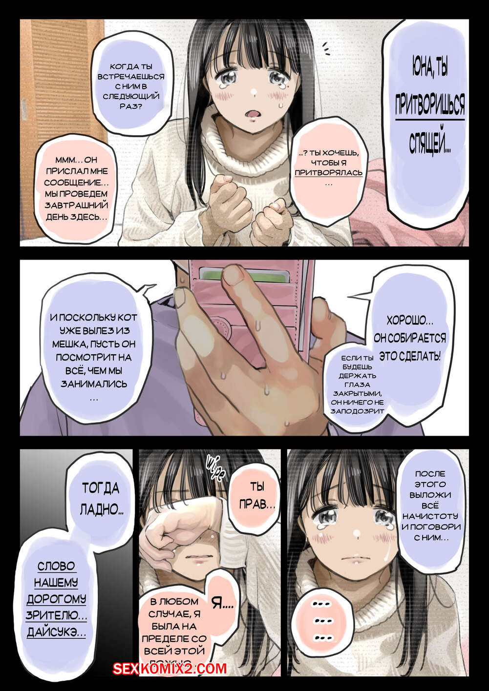 Порно комикс Я только что покопался в её смартфоне. Часть 2 Парень спалил переписку своей девушки с другим парнем и теперь он постоянно изучает ее телефон. Парень видит, как его девушка отправляет свою пизденку другому парню, а также узнал, что она еще и ебется с ним.