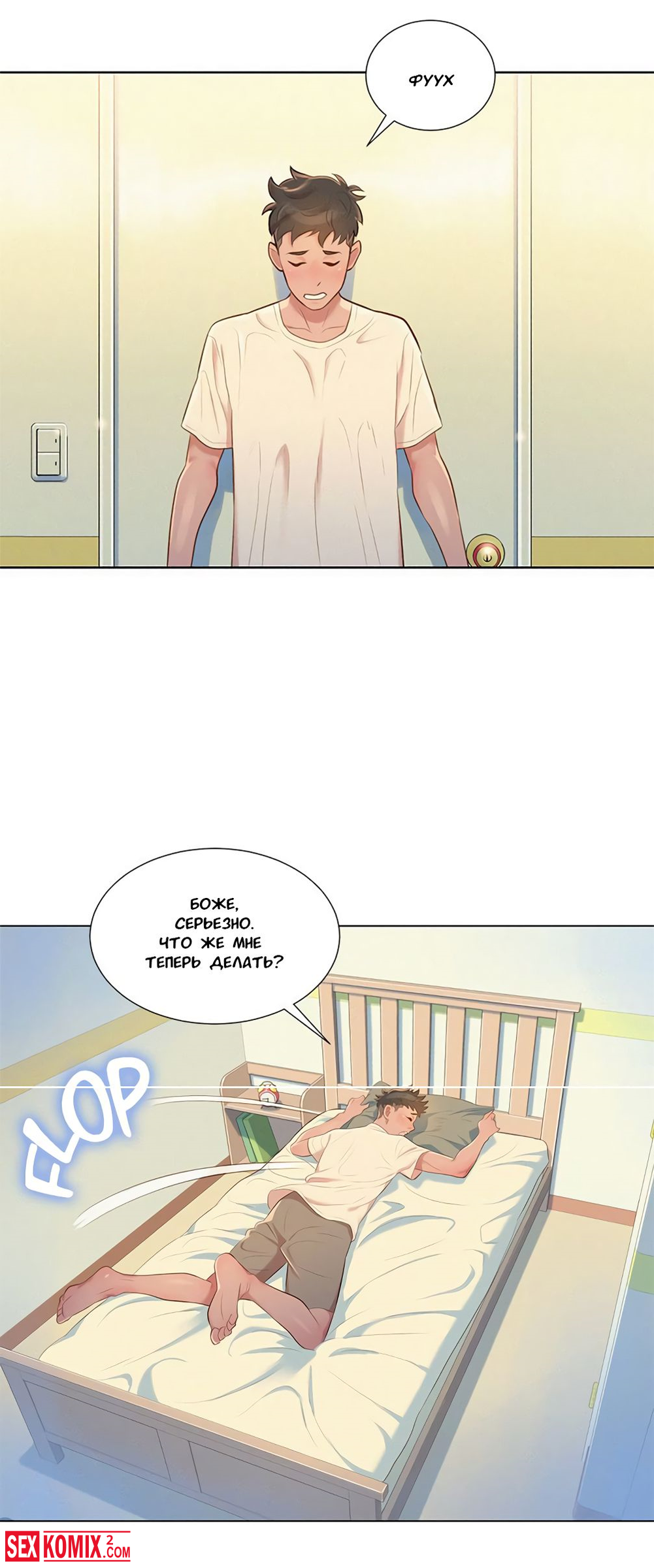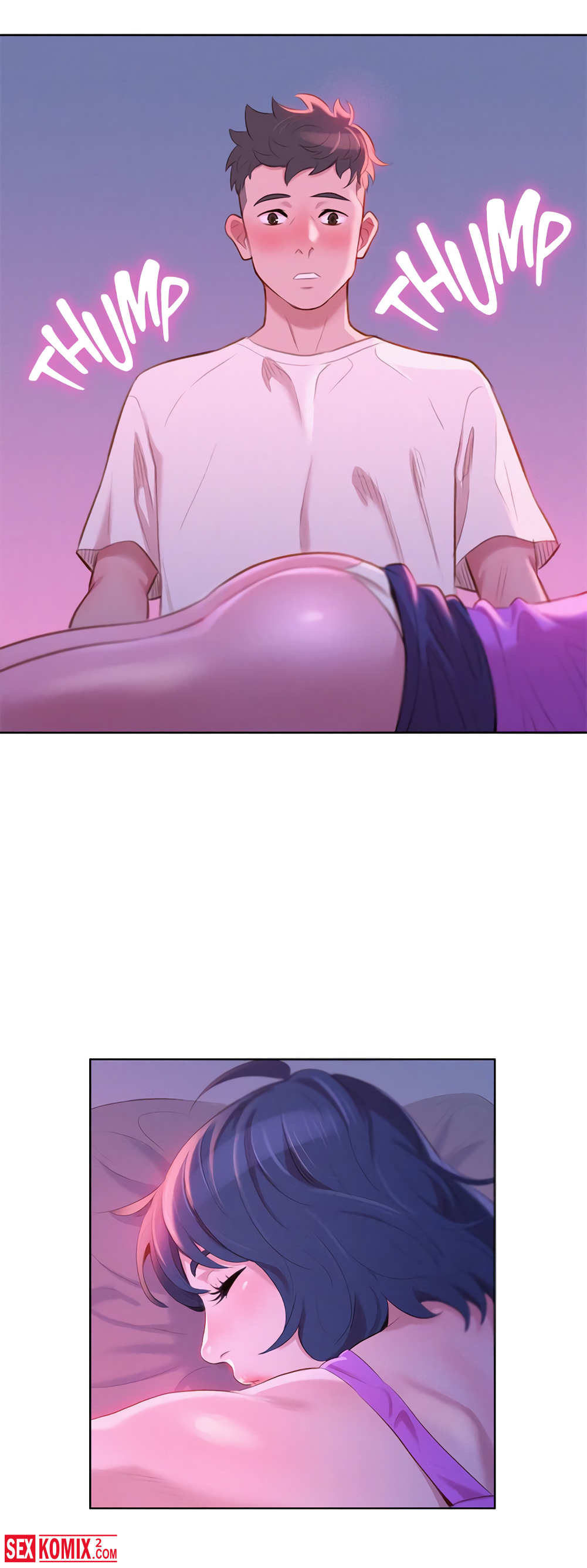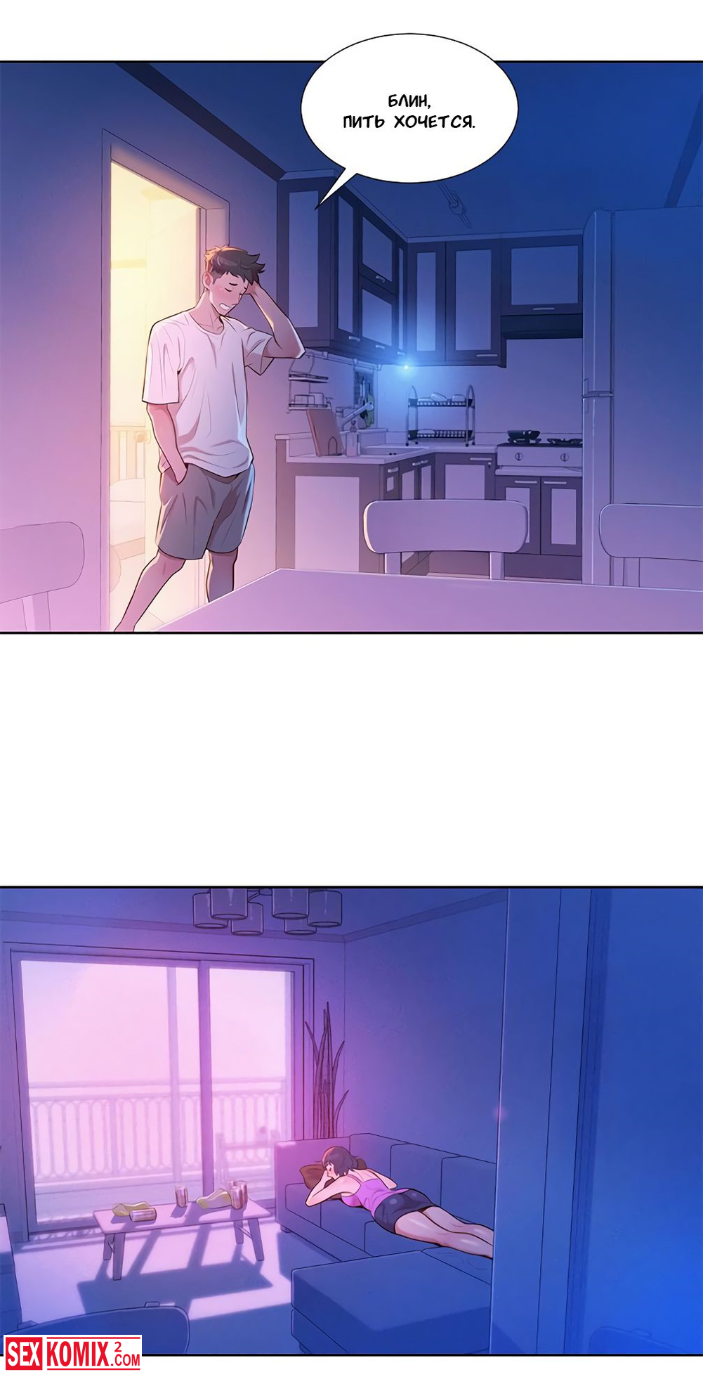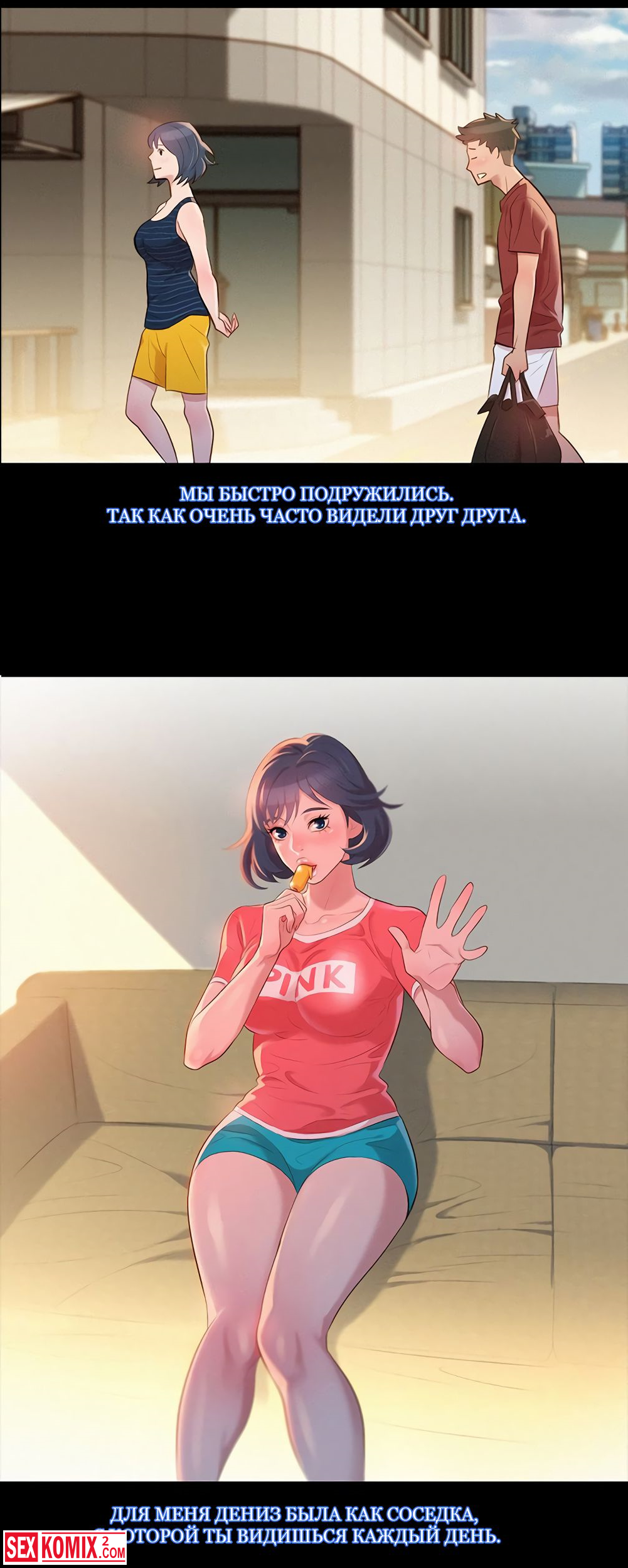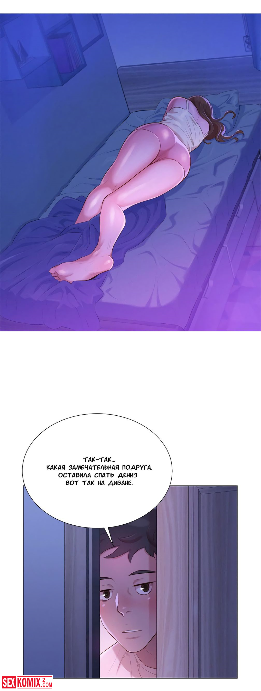 Порно комиксы Сестра по соседству. Часть 2. Парень давно не занимался сексом и дрочить ему совсем не хотелось. Он увидел спящую соседку её юбка была задрана и это сильно возбудило его.