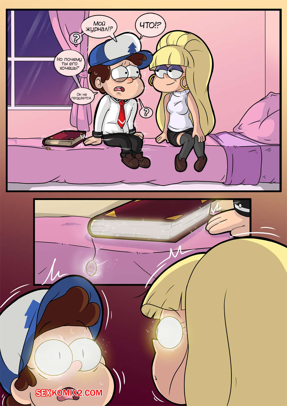 Порно комикс Гравити Фолз. Черная Библия. Gravity Falls and Bible Black. Indecente Сексульная блондинка попросила Диппера проводить ее до дома. Там они оба возбудились изза журнала парня, поэтому девушка разделась перед парнем и отсосала его большой хуй.