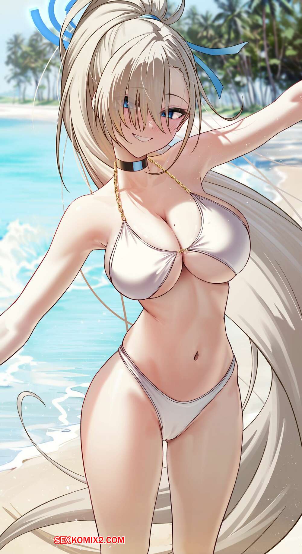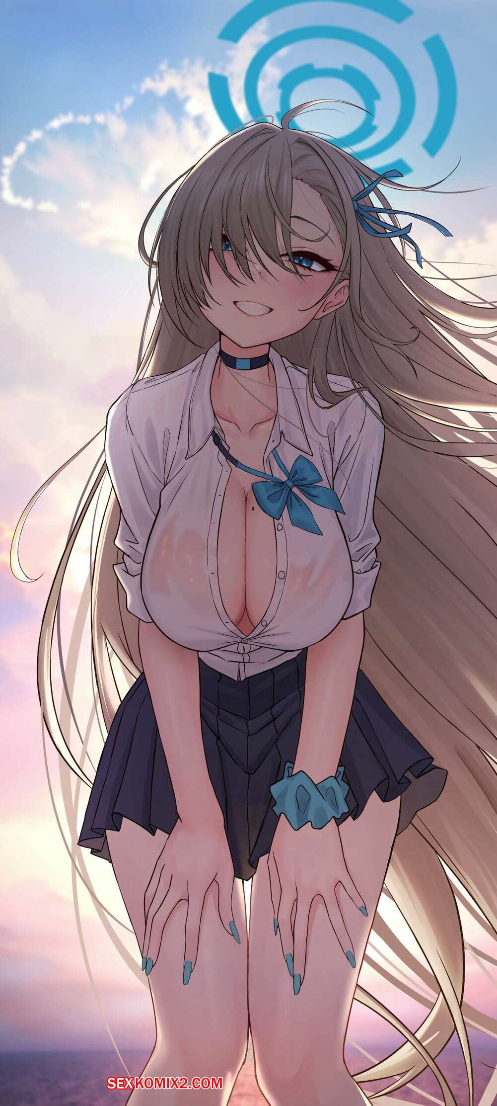 Порно комикс Blue Archive. Футанари Ако чан с огромным членом. Canvas Solaris