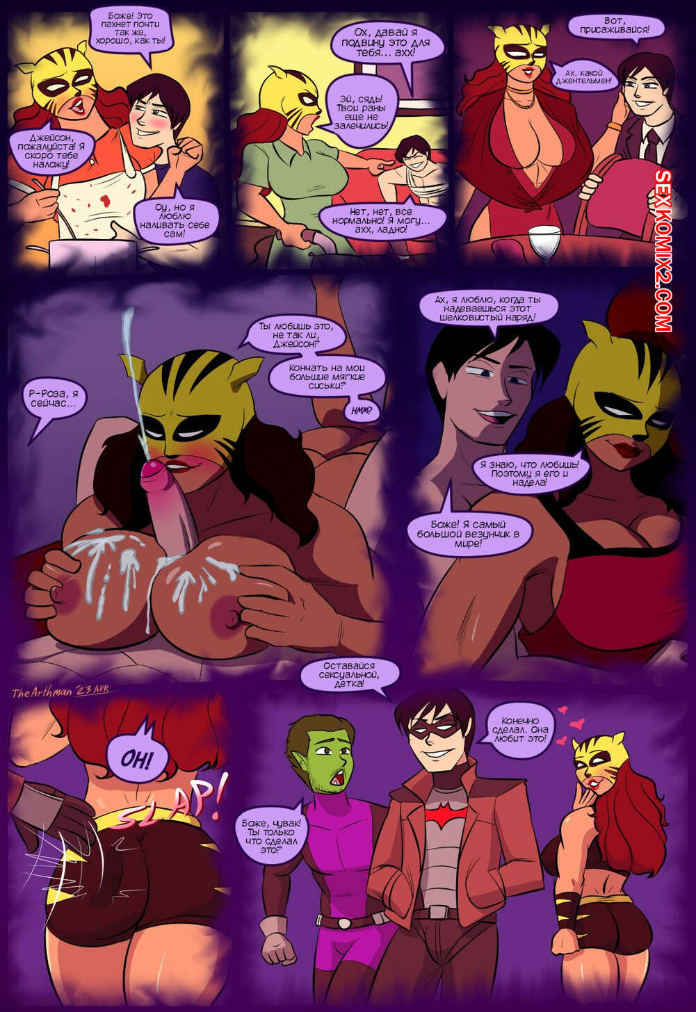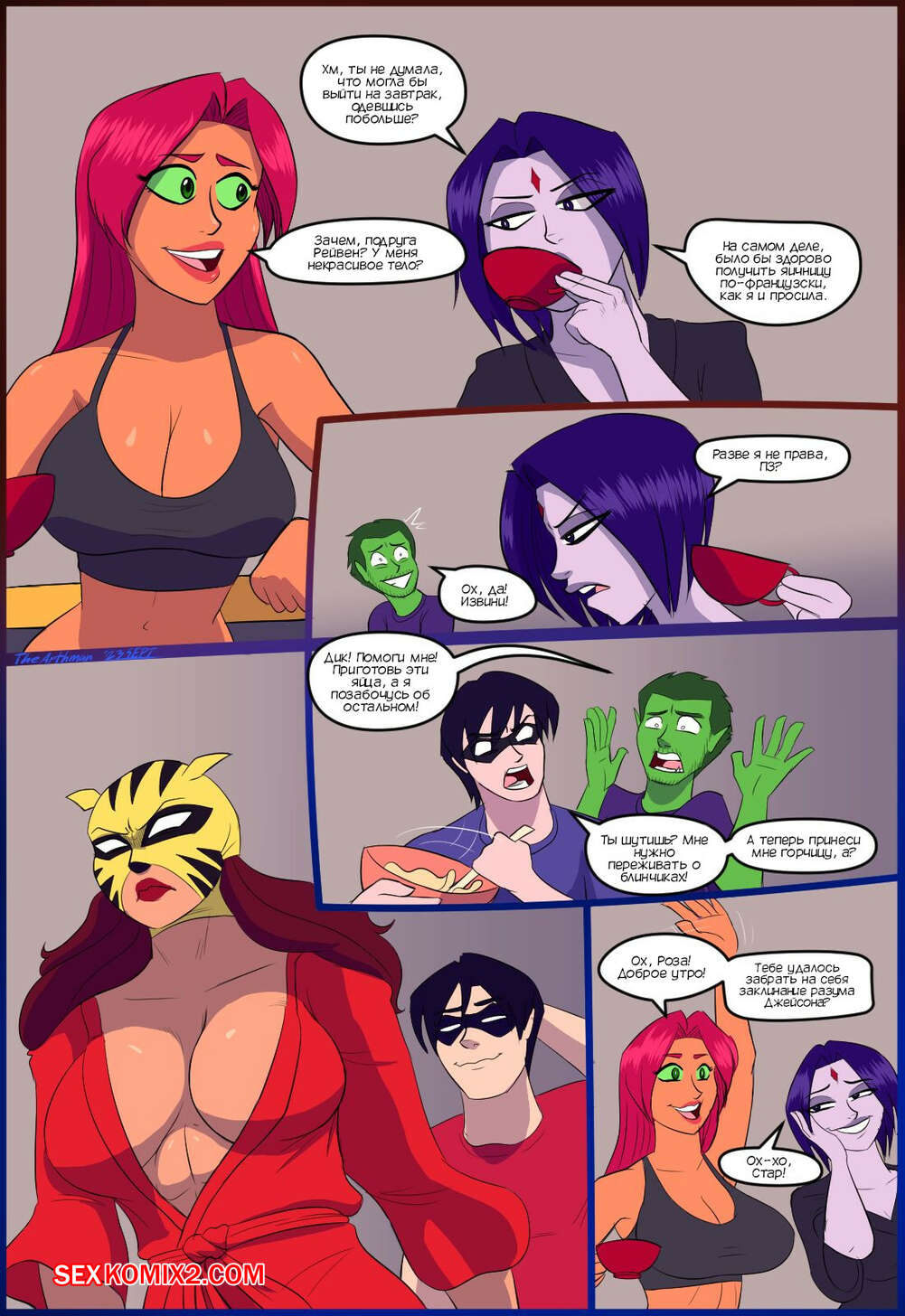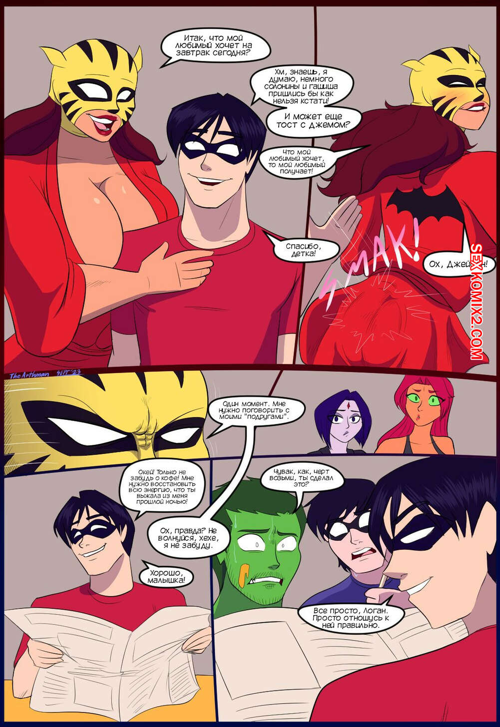 Порно комикс Титаны. Битва полов. The Battle Of The Sexes. The Arthman Три подруги встретились и решили посидеть в кафе. Рейвен и Старфайр решили поднять самооценку Розе, которая все делает для своего парня, а в ответ не получает ничего..